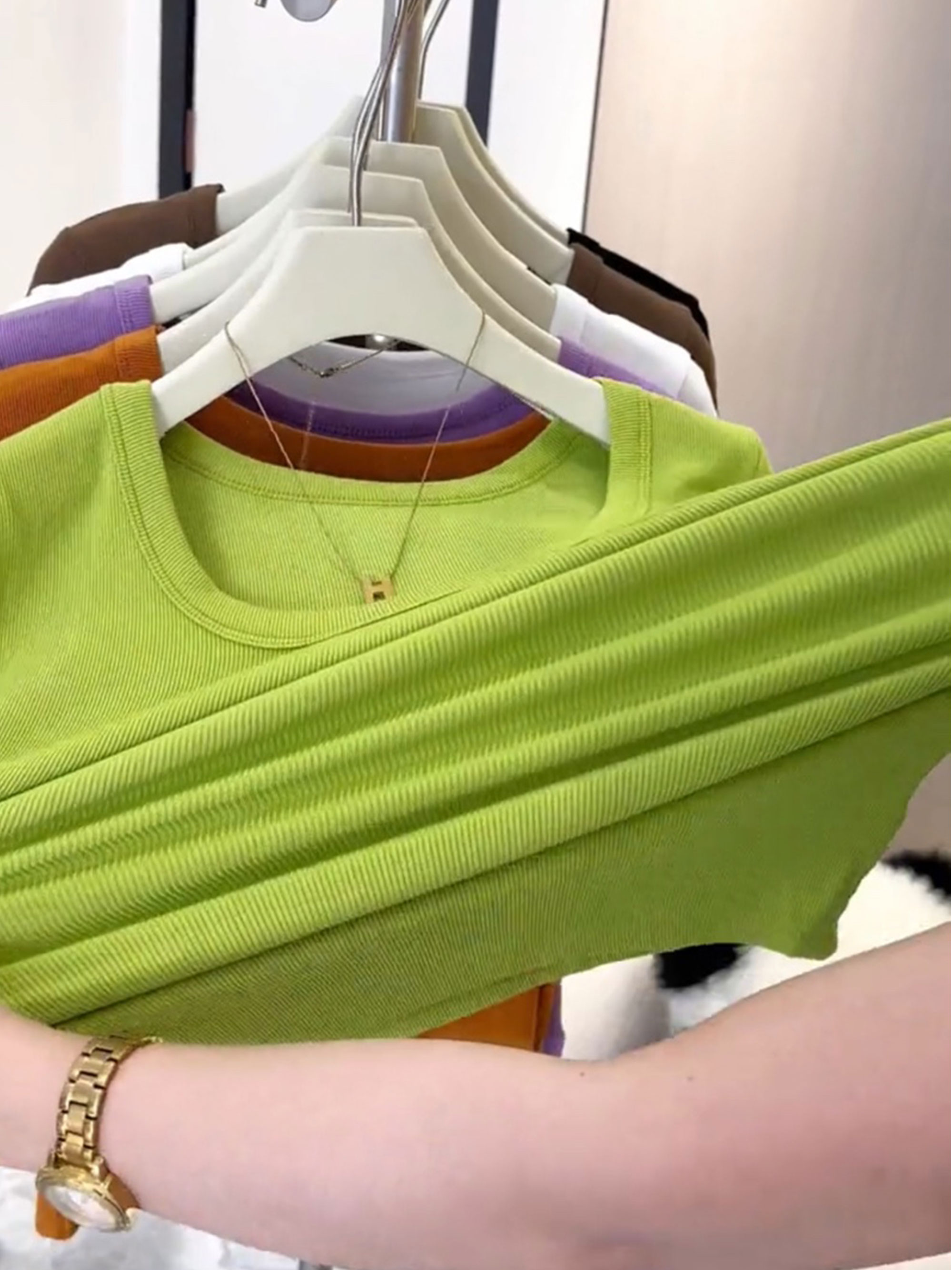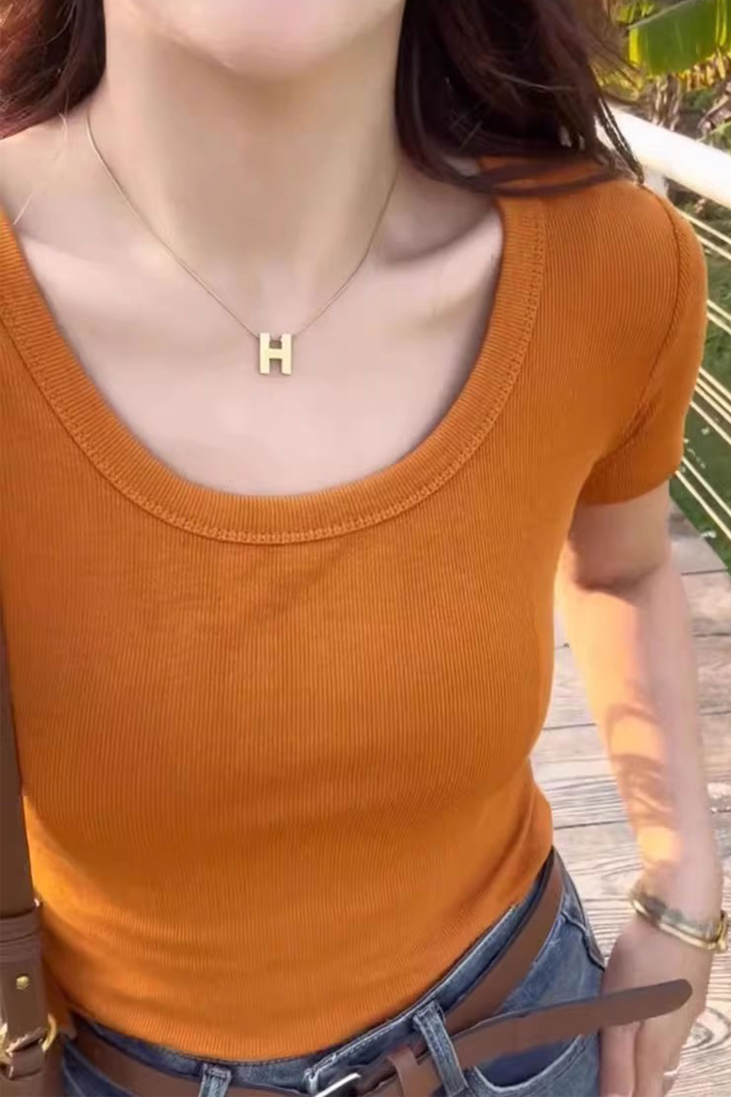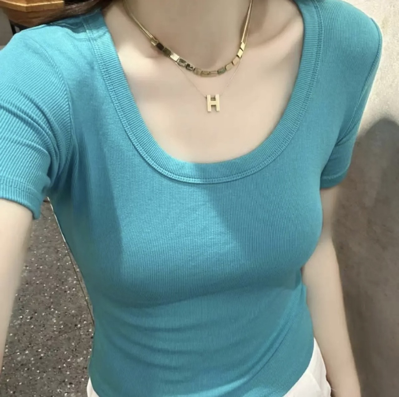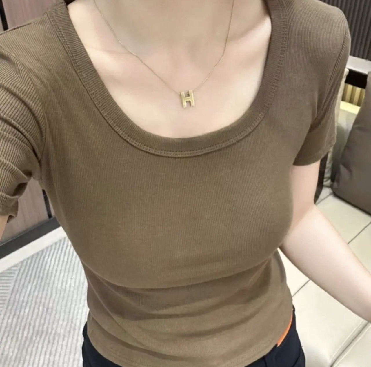 歐貨低領螺紋短袖上衣女修身百搭洋氣顯瘦緊身爆款U領鎖骨t恤女夏