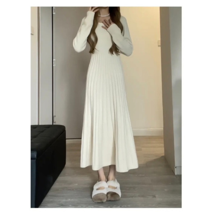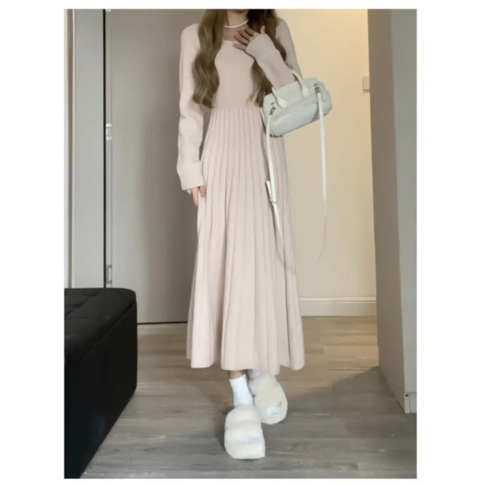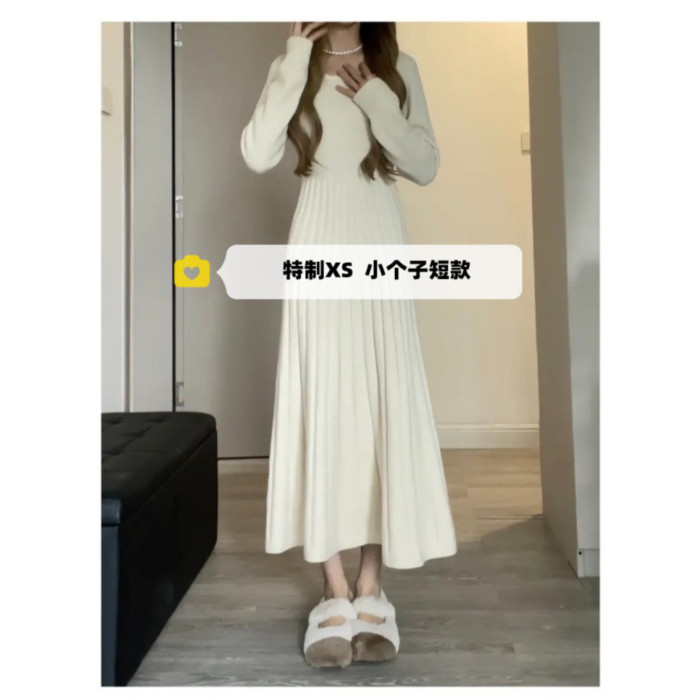 145小矮個子針織連衣裙女秋冬長袖打底法式收腰高級感長裙xs顯高