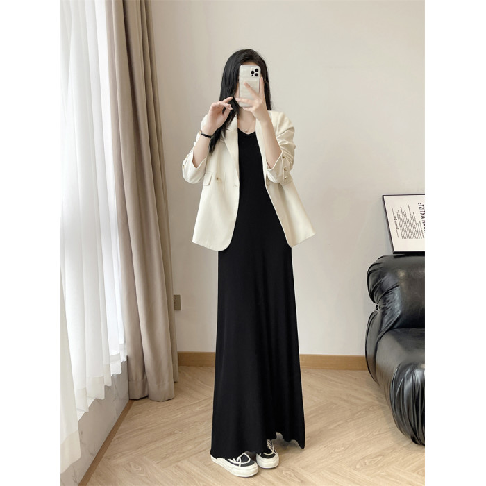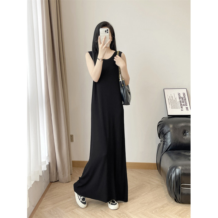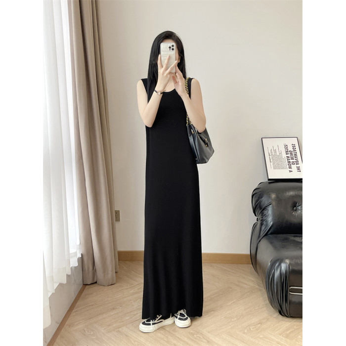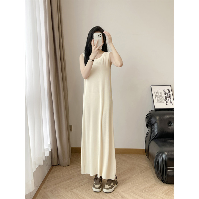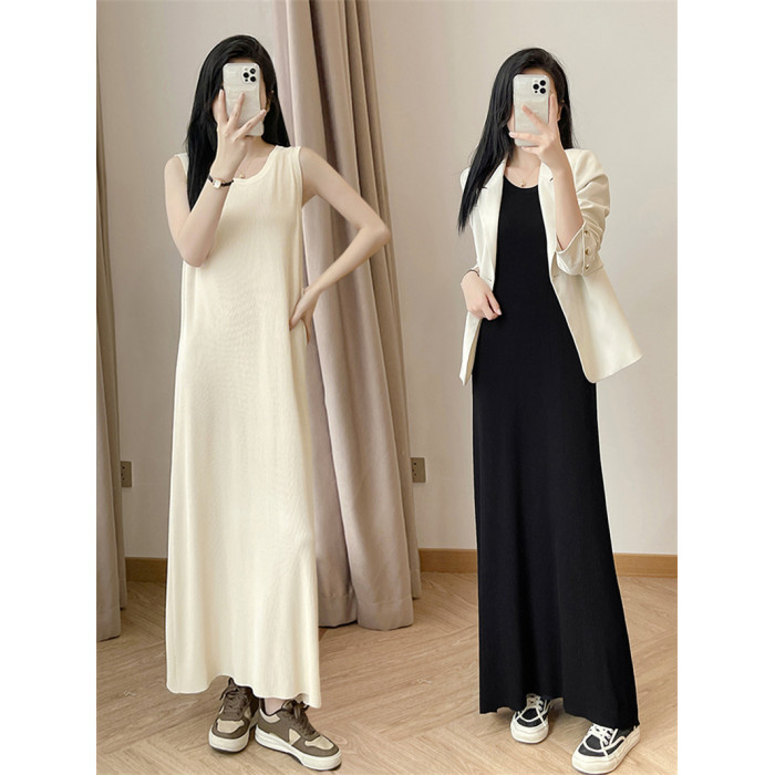 冰絲無袖背心裙女夏季新款寬松顯瘦超長款及踝內搭吊帶針織連衣裙