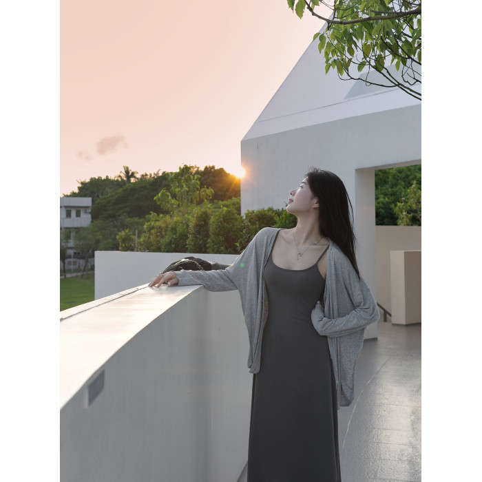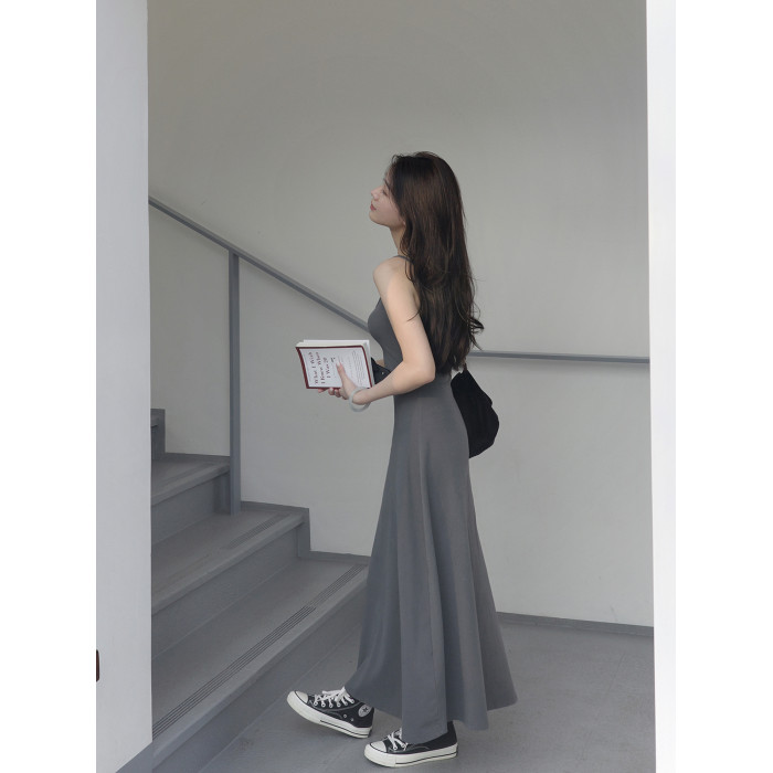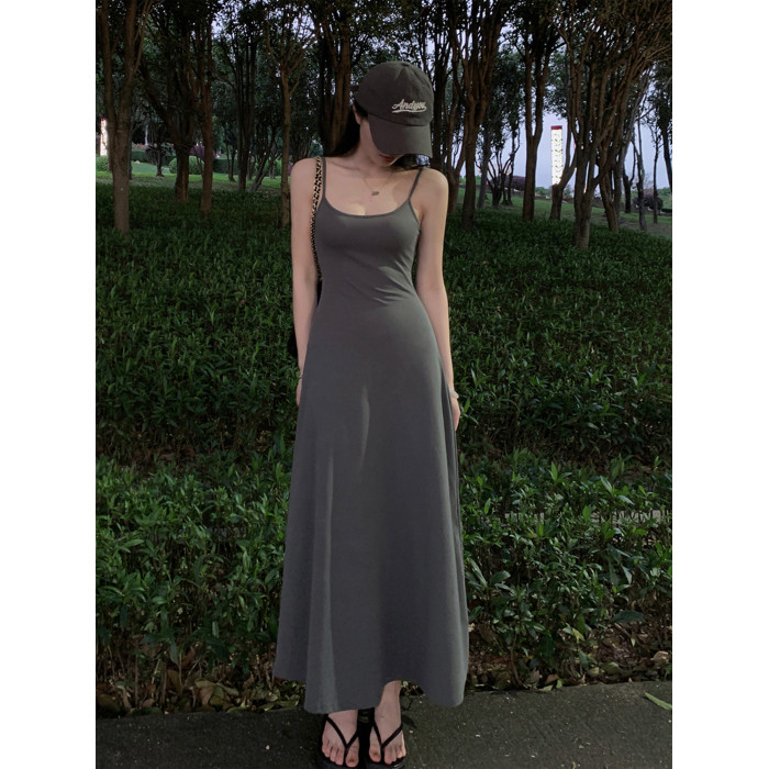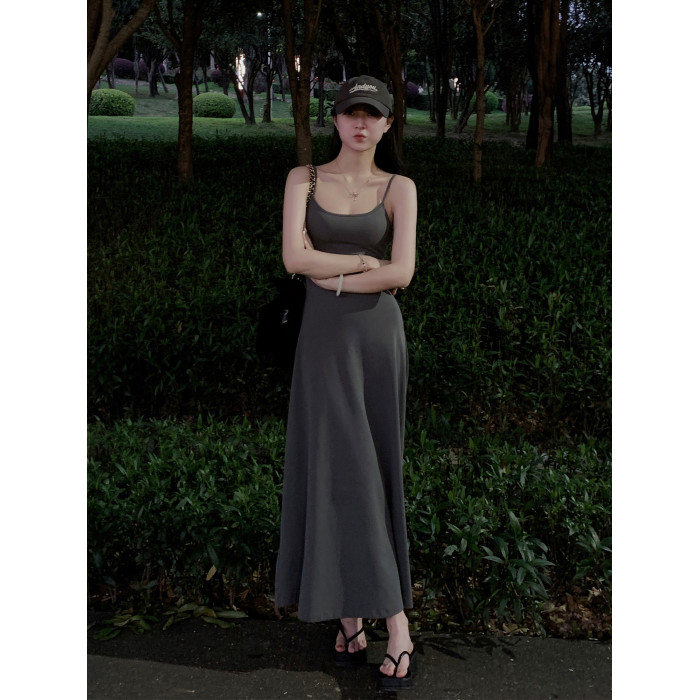 卡戴珊黑色辣妹顯瘦修身大擺長裙休閒絕美吊帶連衣裙2024新款女夏