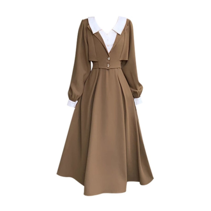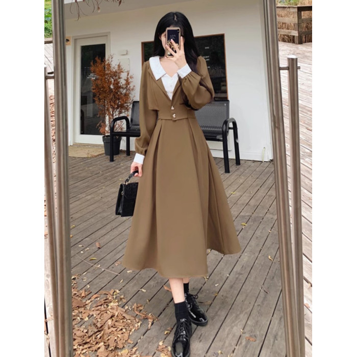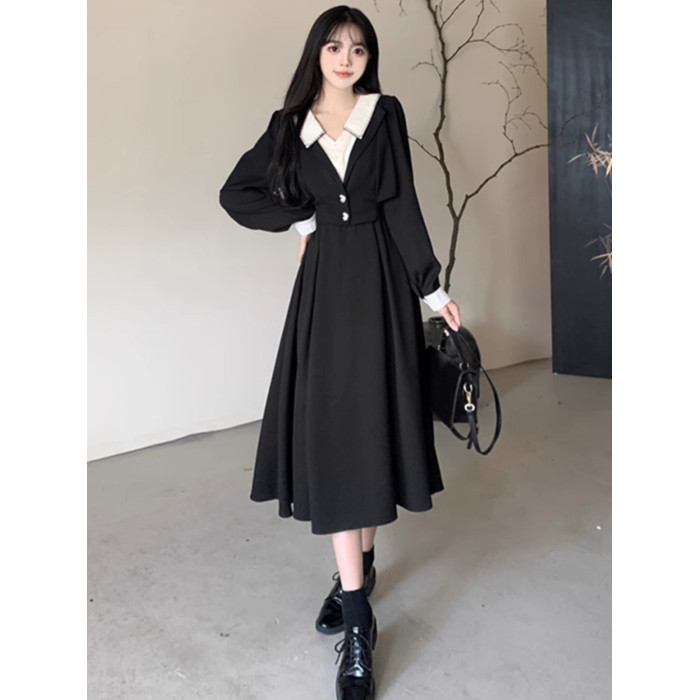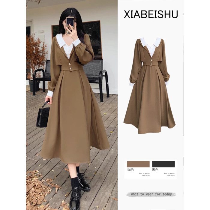 大碼美拉德法式假兩件連衣裙女早秋巨好看的胖mm顯瘦高級感長裙子