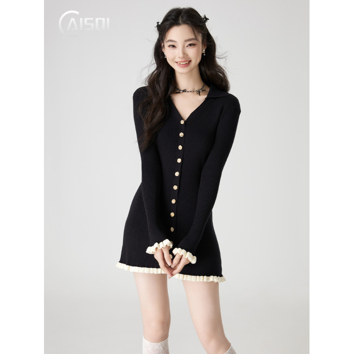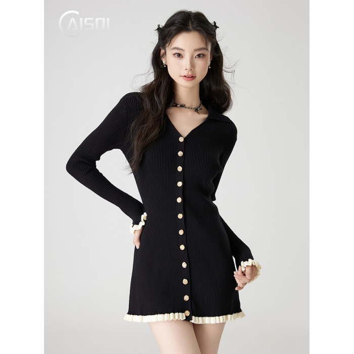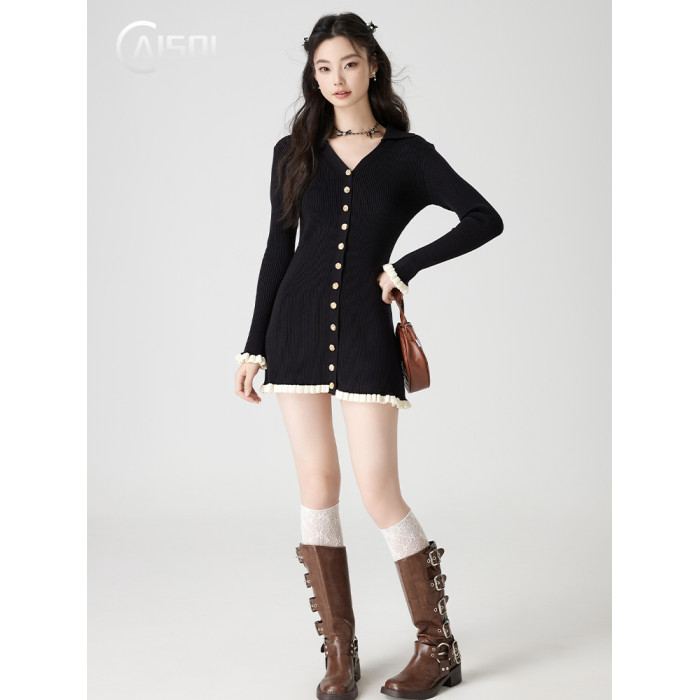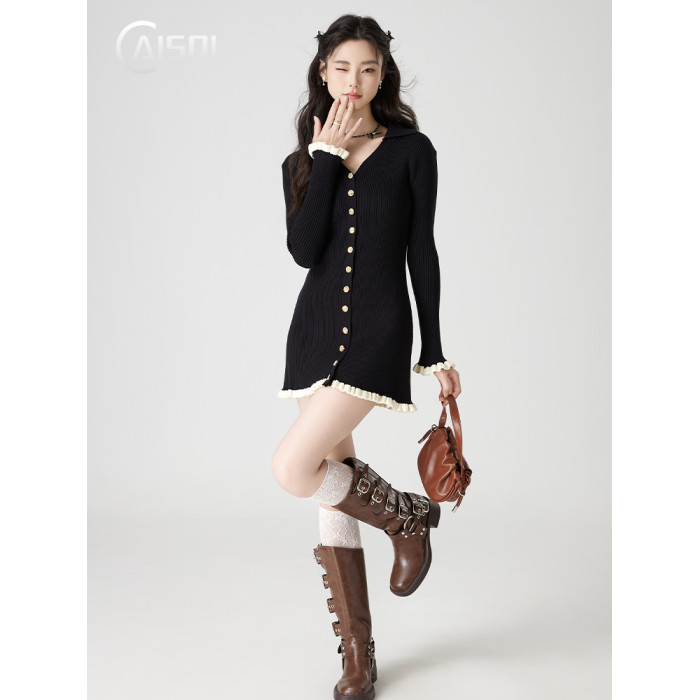 柴十七赫本風小黑裙女秋冬新款裙子約會短裙氣質針織連衣裙小個子