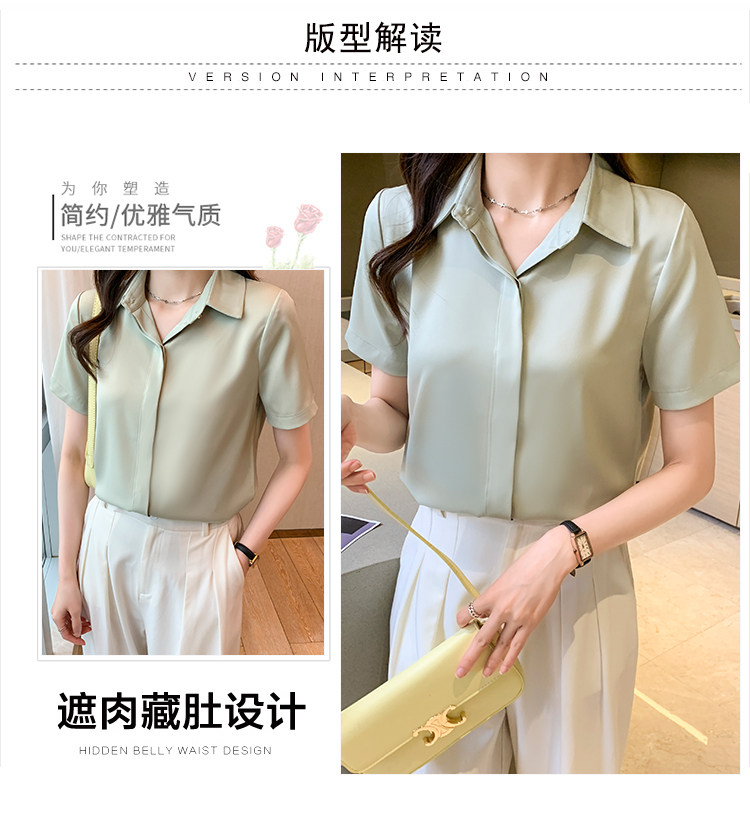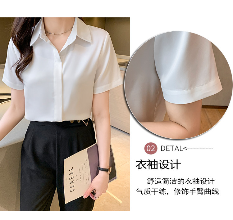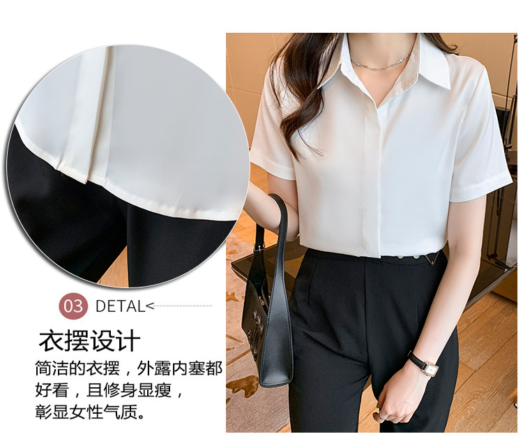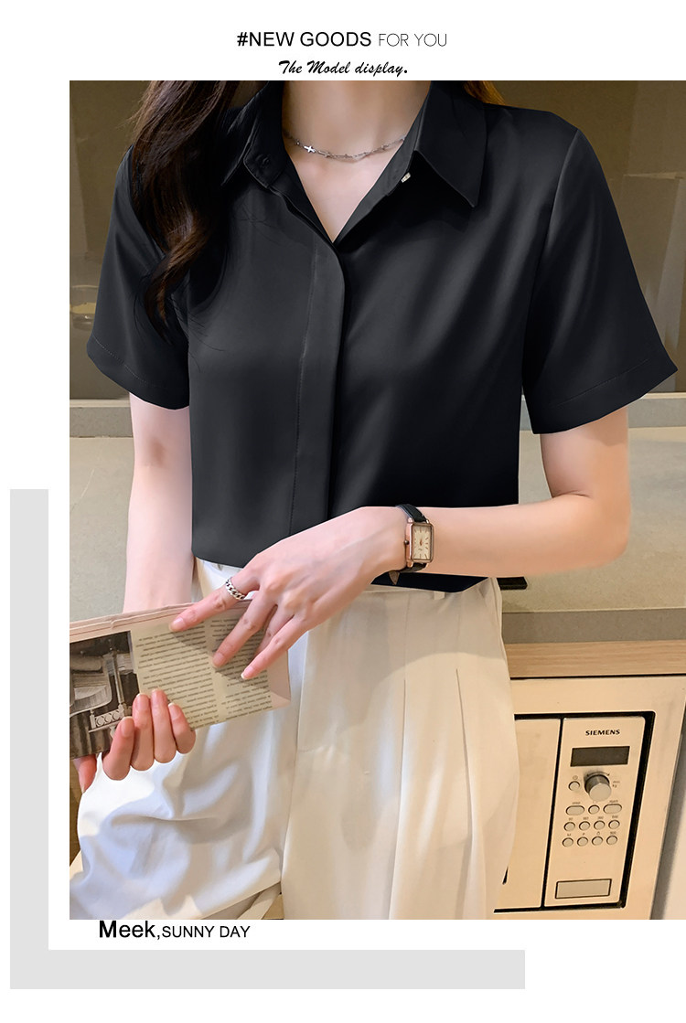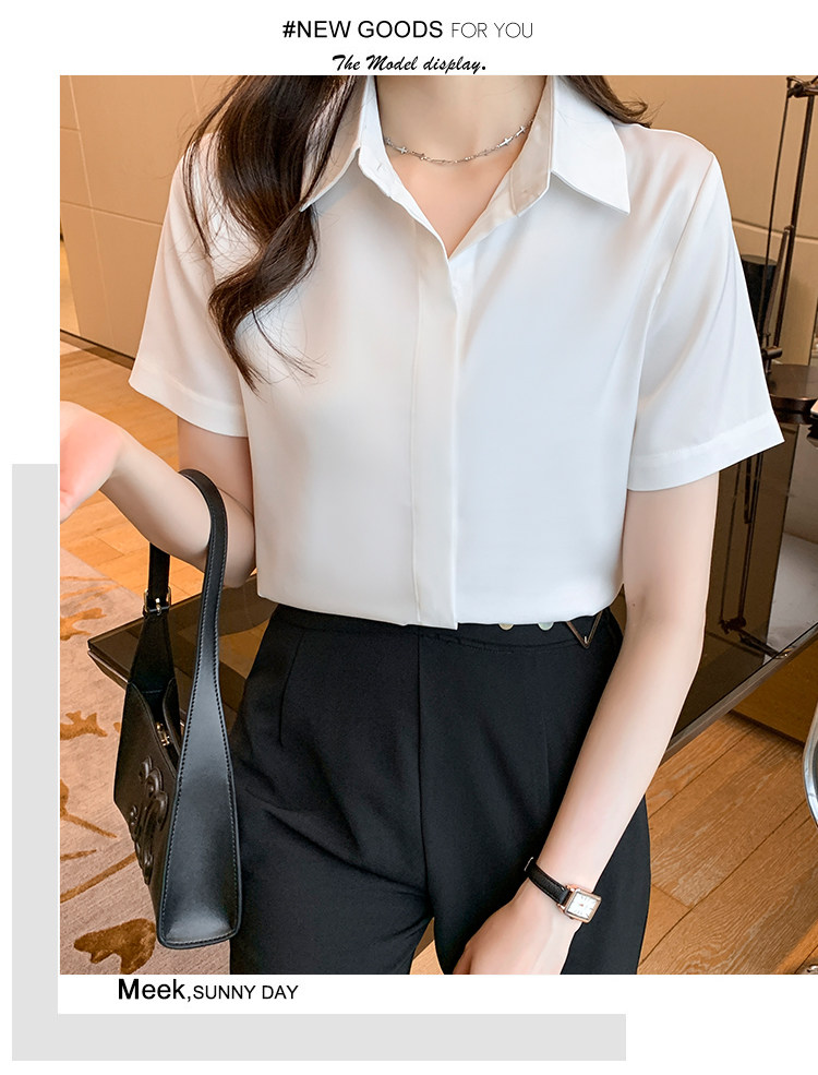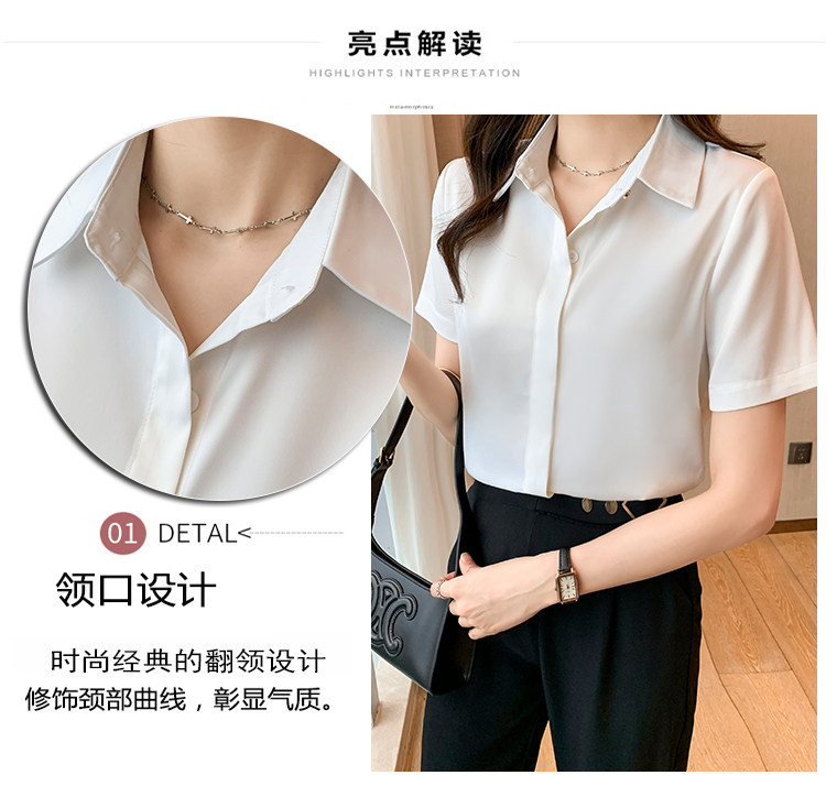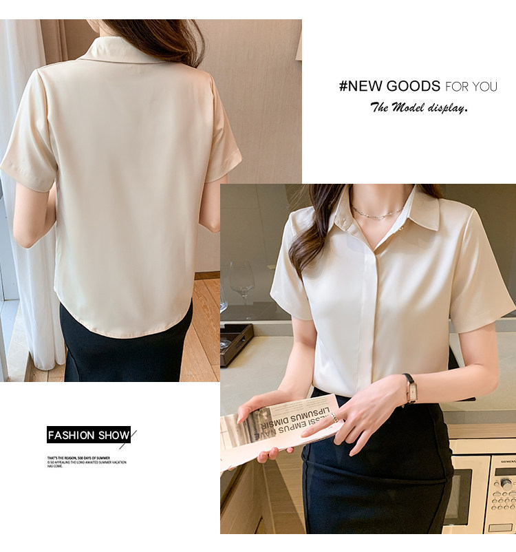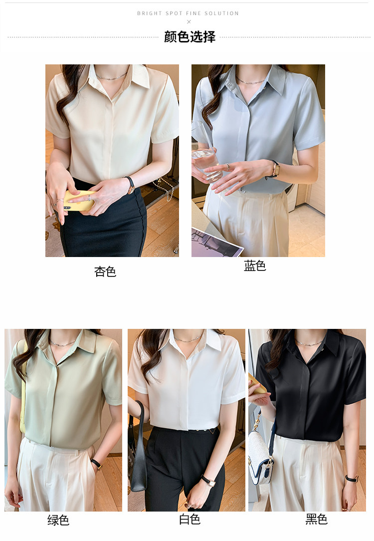 職業襯衫女短袖夏季小個子醋酸緞面工作服洋氣質正裝面試白色襯衣