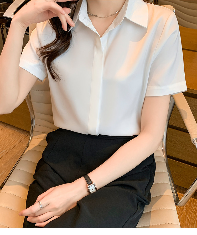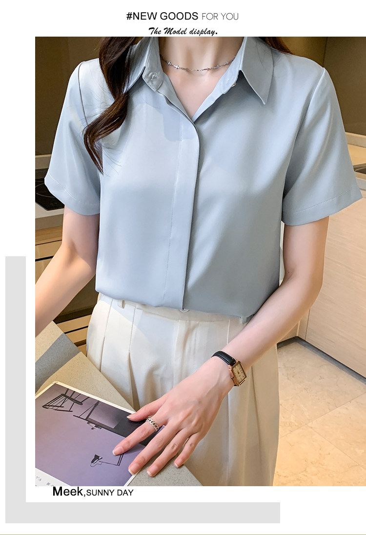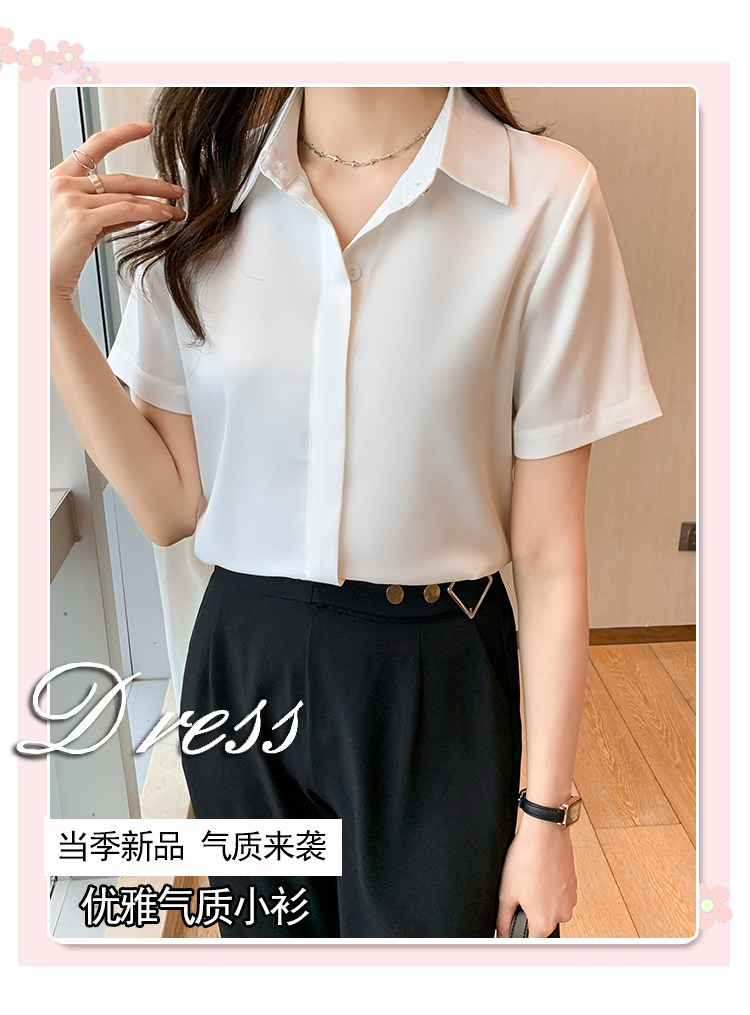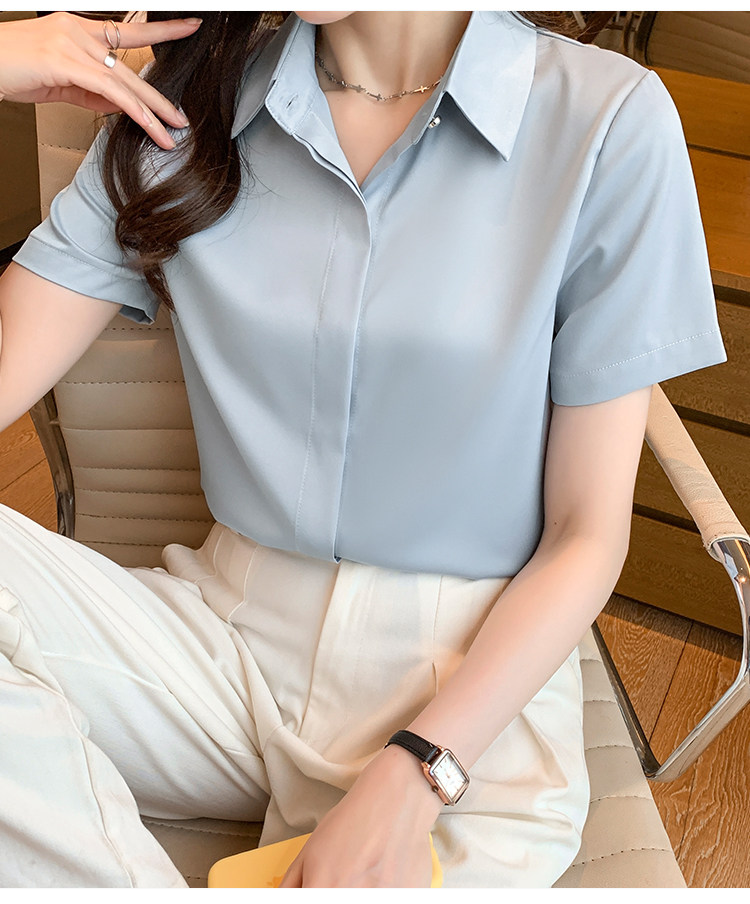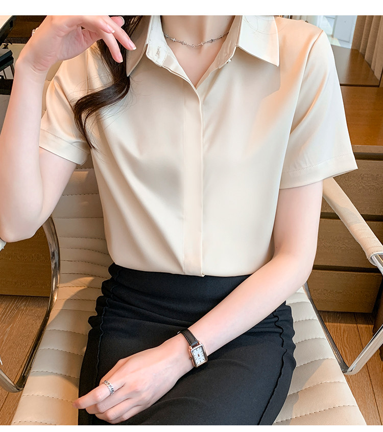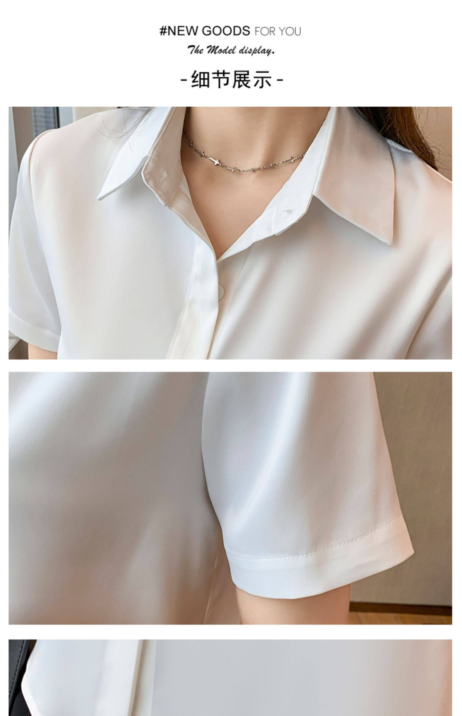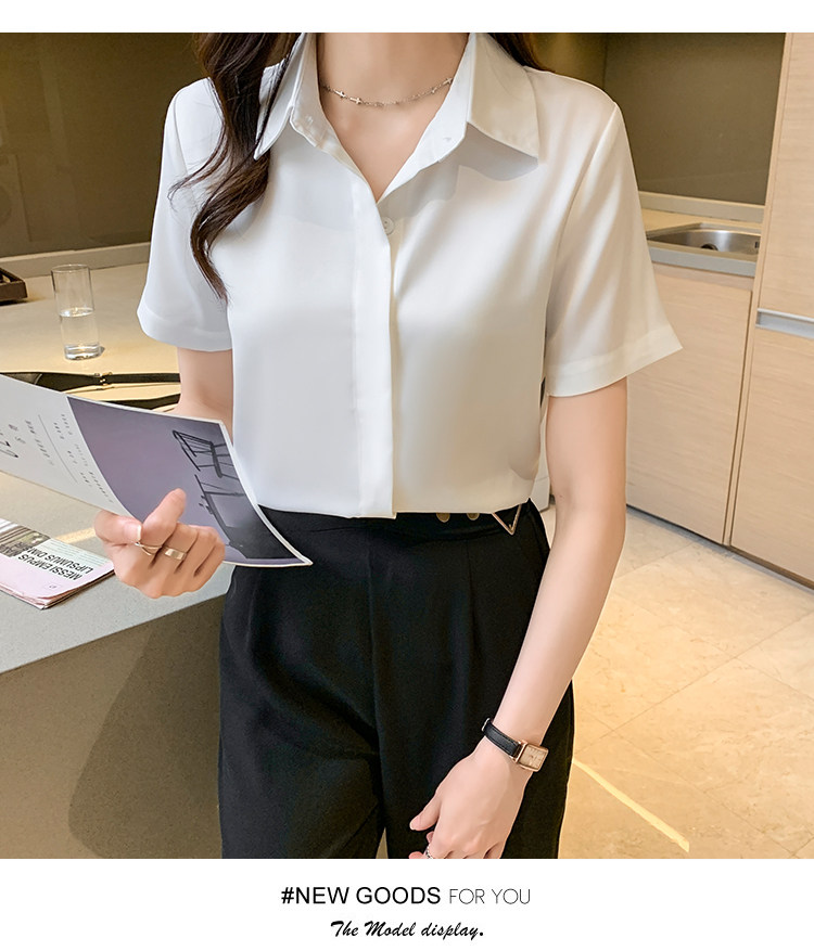 職業襯衫女短袖夏季小個子醋酸緞面工作服洋氣質正裝面試白色襯衣