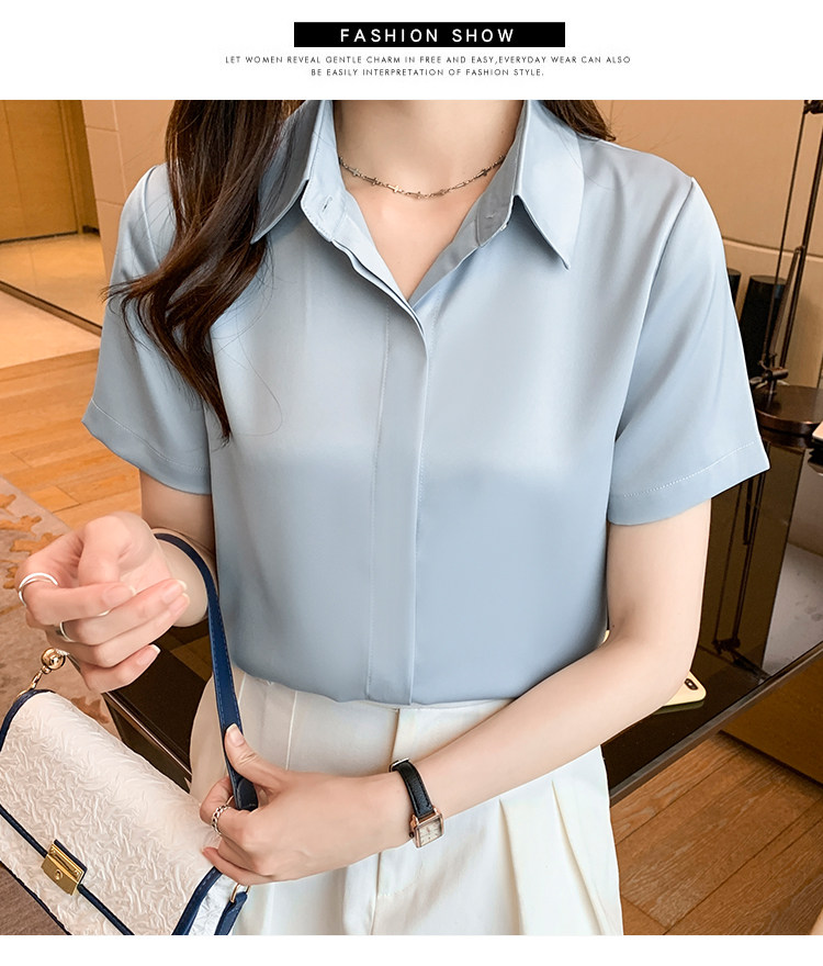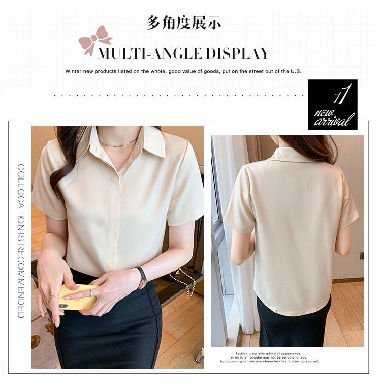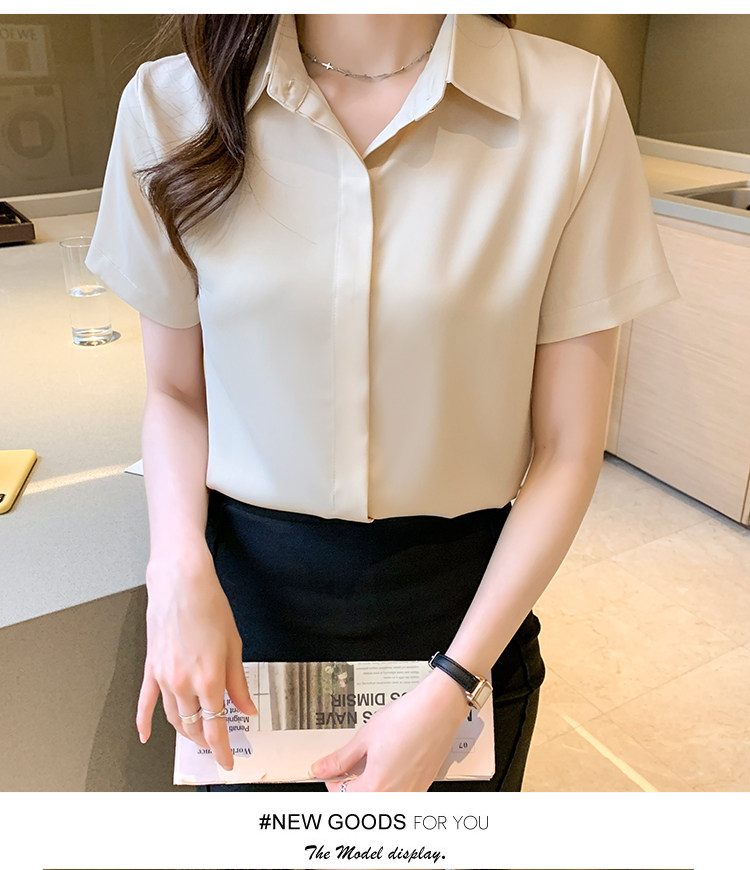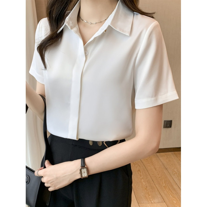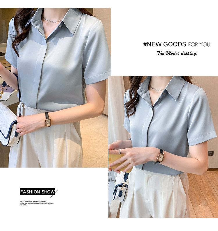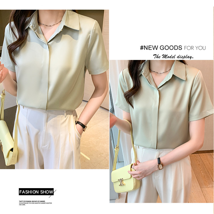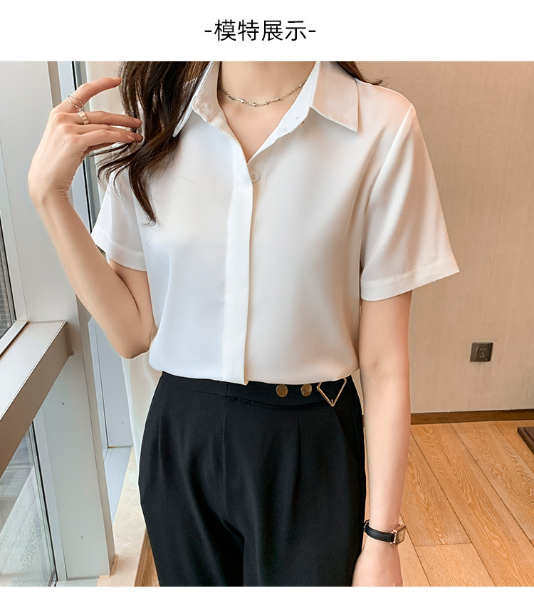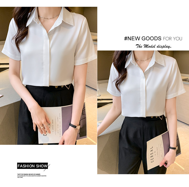 職業襯衫女短袖夏季小個子醋酸緞面工作服洋氣質正裝面試白色襯衣