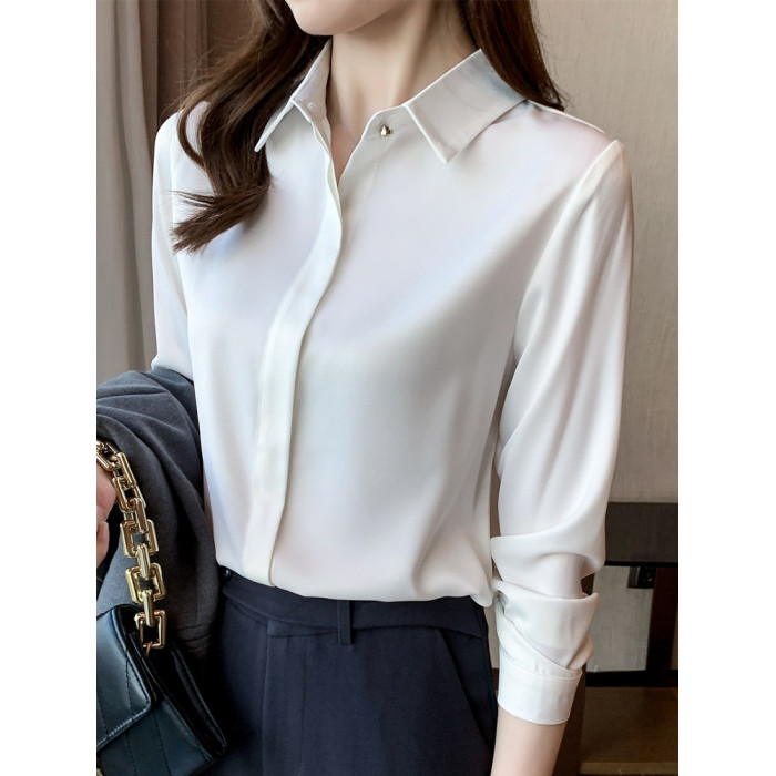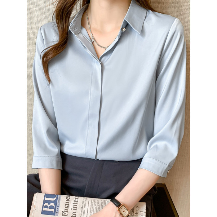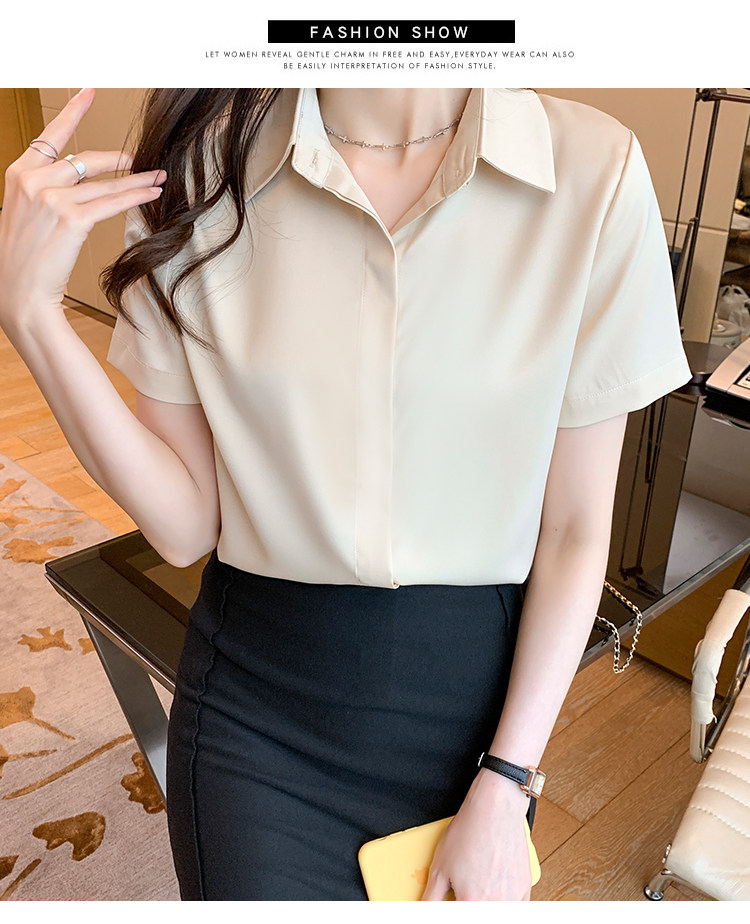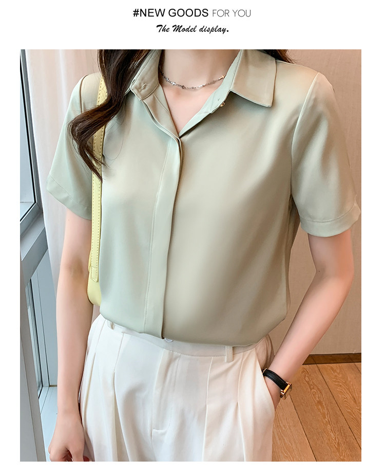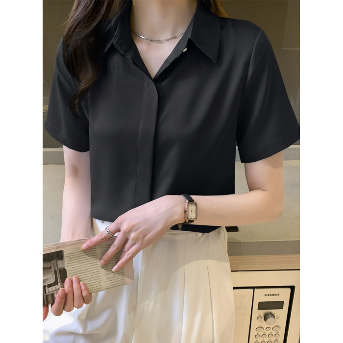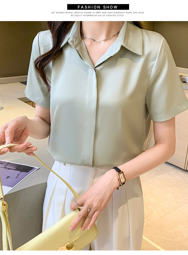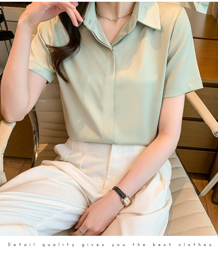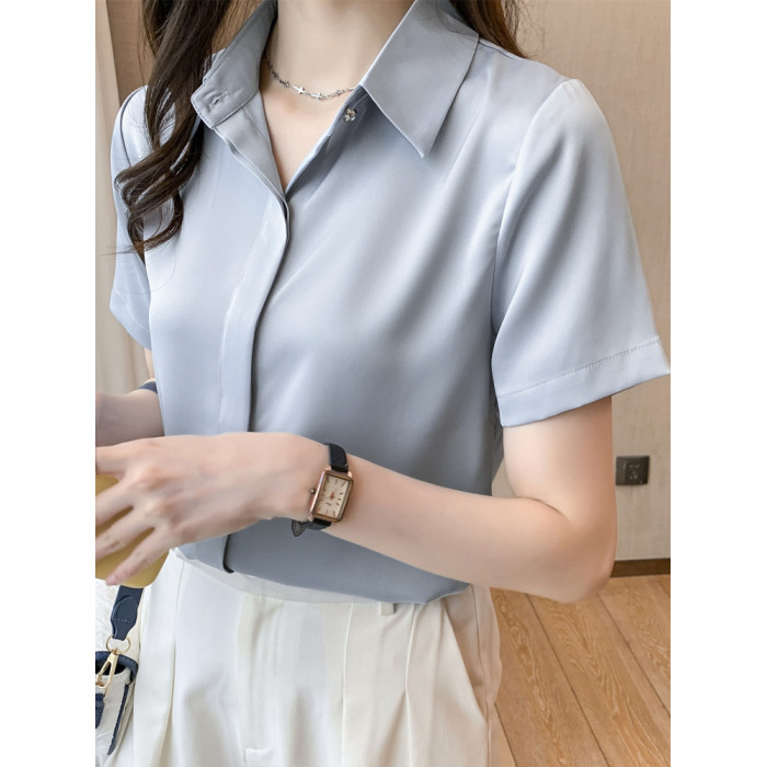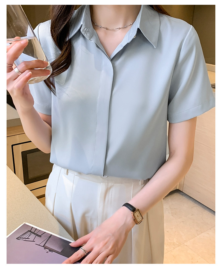 職業襯衫女短袖夏季小個子醋酸緞面工作服洋氣質正裝面試白色襯衣