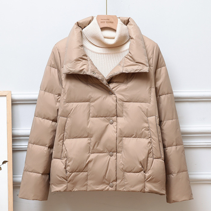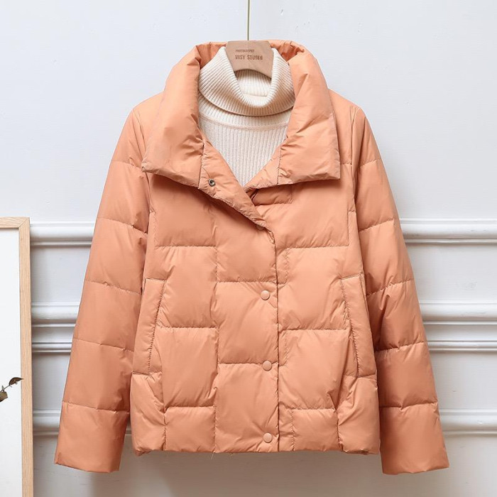 冬季羽絨服女2025年秋冬女士立領新款輕薄短款白鴨絨保暖寬松外套