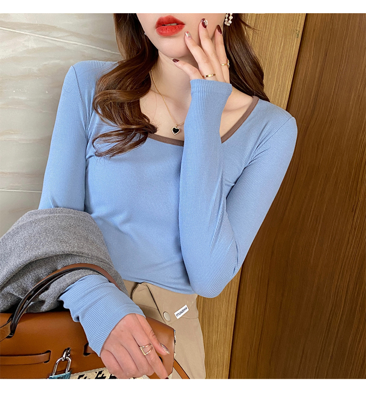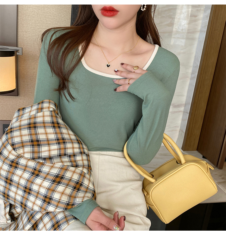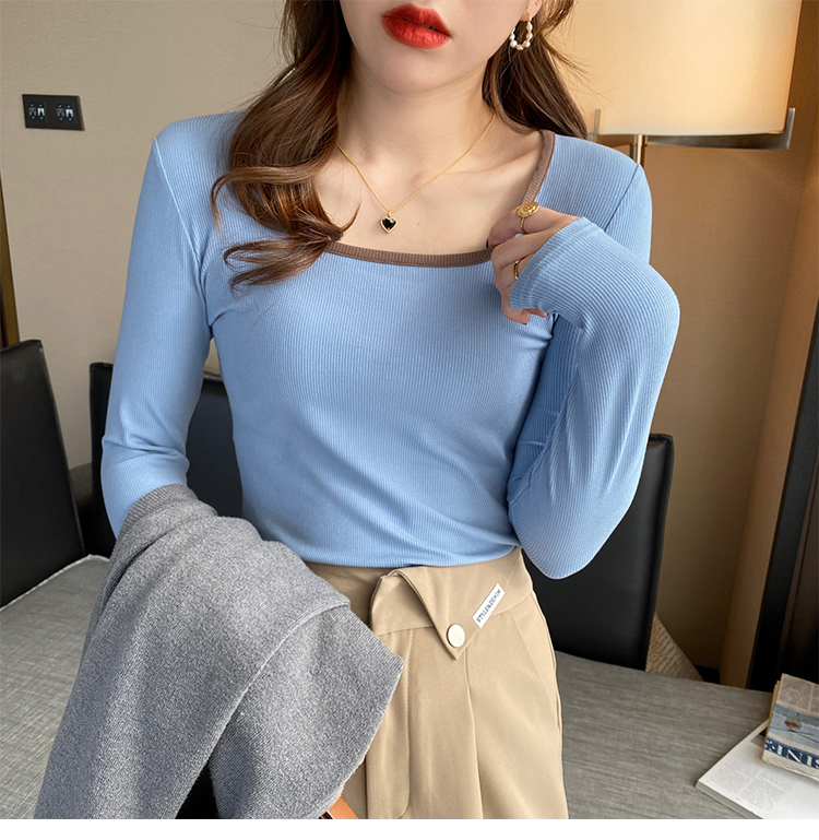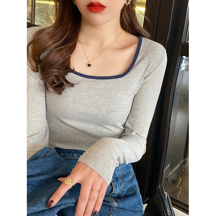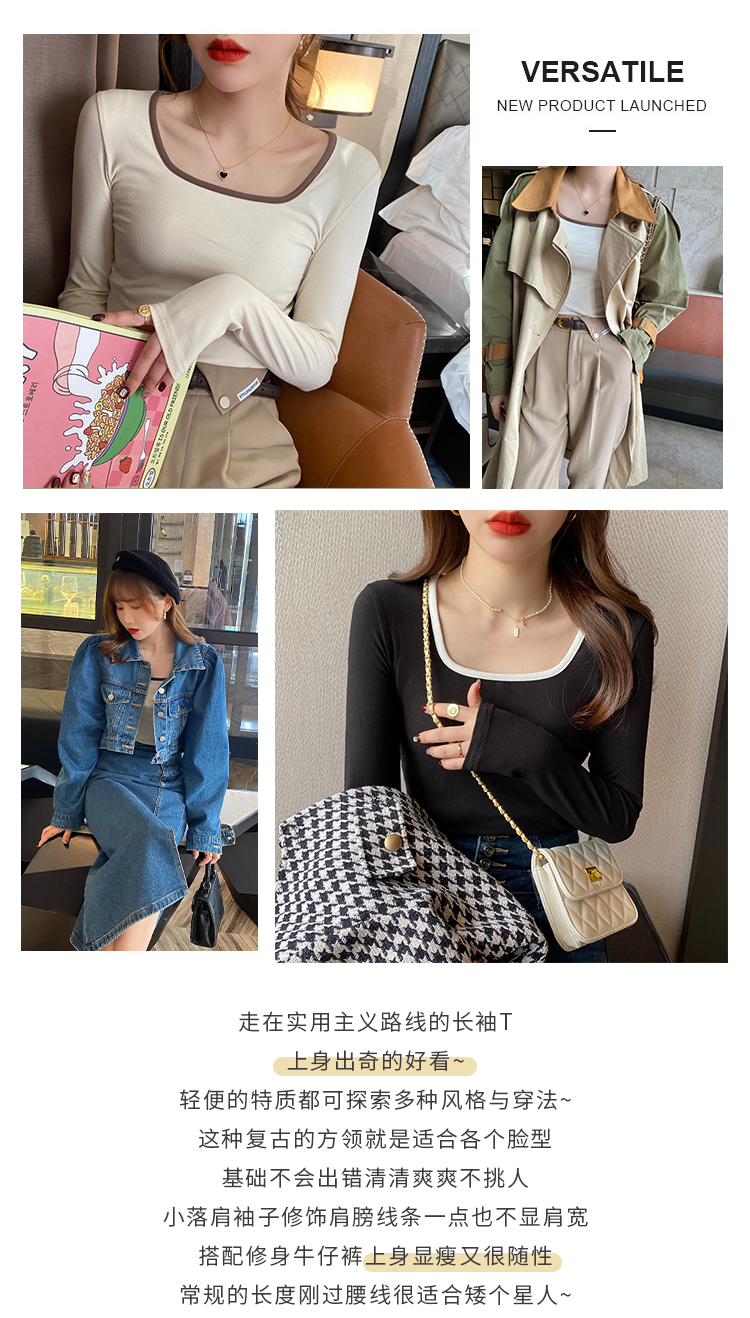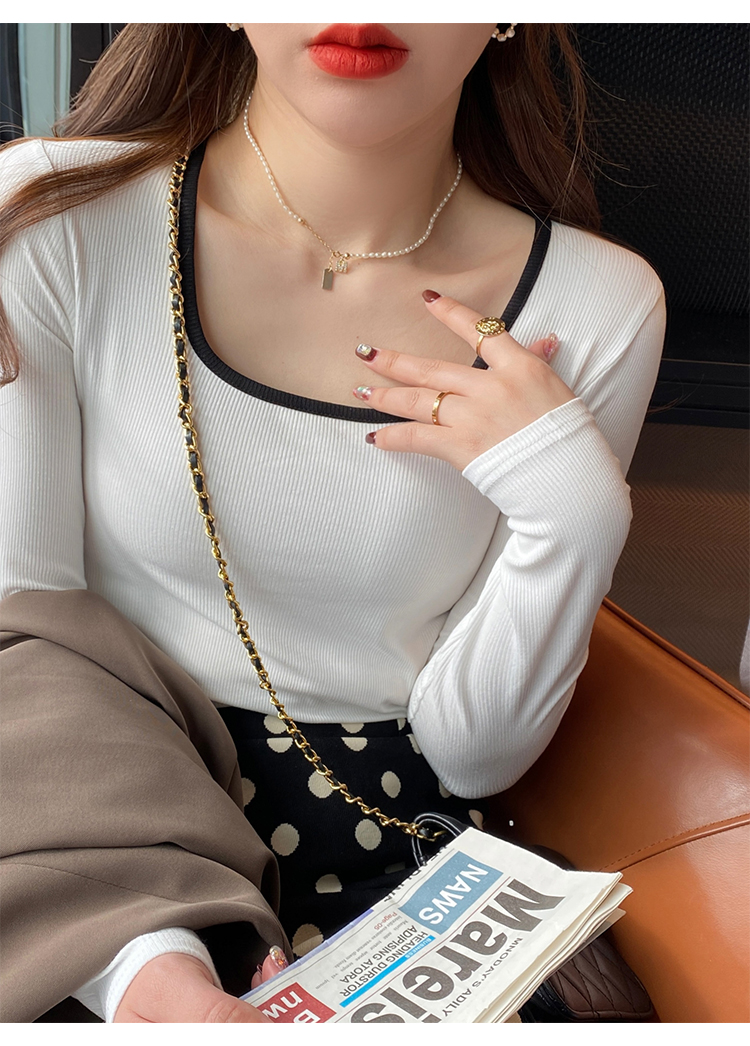 長袖t恤女裝2025秋季新款絕美內搭可外穿打底衫修身白色方領上衣