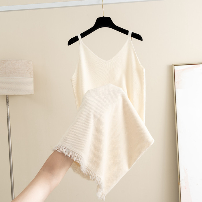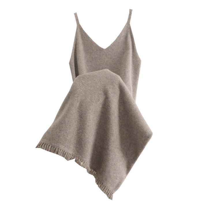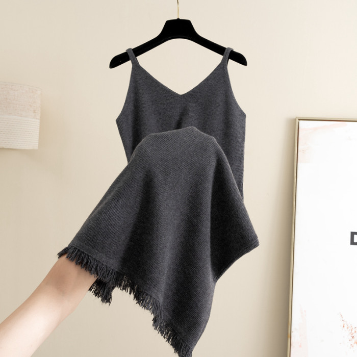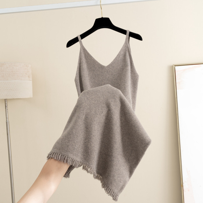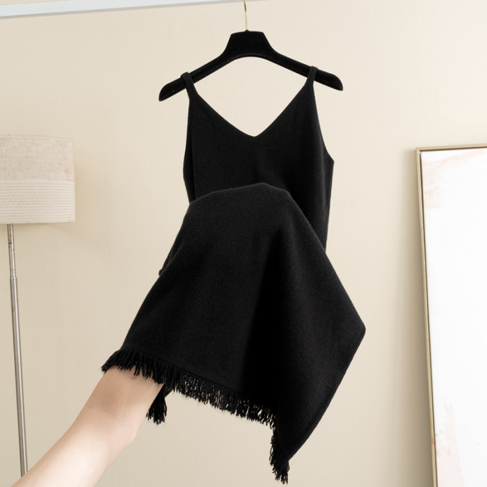 V領吊帶背心針織連衣裙女2025秋冬新款中長款內搭外穿打底毛衣裙