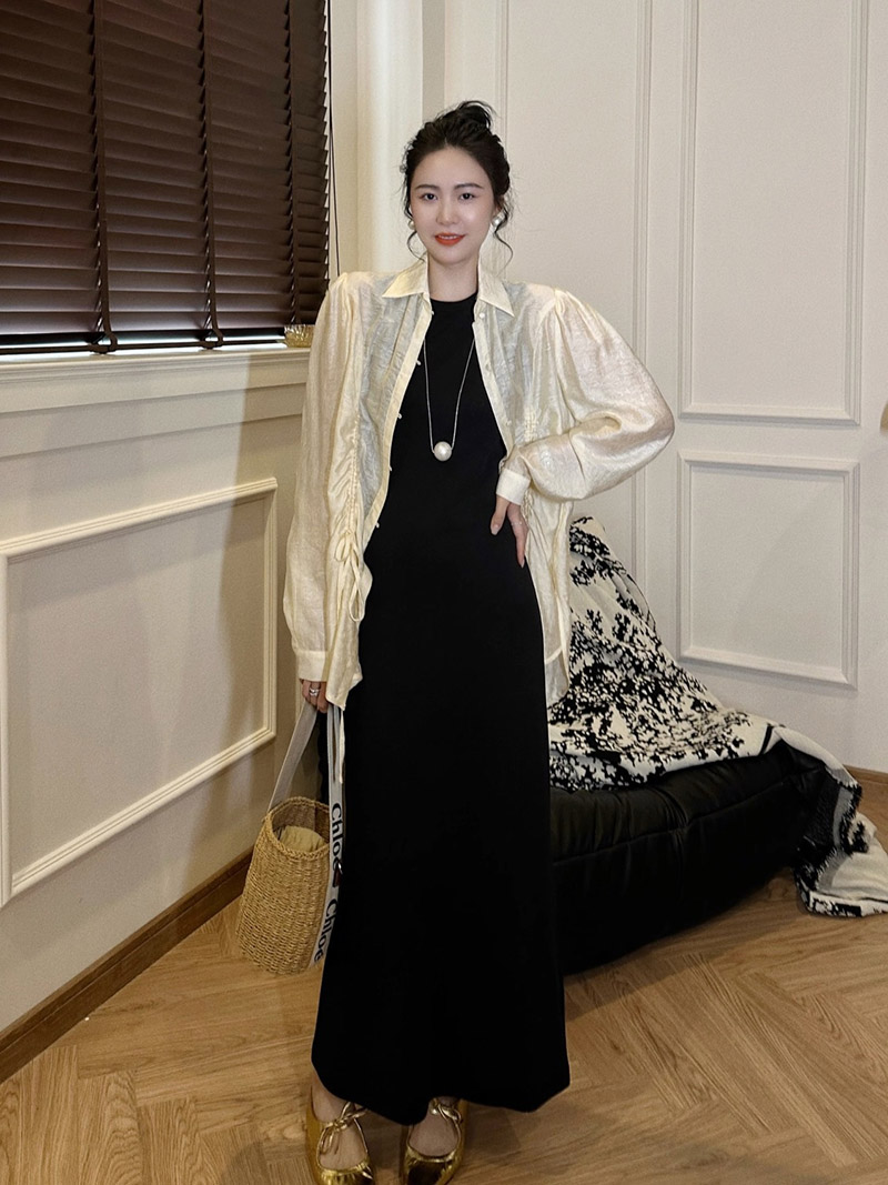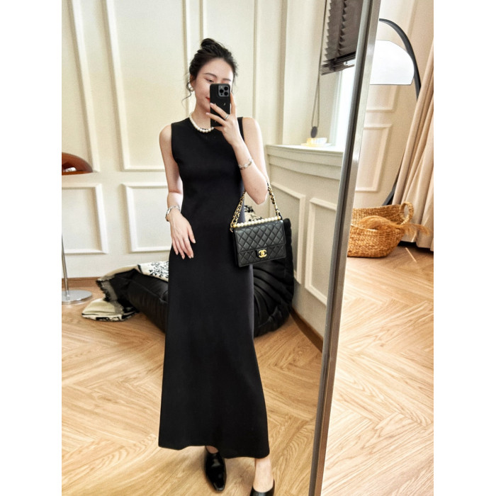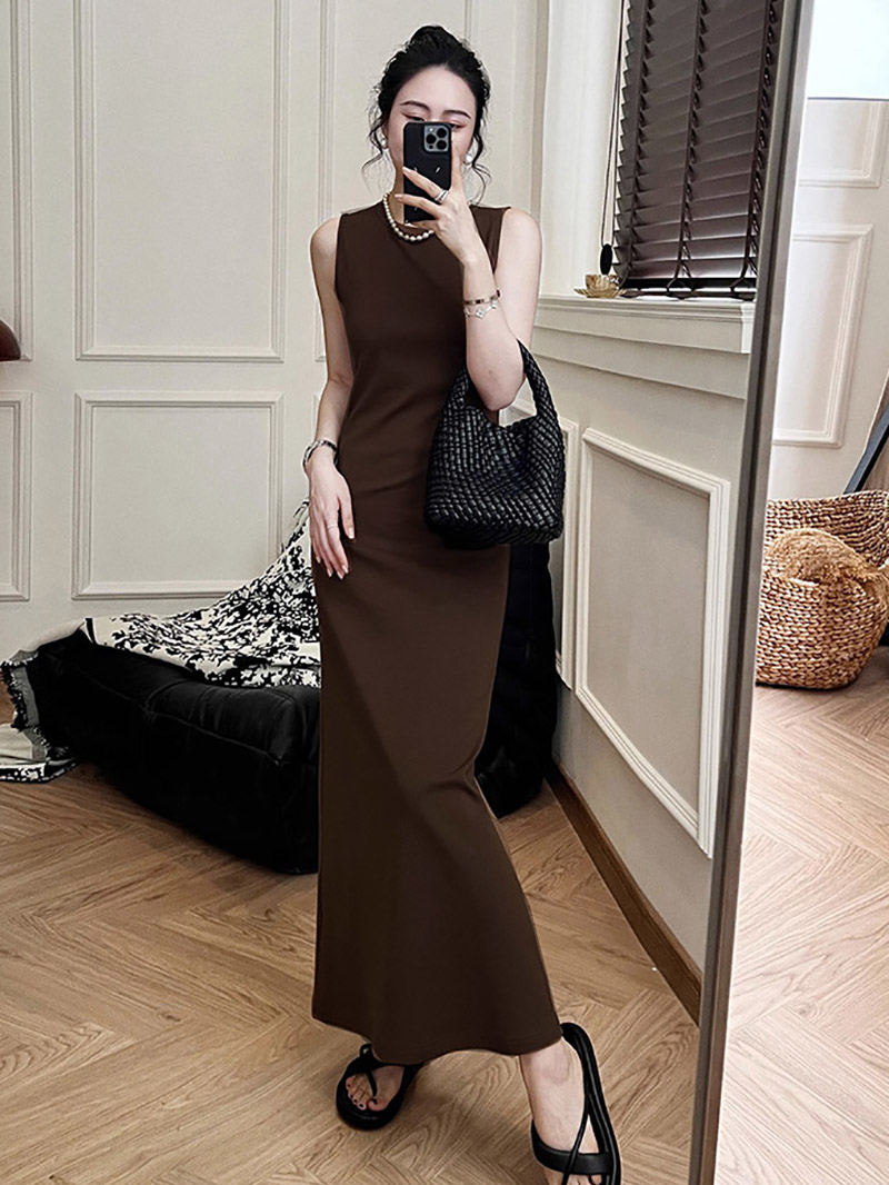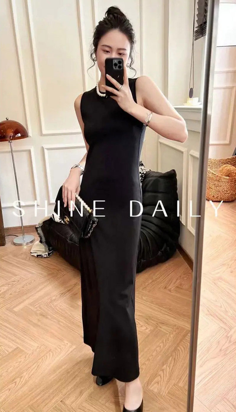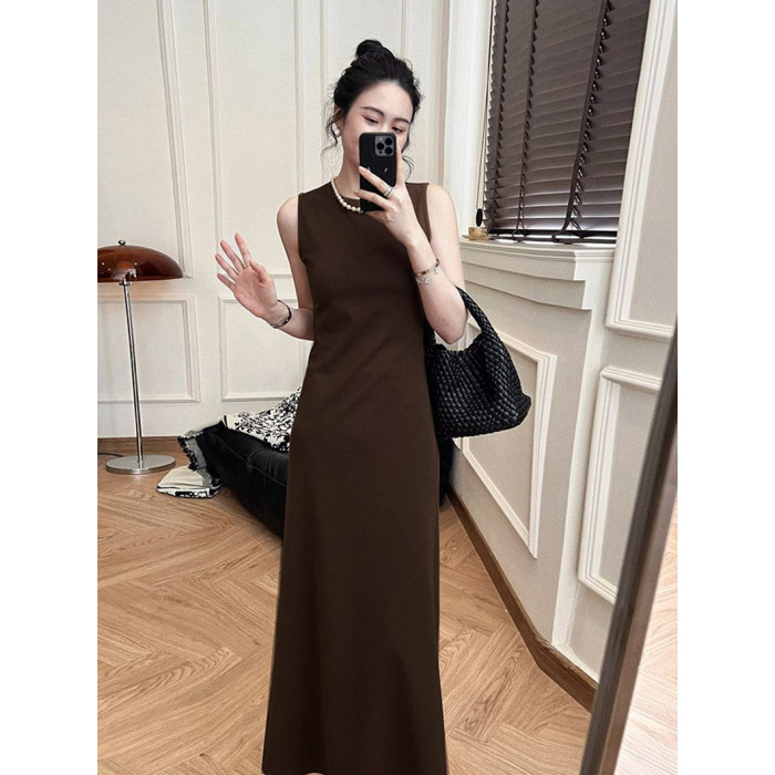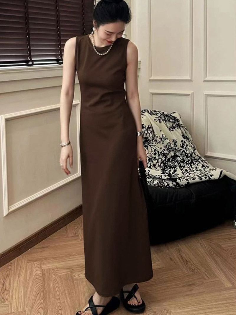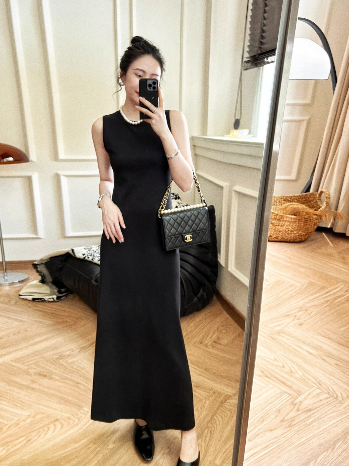 【棉羅紋高品質】法式優雅修身無袖背心式連衣裙顯瘦顯高女長裙