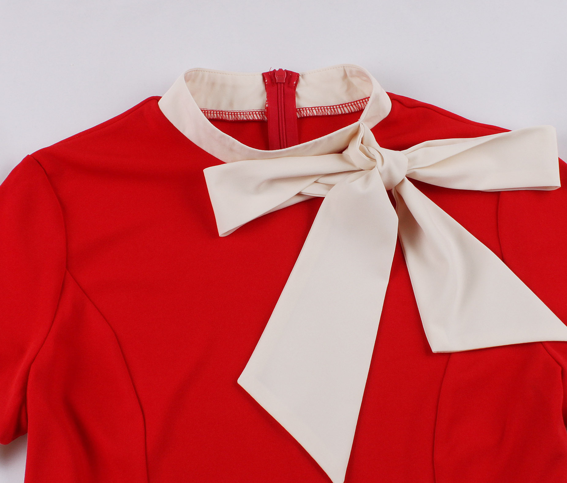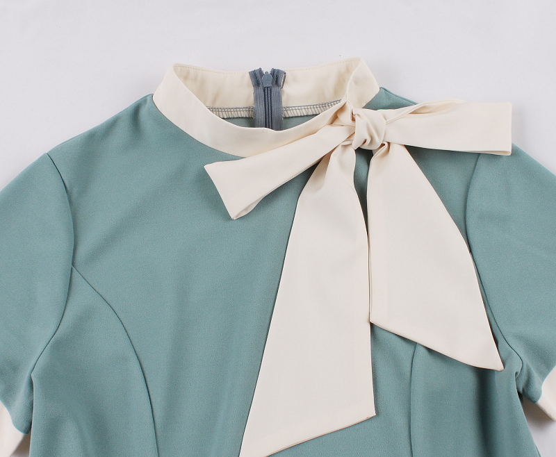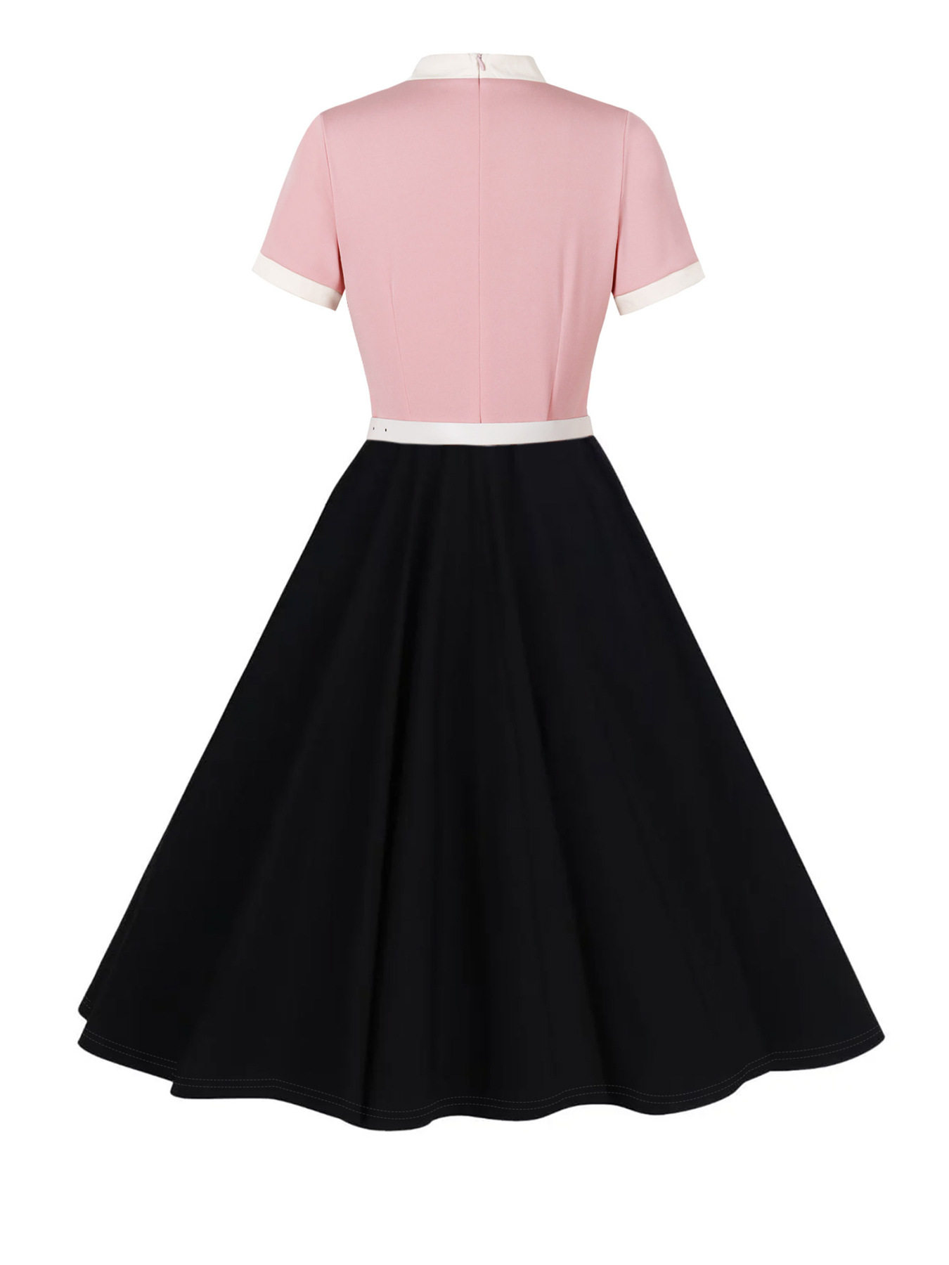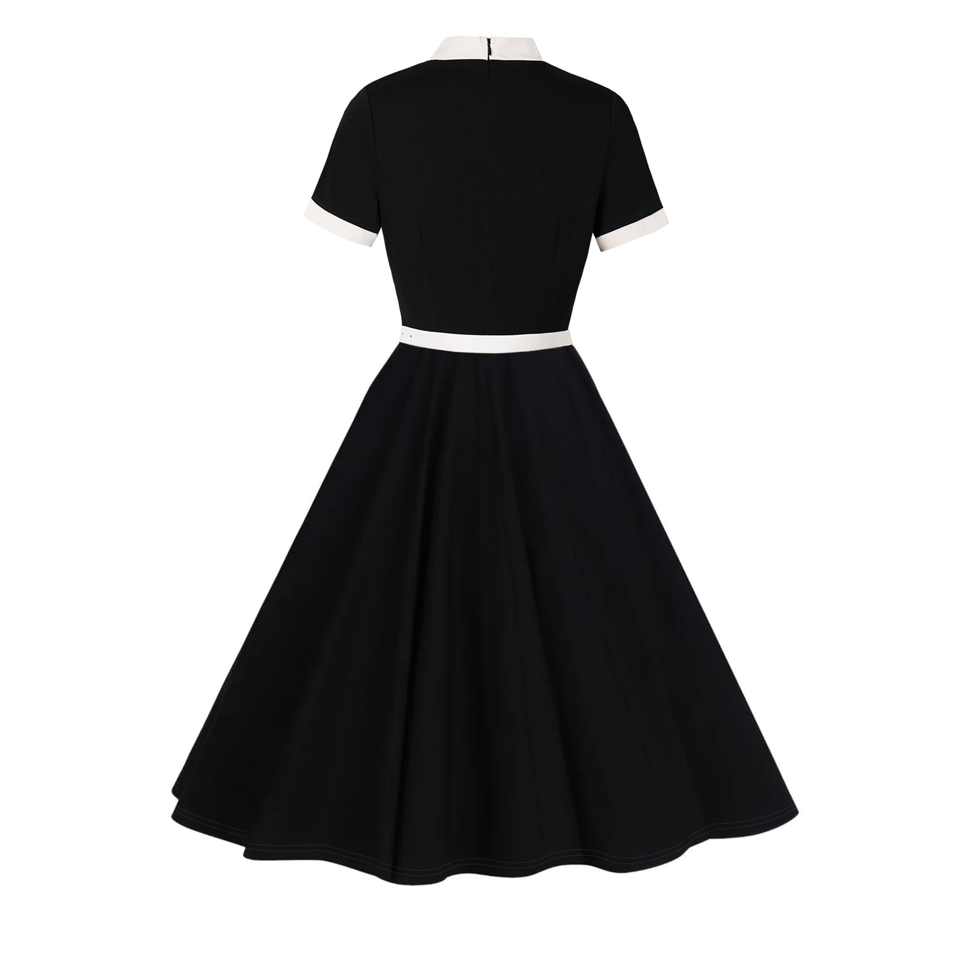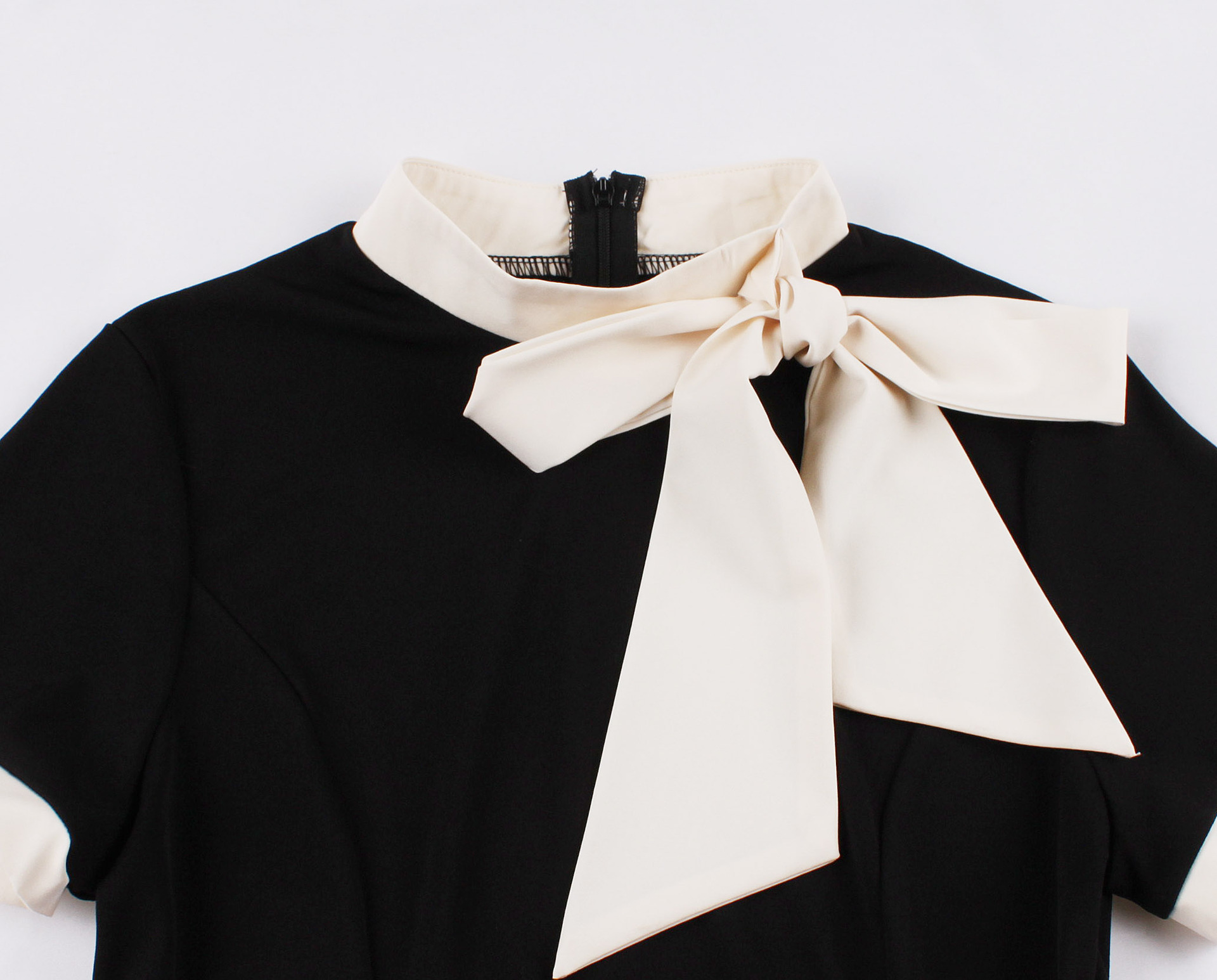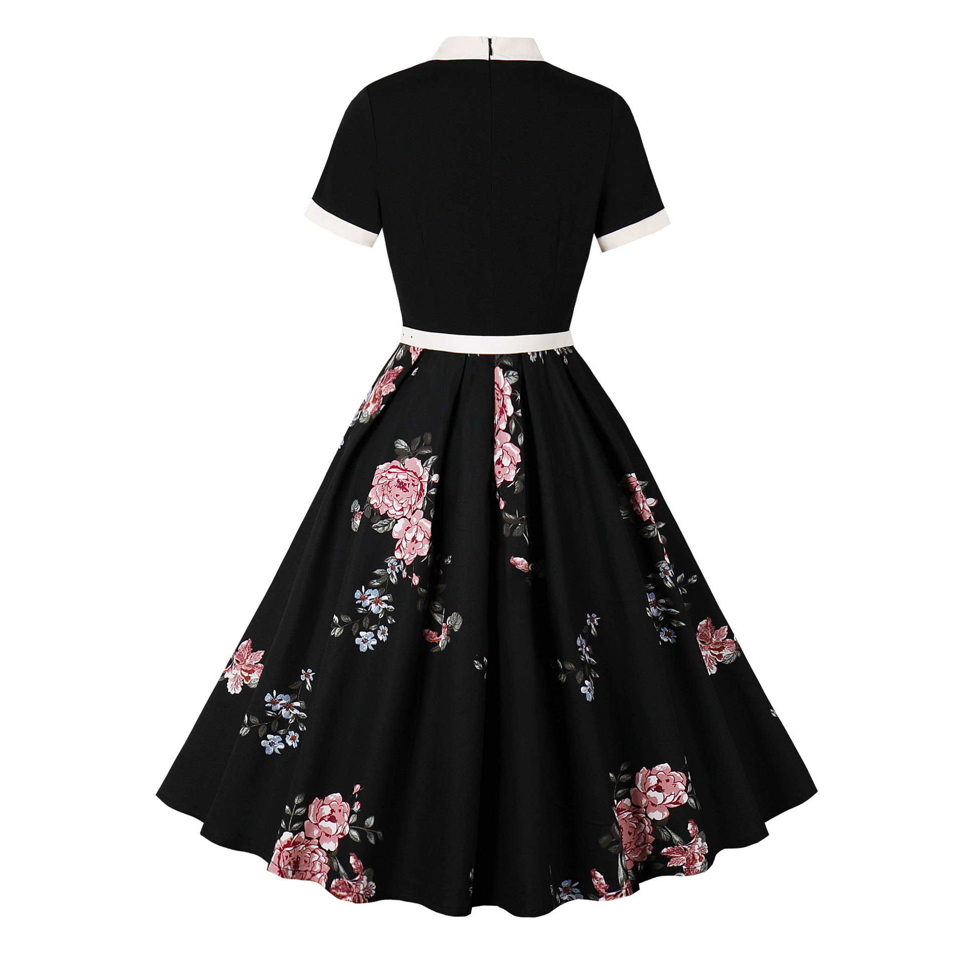 歐美懷舊復古年代赫本女裝大擺顯瘦印花綁帶蝴蝶結立領波點連衣裙