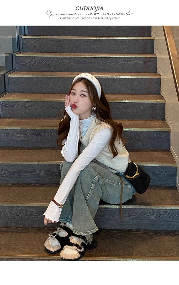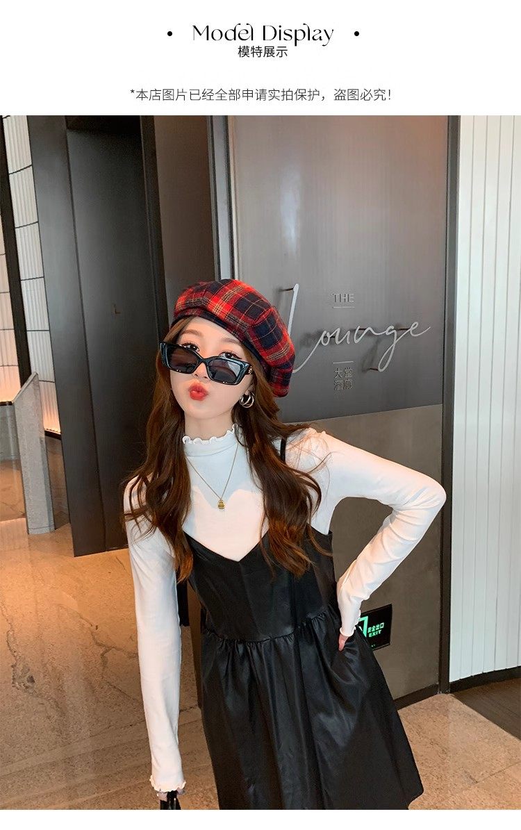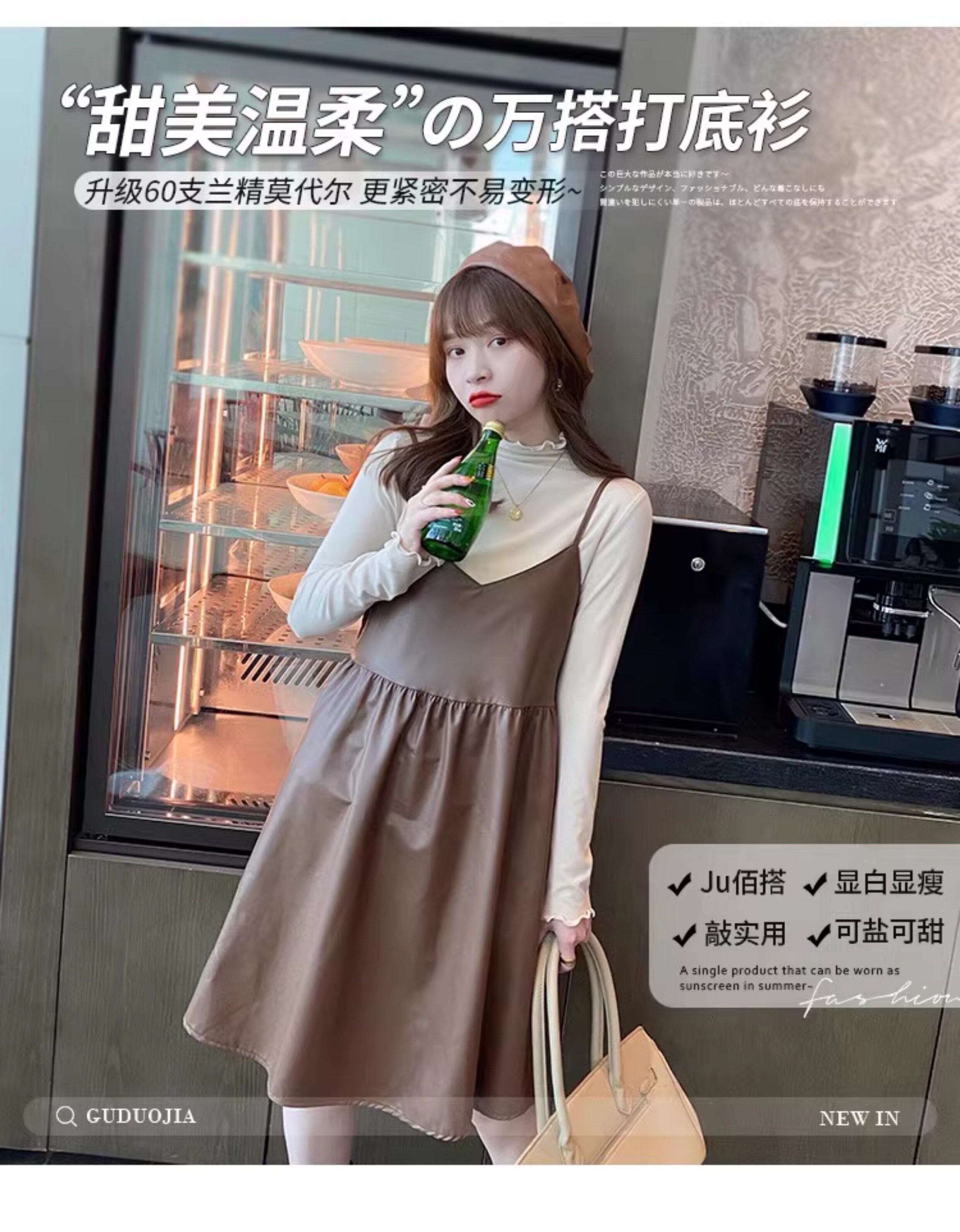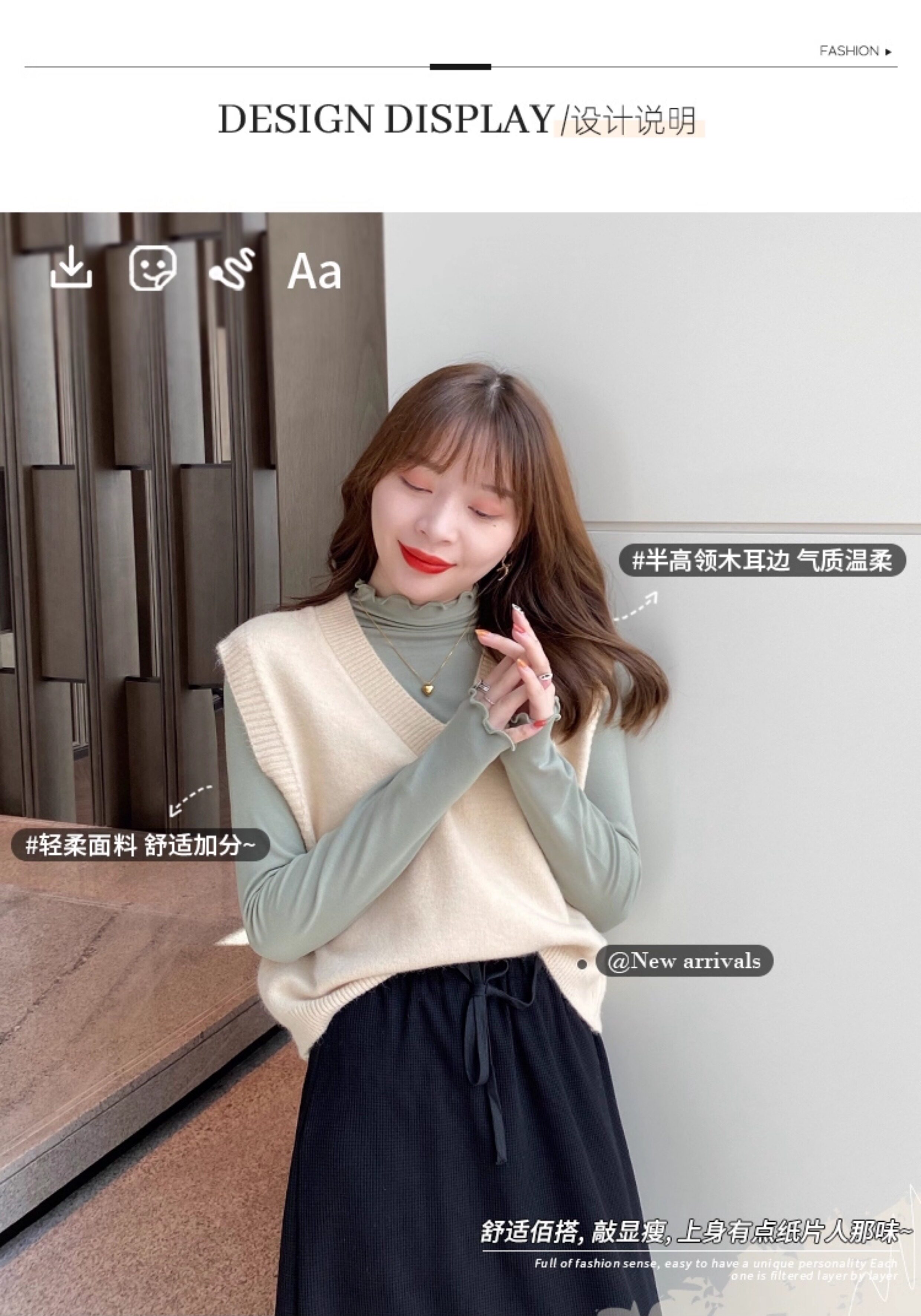打底衫女內搭春秋2024新款黑色半高領莫代爾白色秋冬木耳邊上衣