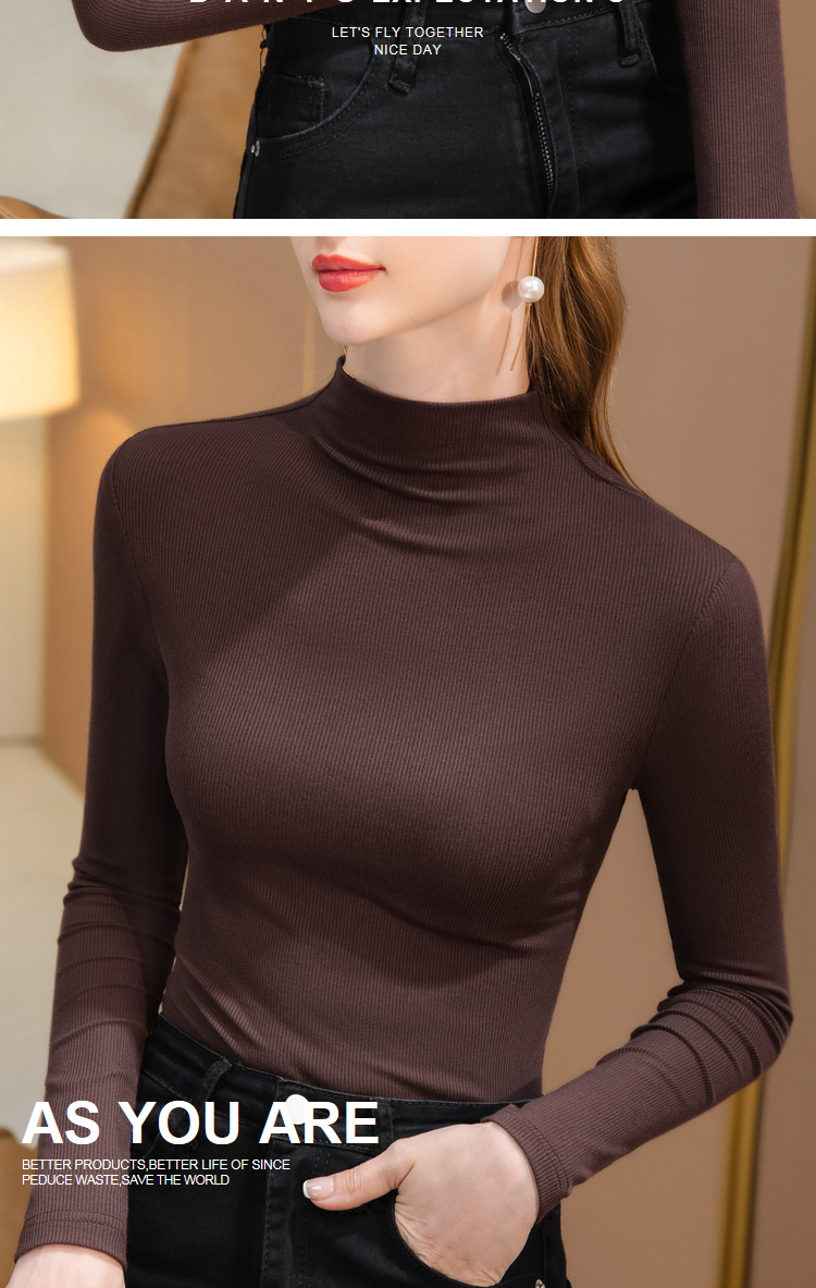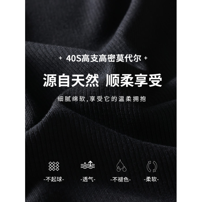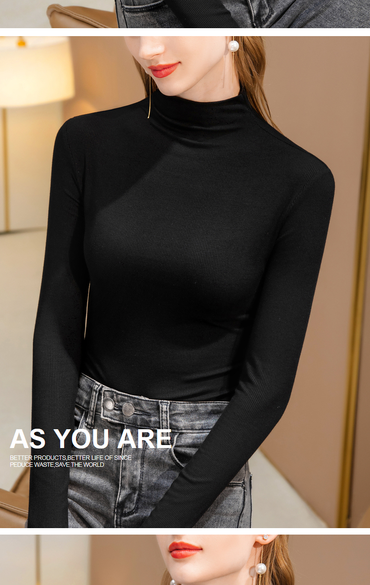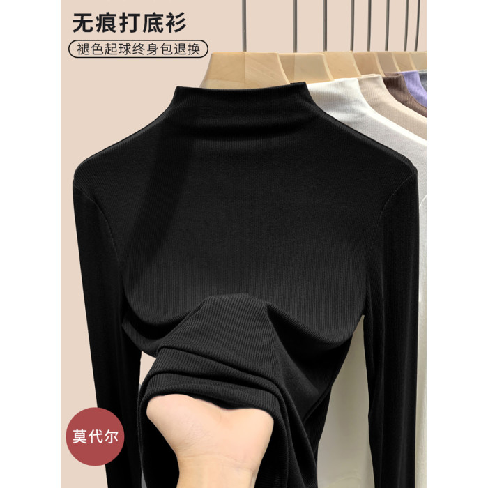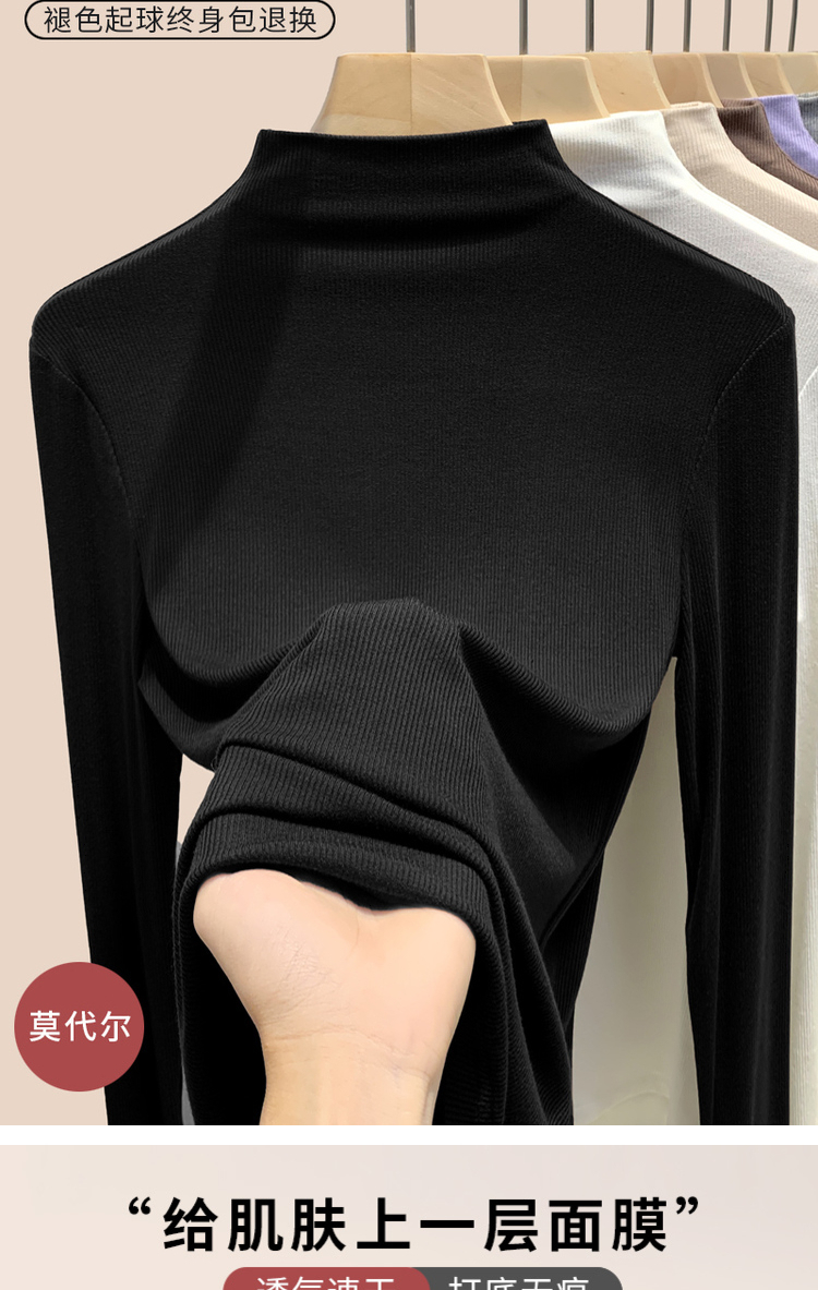 半高領黑色打底衫女2025新款內搭秋冬季莫代爾長袖T恤春秋季上衣