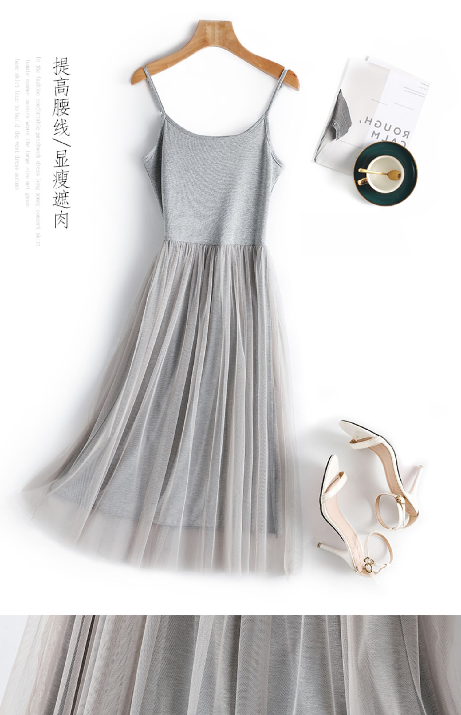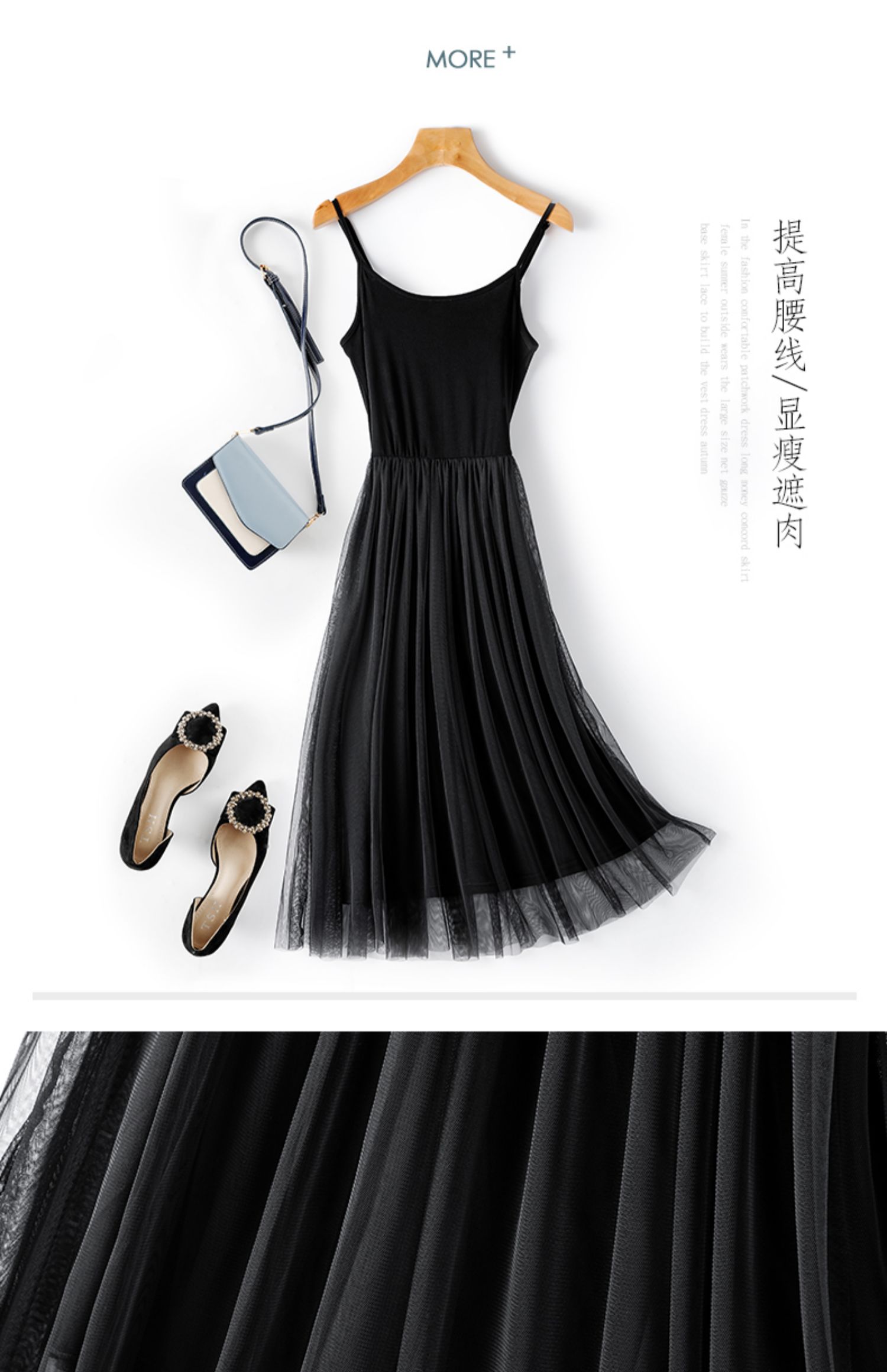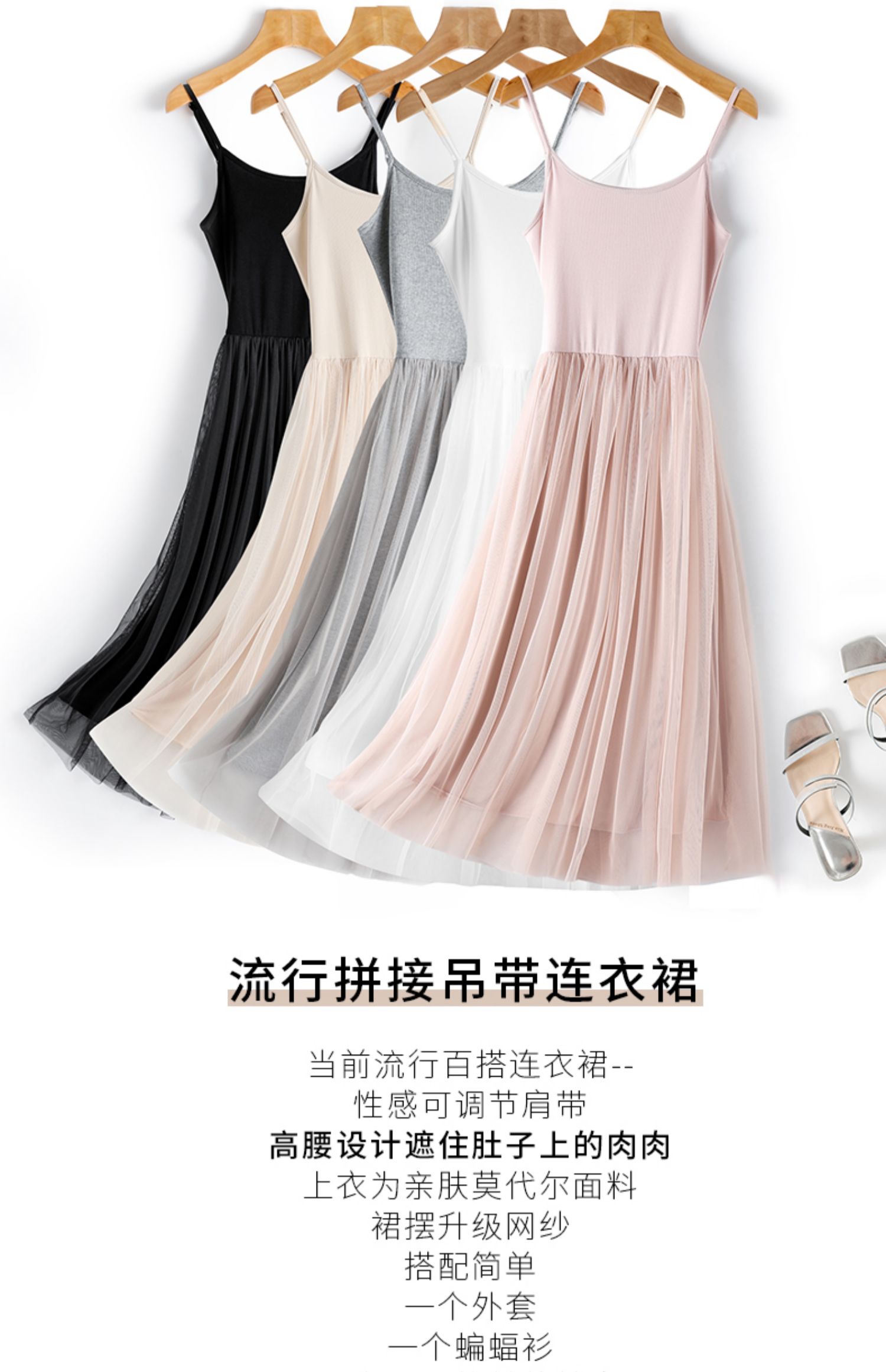 莫代爾內搭吊帶連衣裙女春秋顯瘦長裙2025年新款外穿百搭網紗裙子