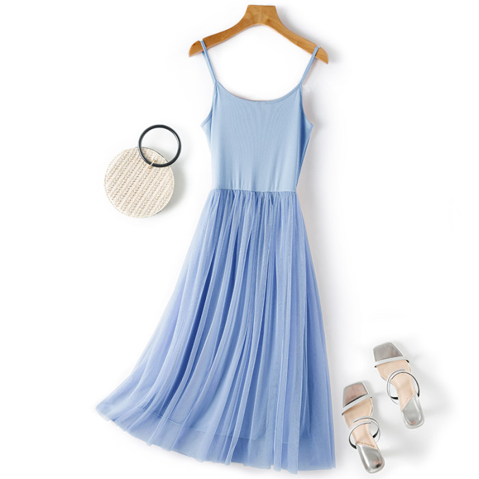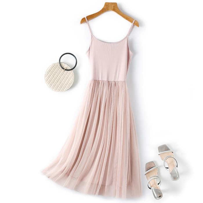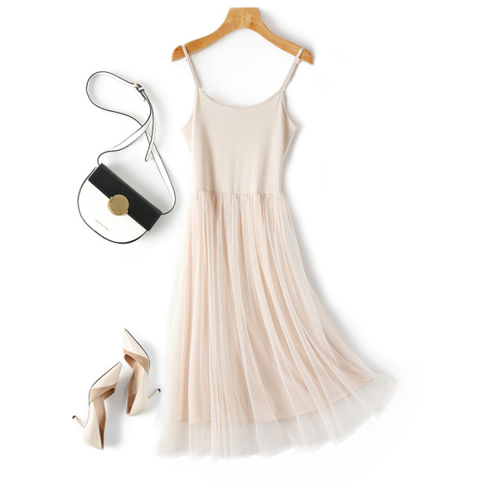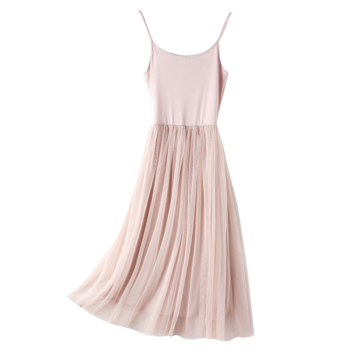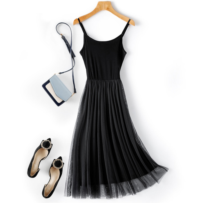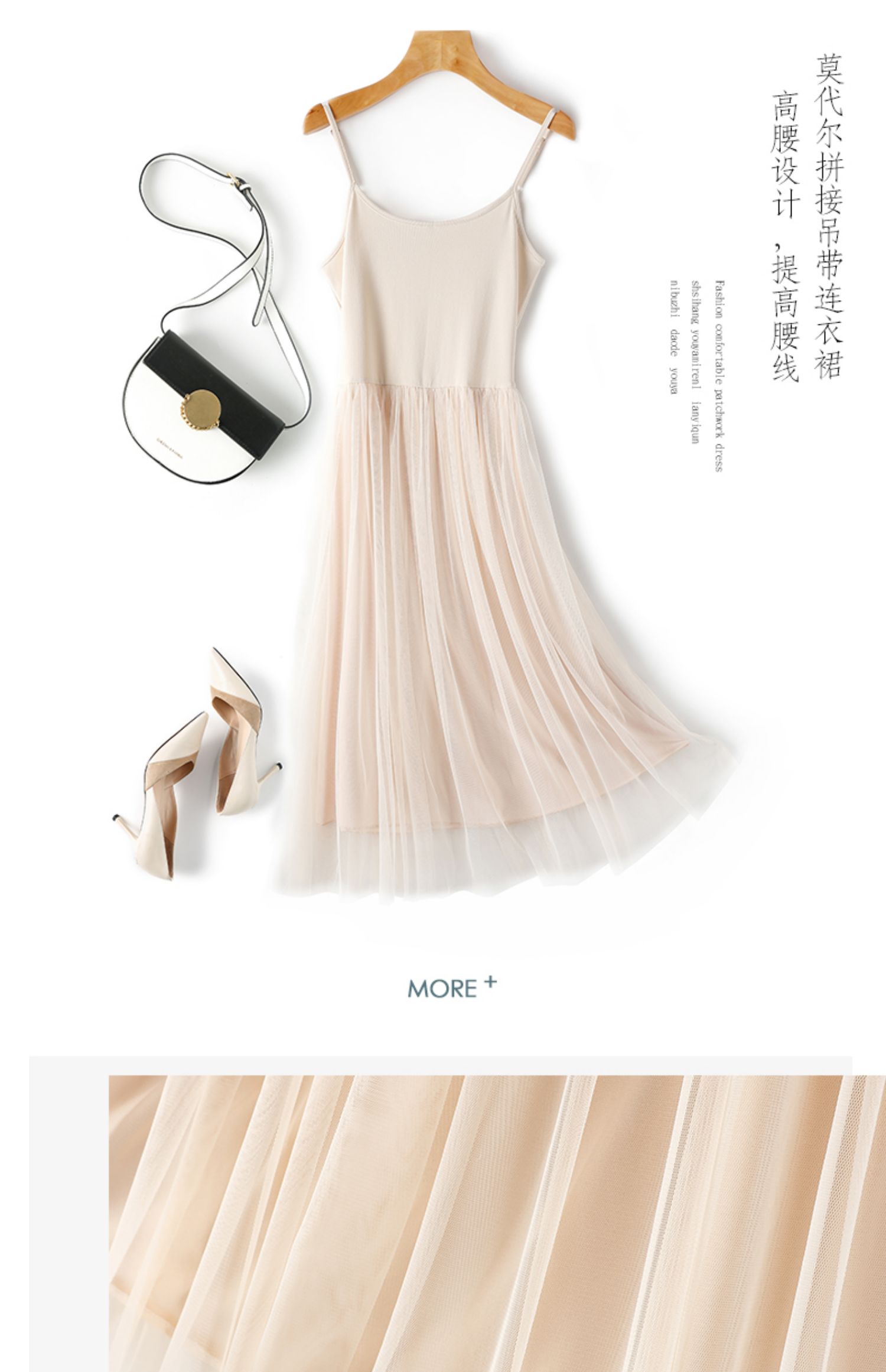 莫代爾內搭吊帶連衣裙女春秋顯瘦長裙2025年新款外穿百搭網紗裙子
