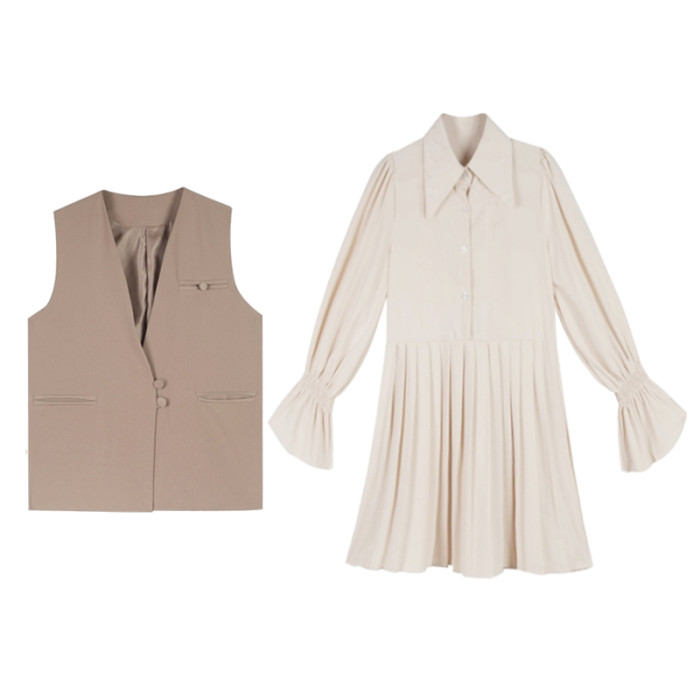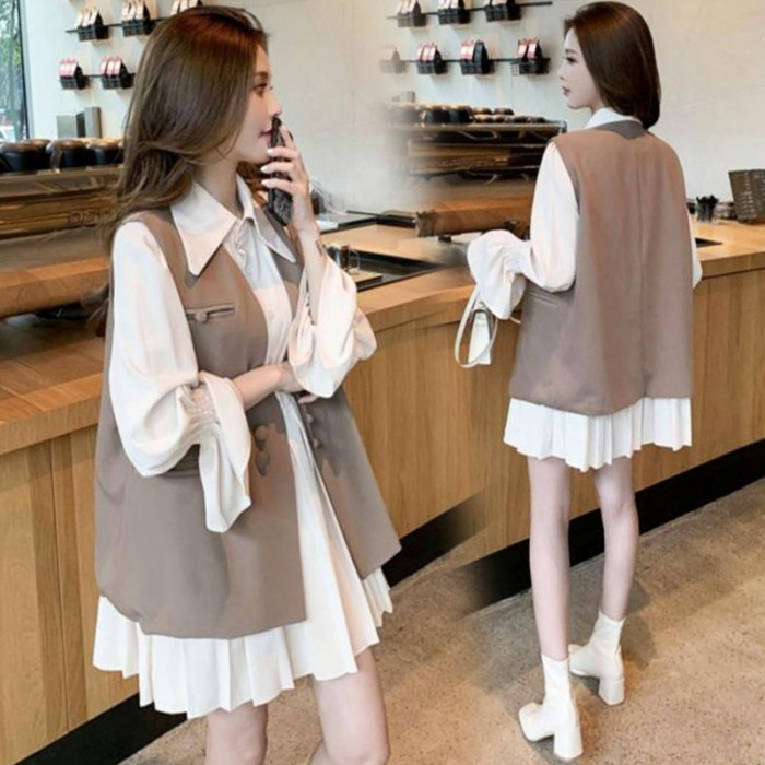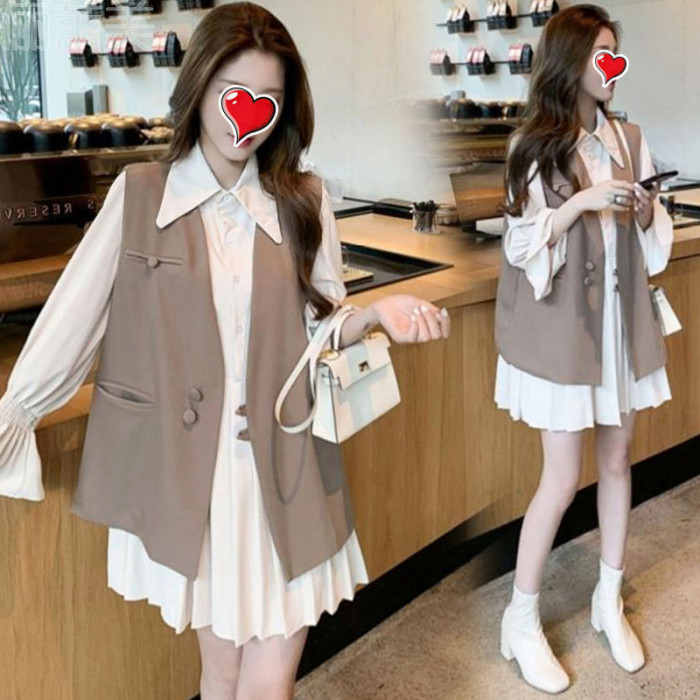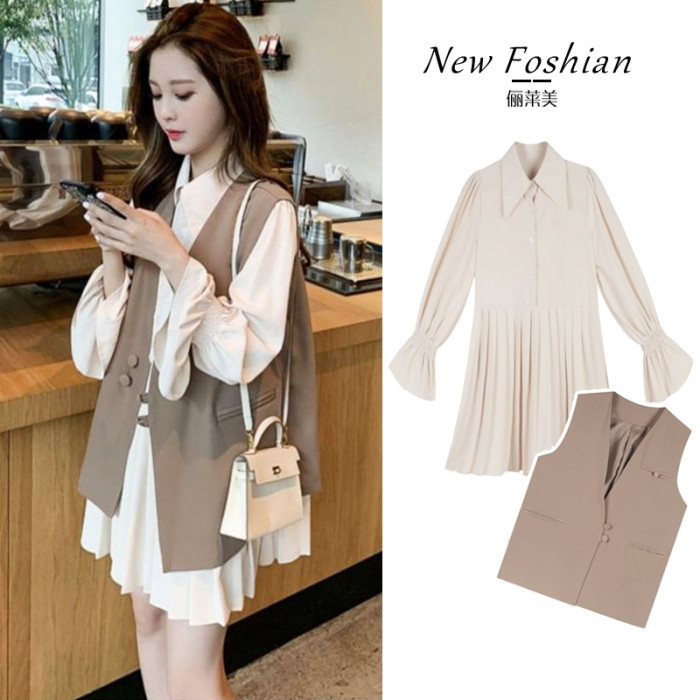 秋季連衣裙套裝女2025新款禦姐馬甲小香風襯衫裙大碼寬松兩件套