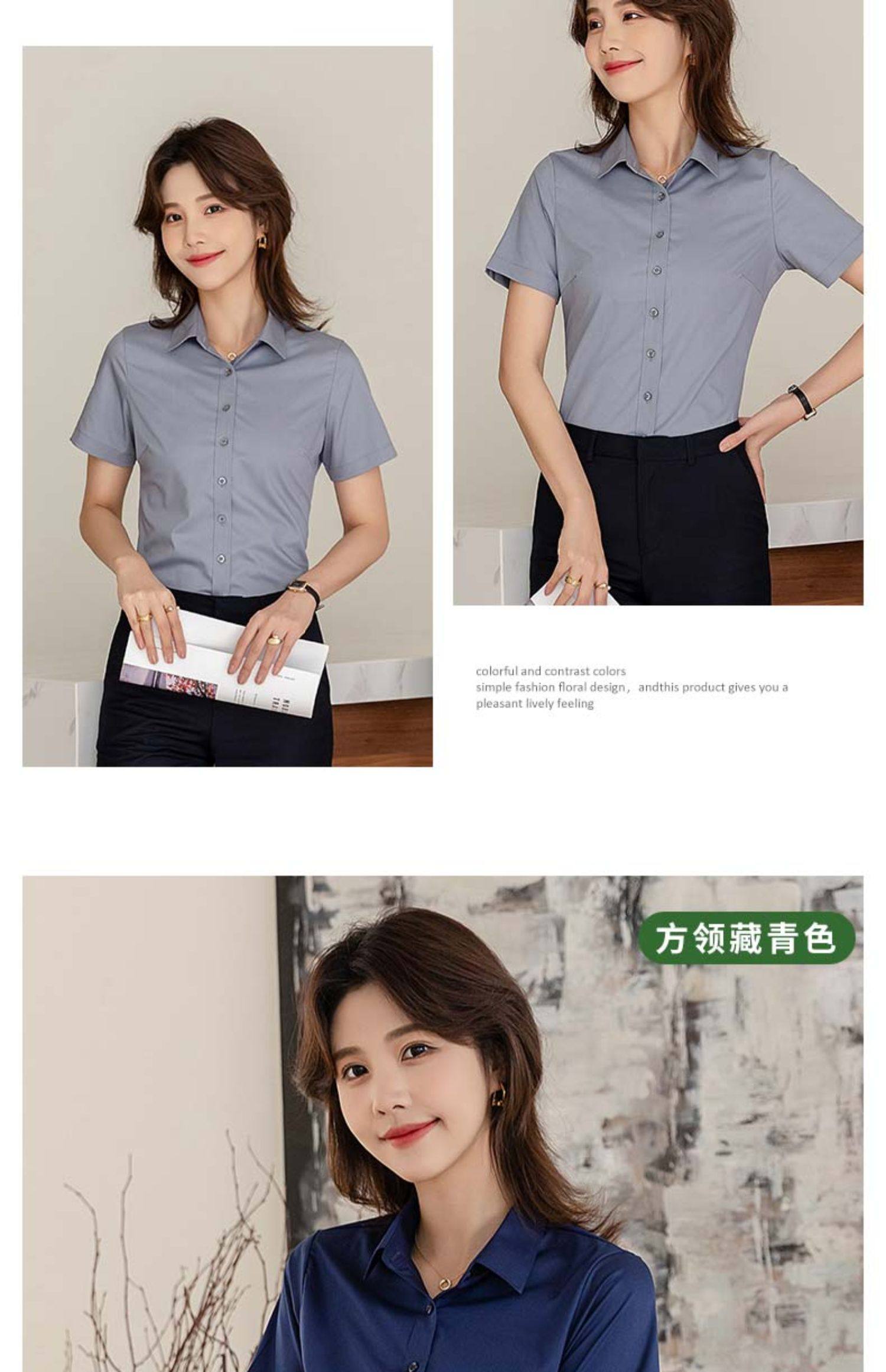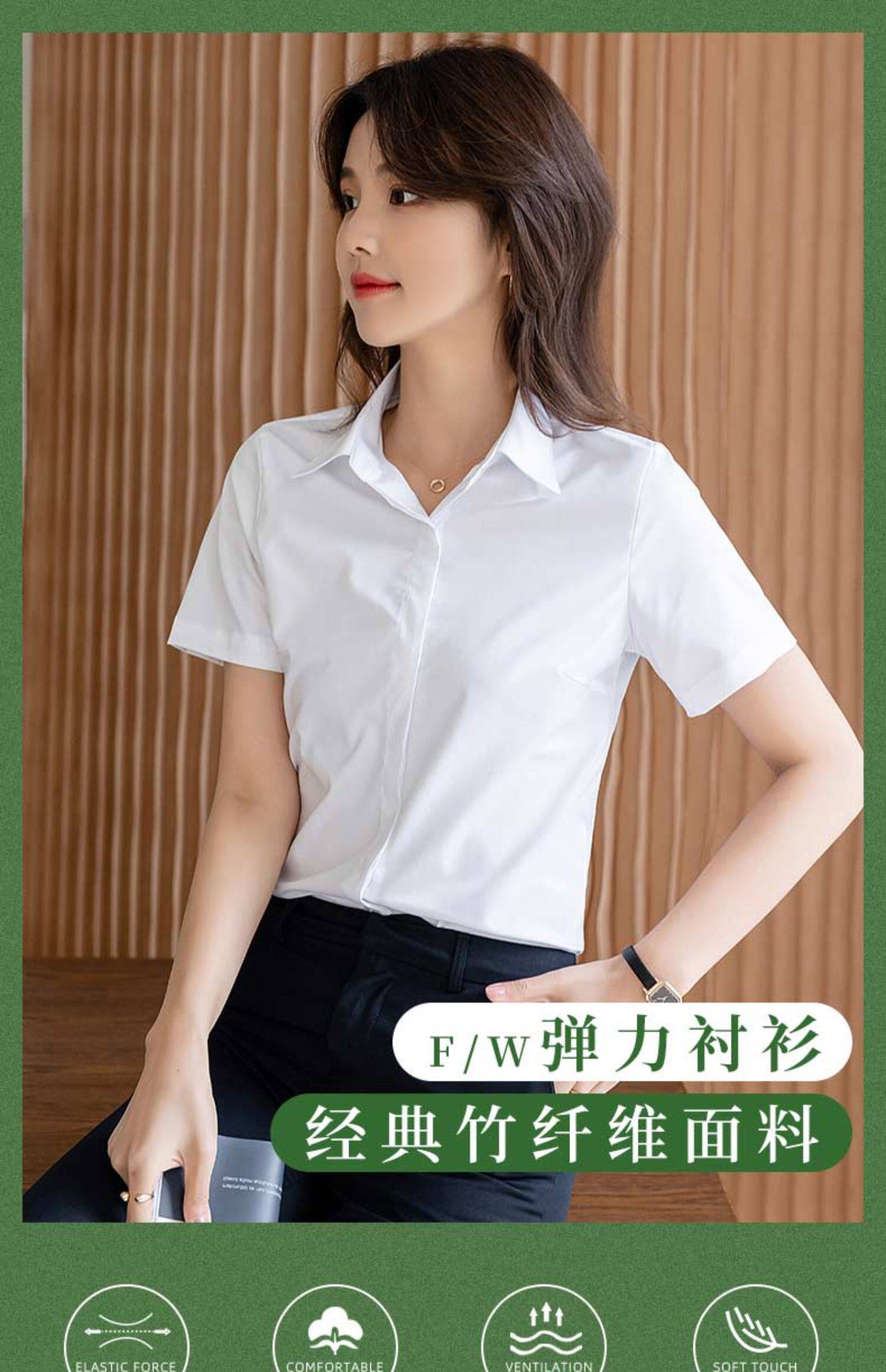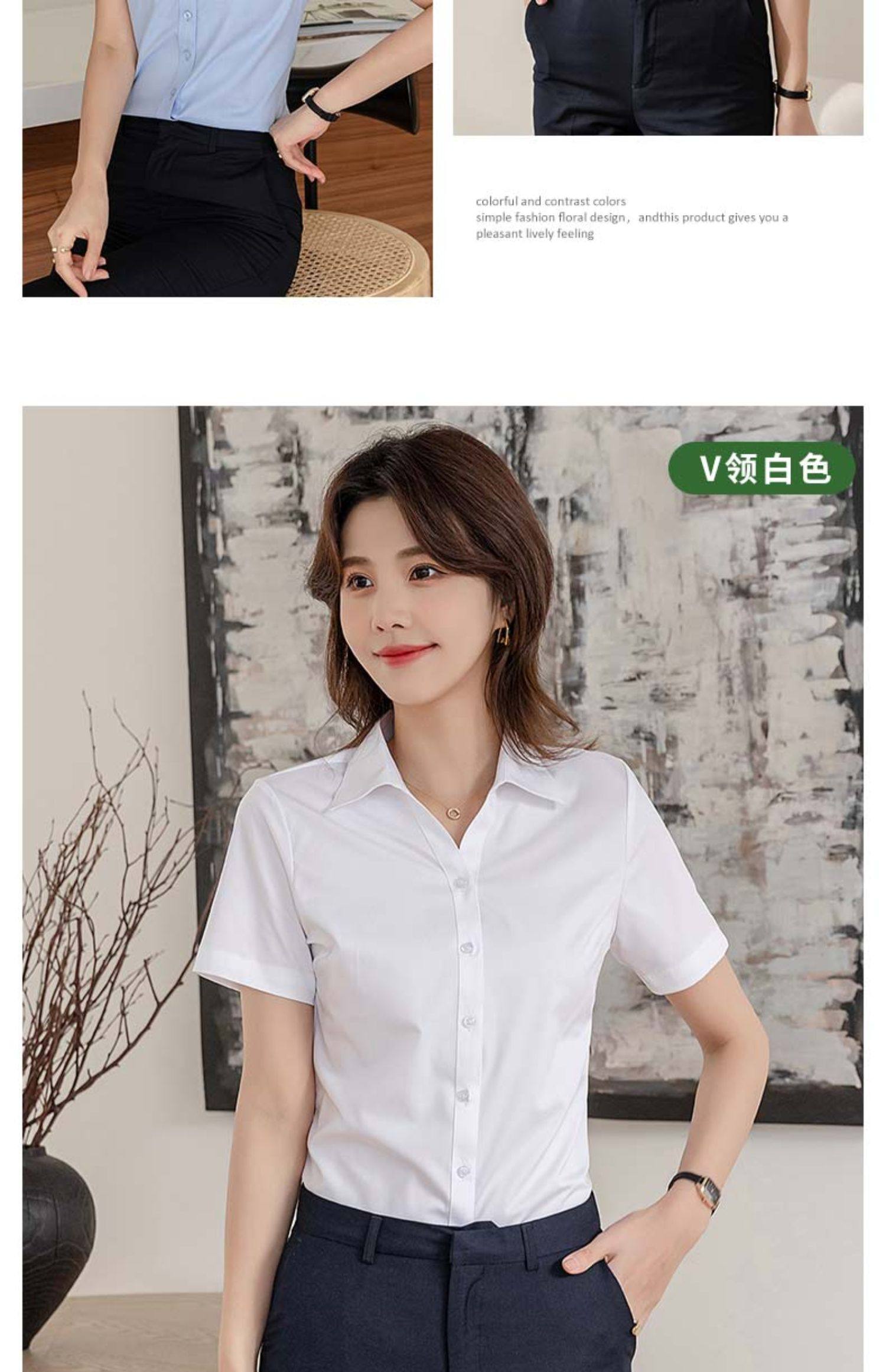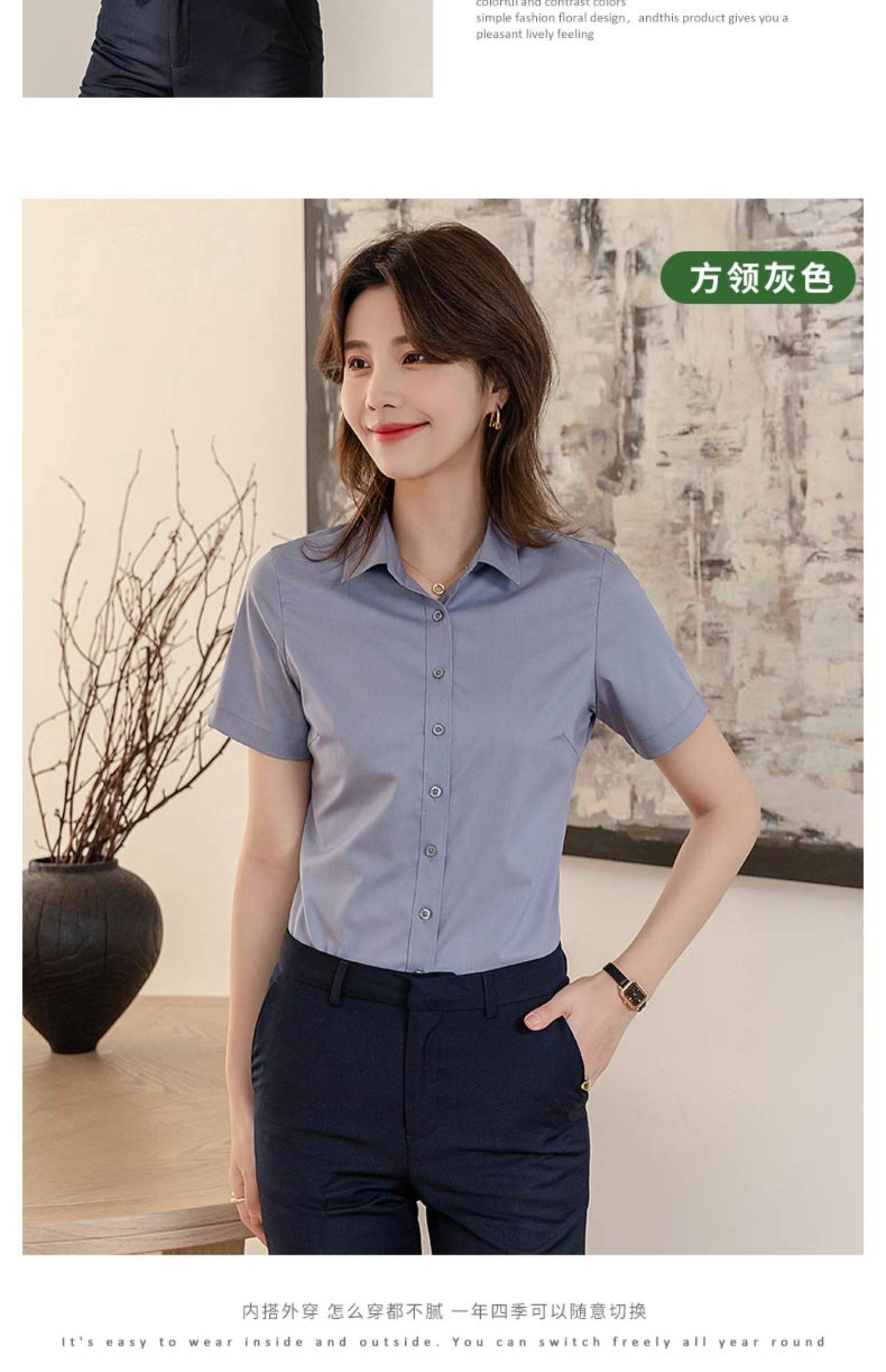 竹纖維氣質灰色短袖襯衫女V領職業上班正裝工作服長袖白襯衣薄款