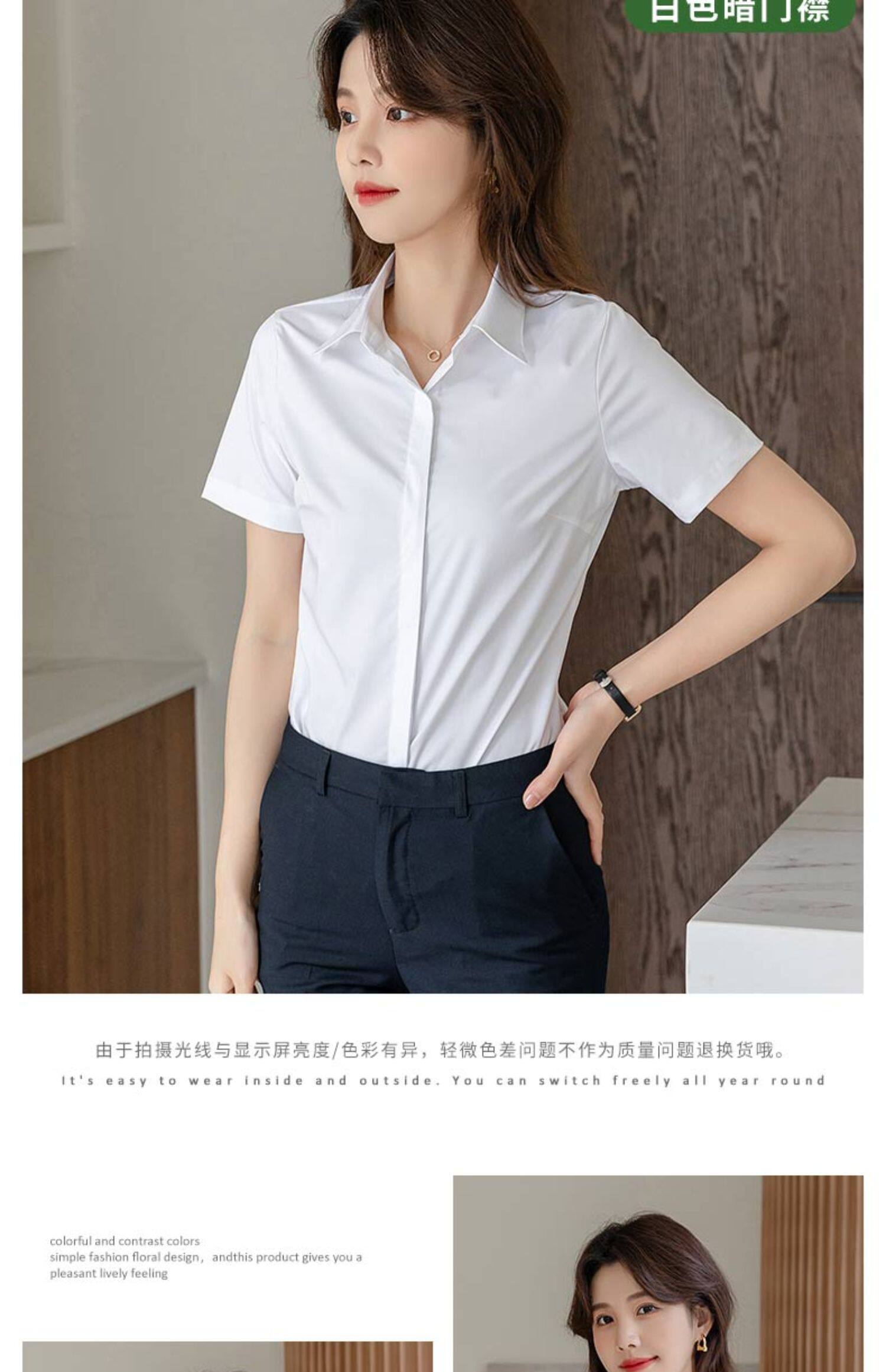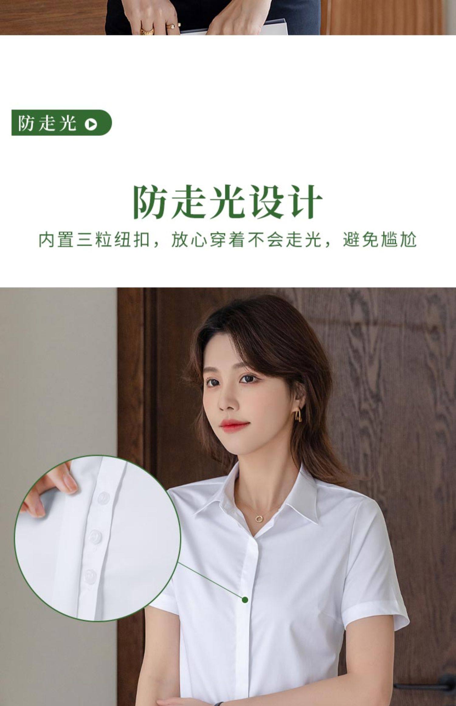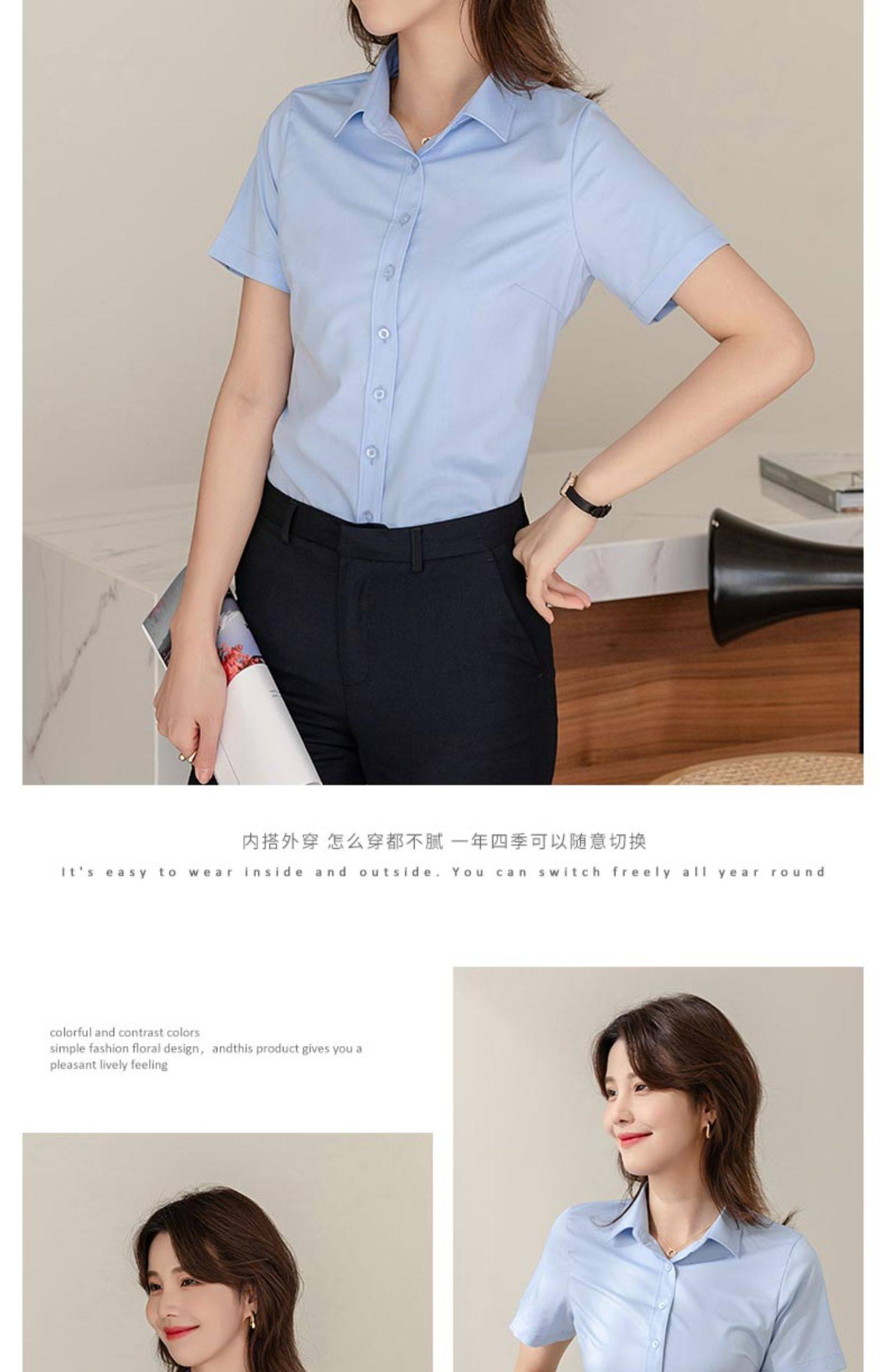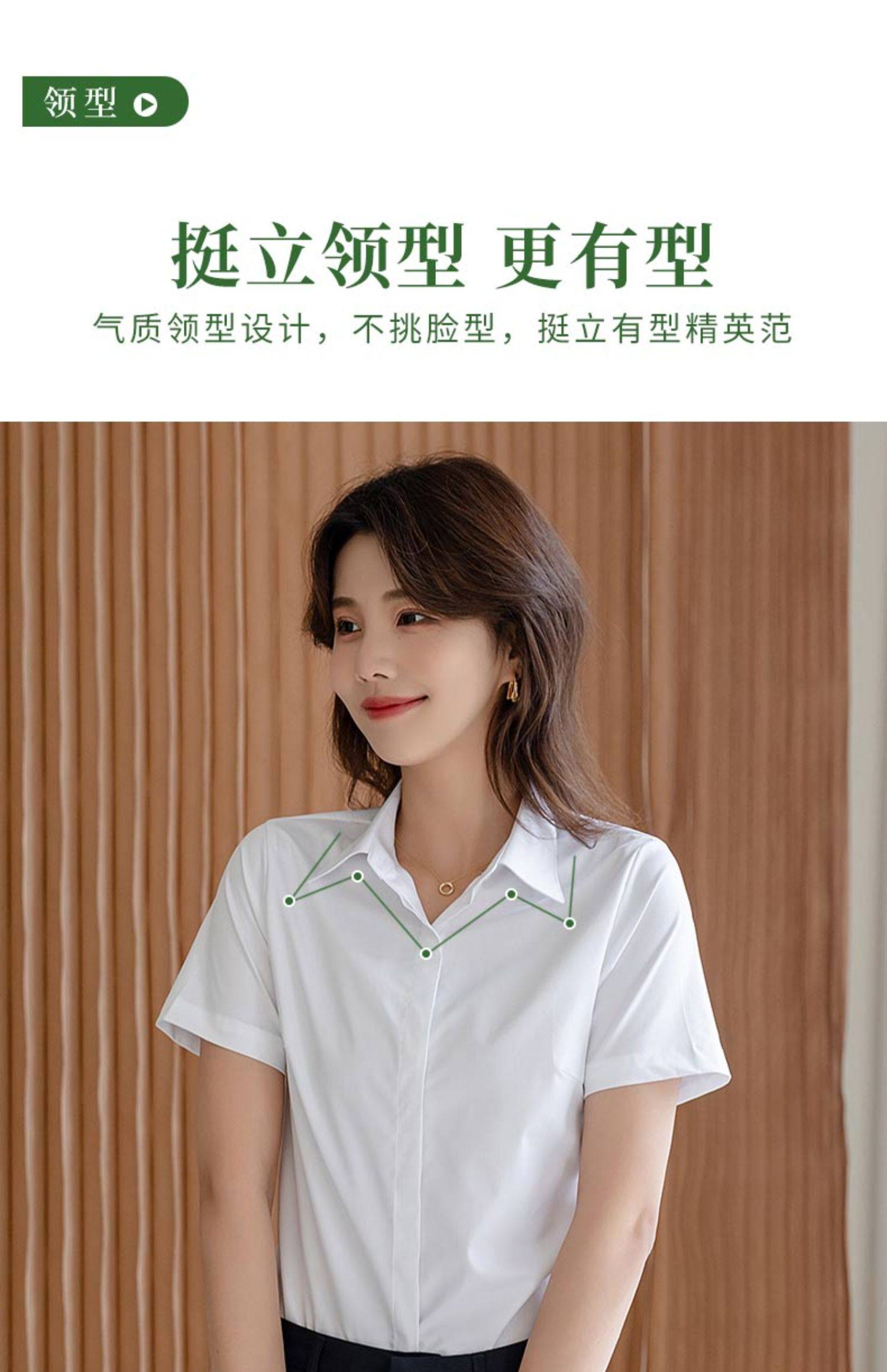 竹纖維氣質灰色短袖襯衫女V領職業上班正裝工作服長袖白襯衣薄款