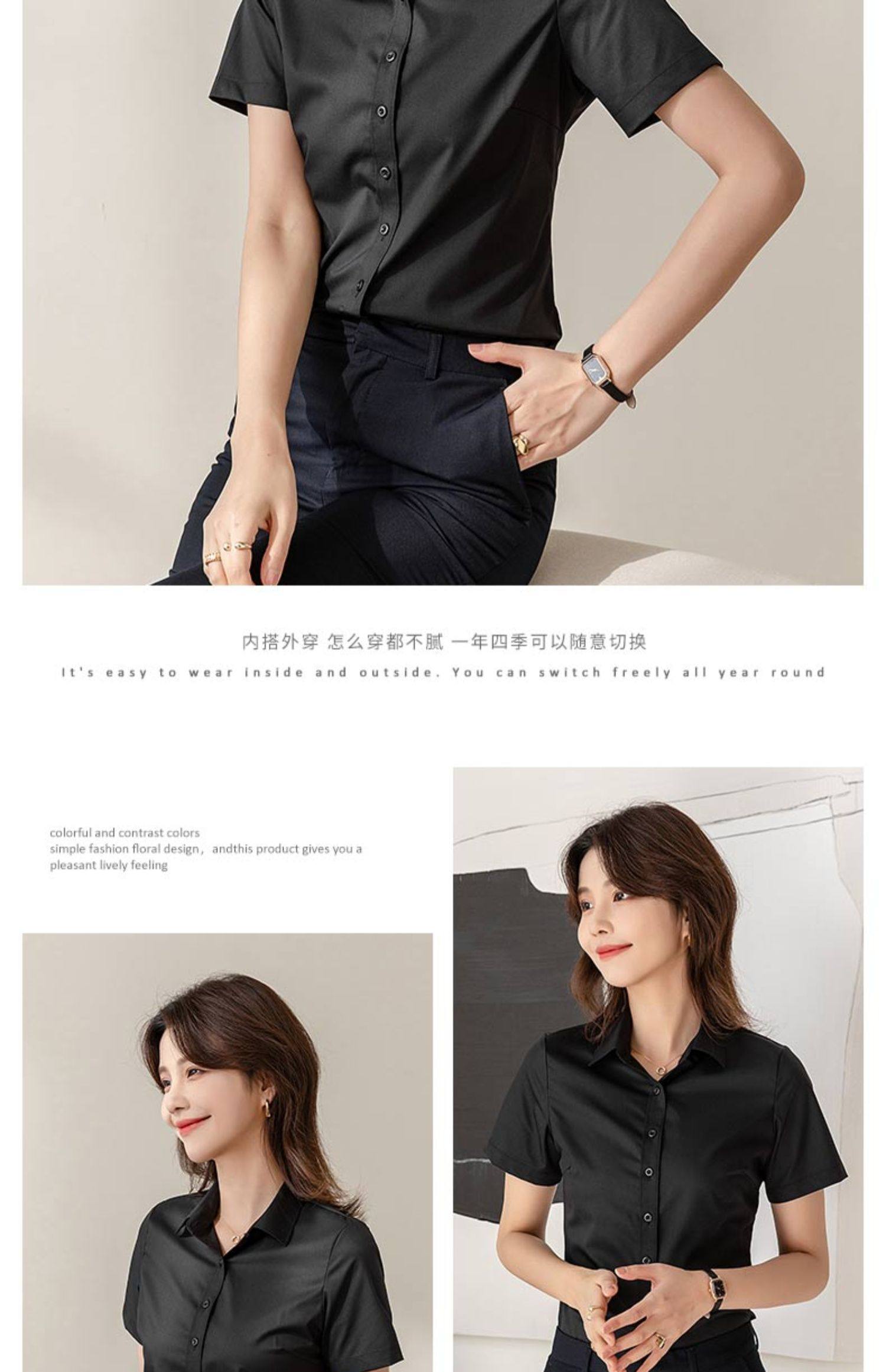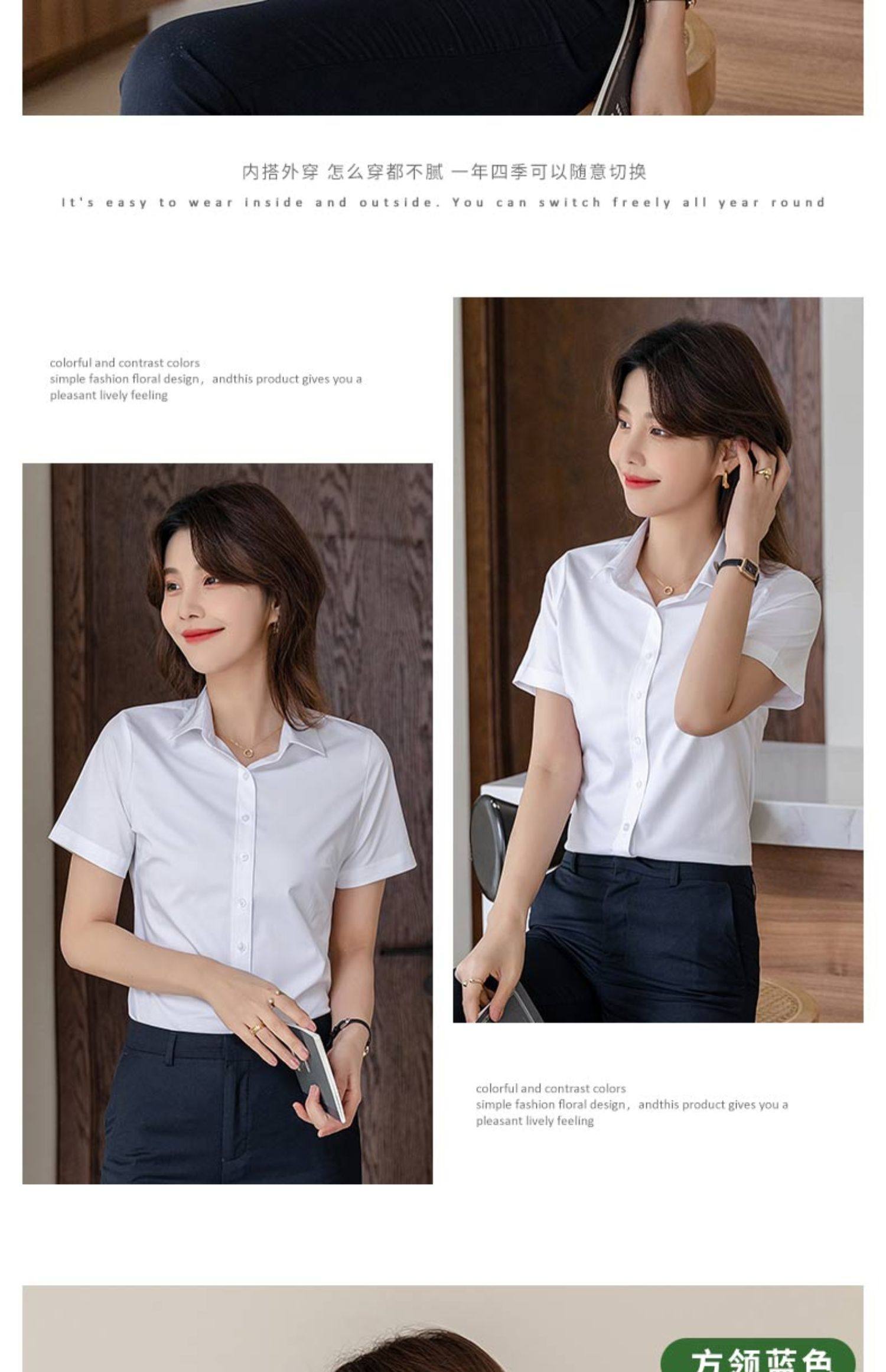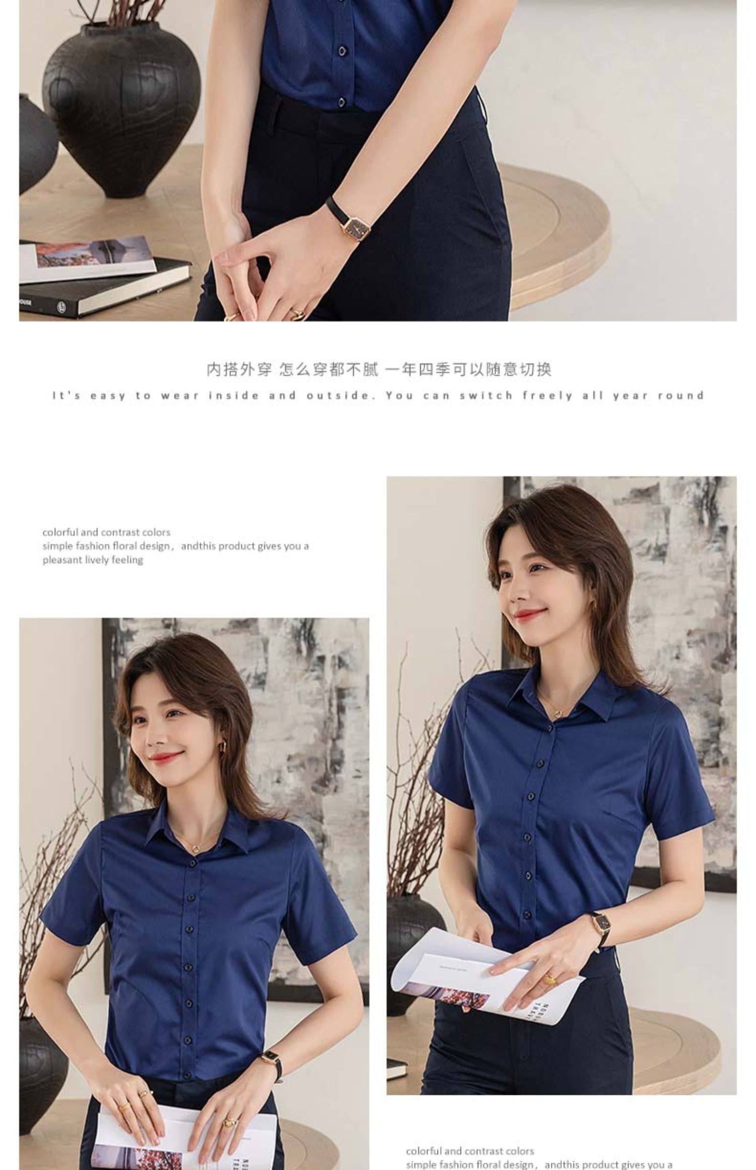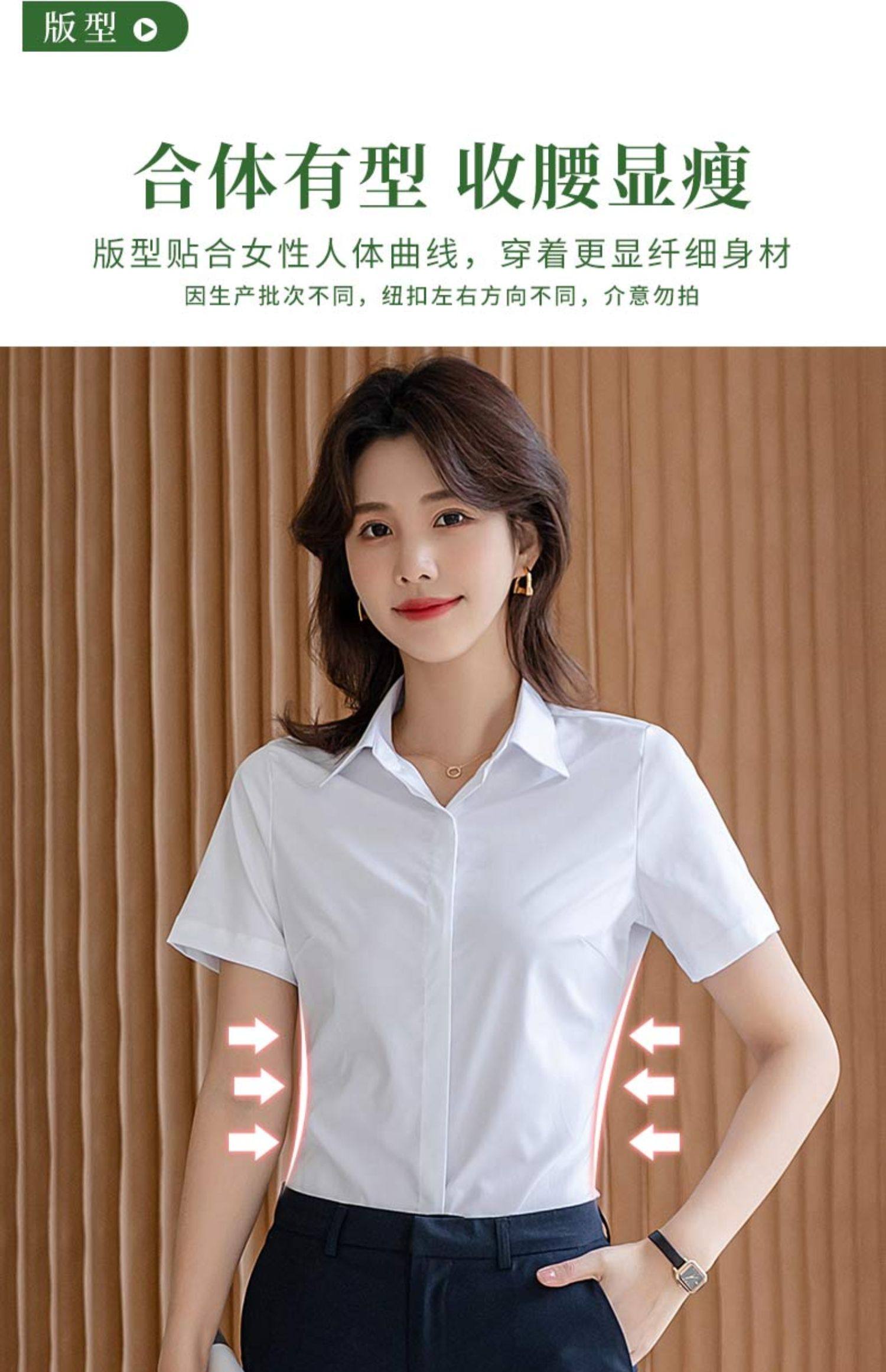 竹纖維氣質灰色短袖襯衫女V領職業上班正裝工作服長袖白襯衣薄款