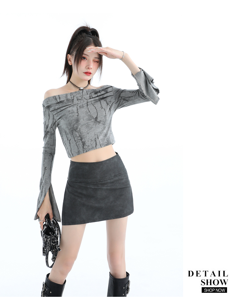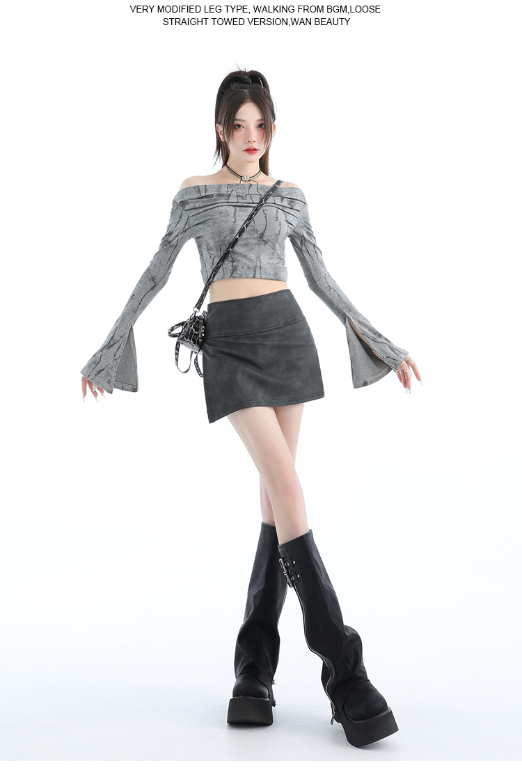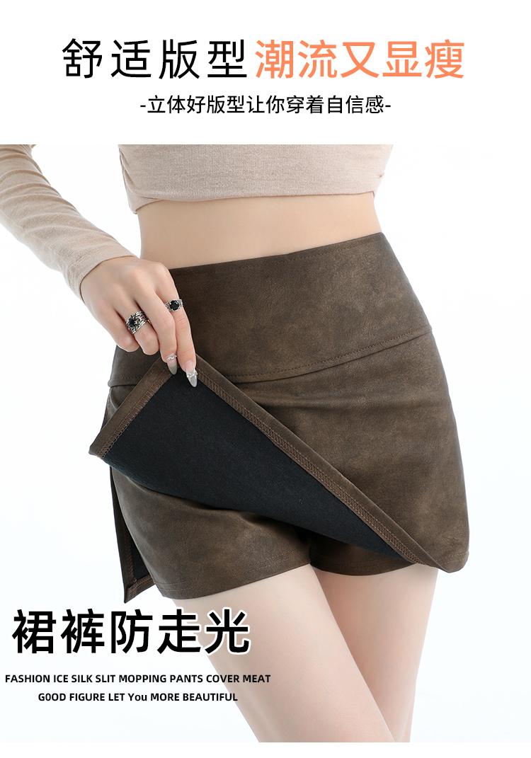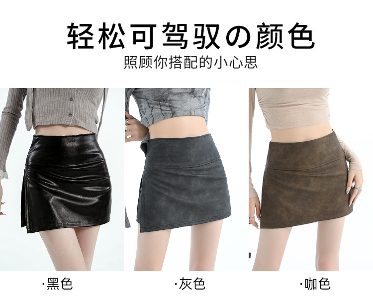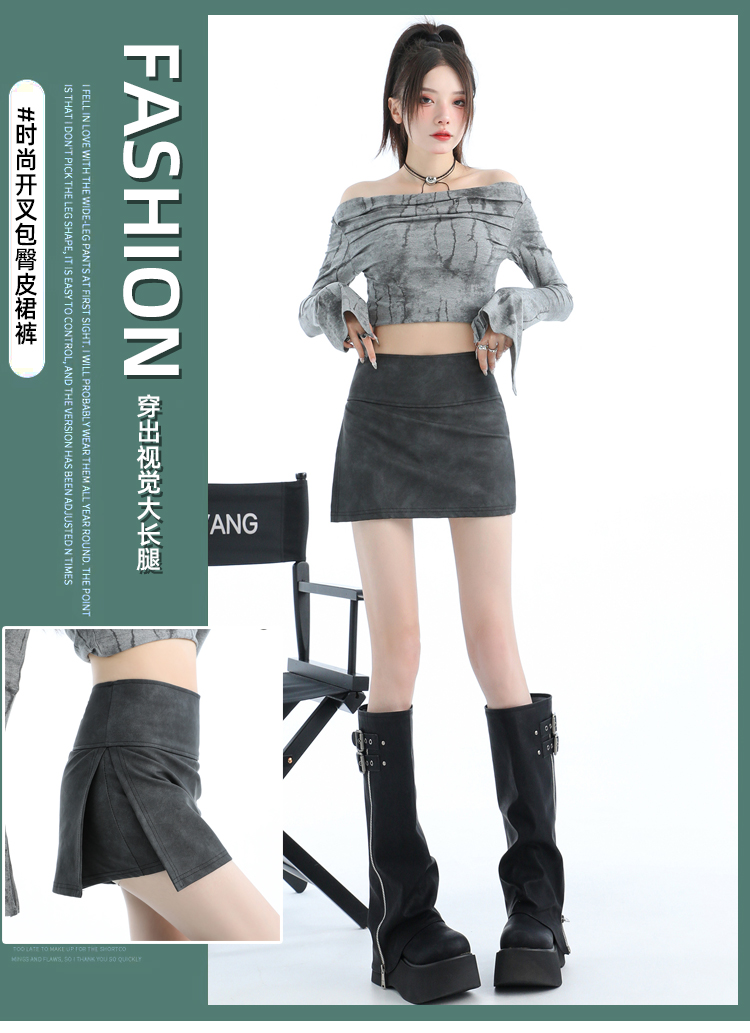MASS 灰色pu皮半身裙女秋冬高腰包臀a字短裙子超火限步半裙褲裙