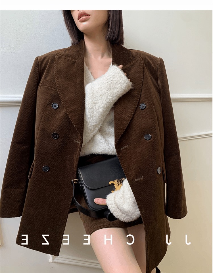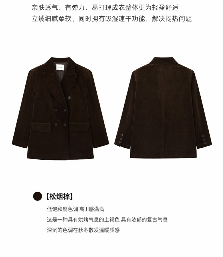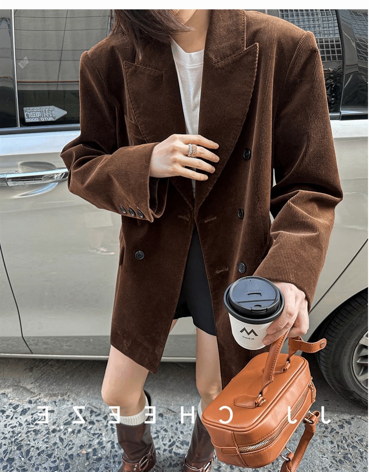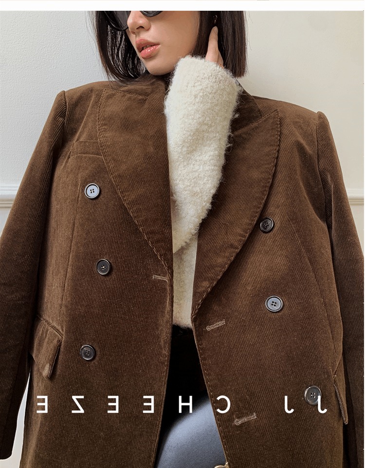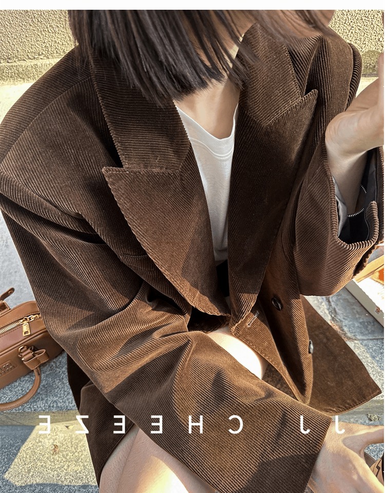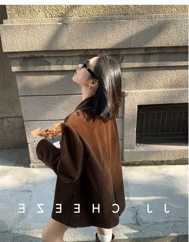 燈芯絨西裝外套女春秋高級感穿搭氣質休閒修身復古西服