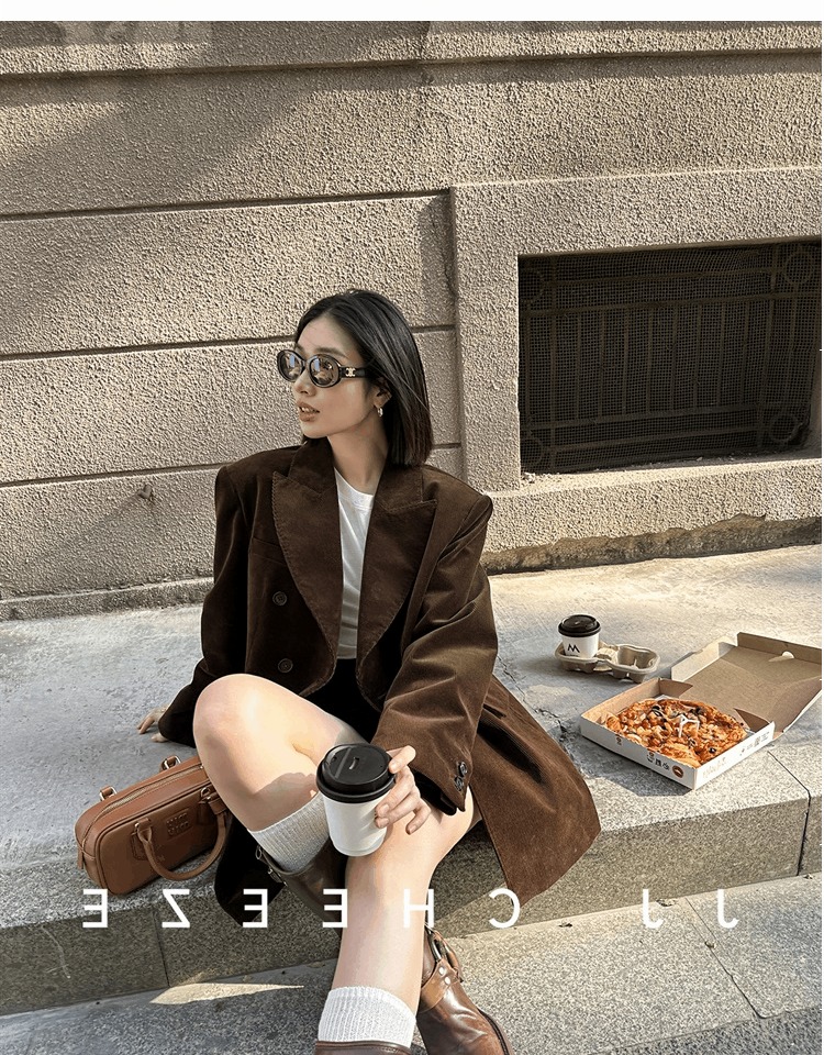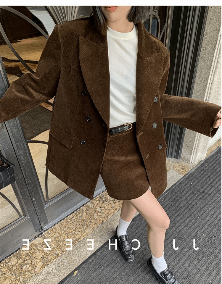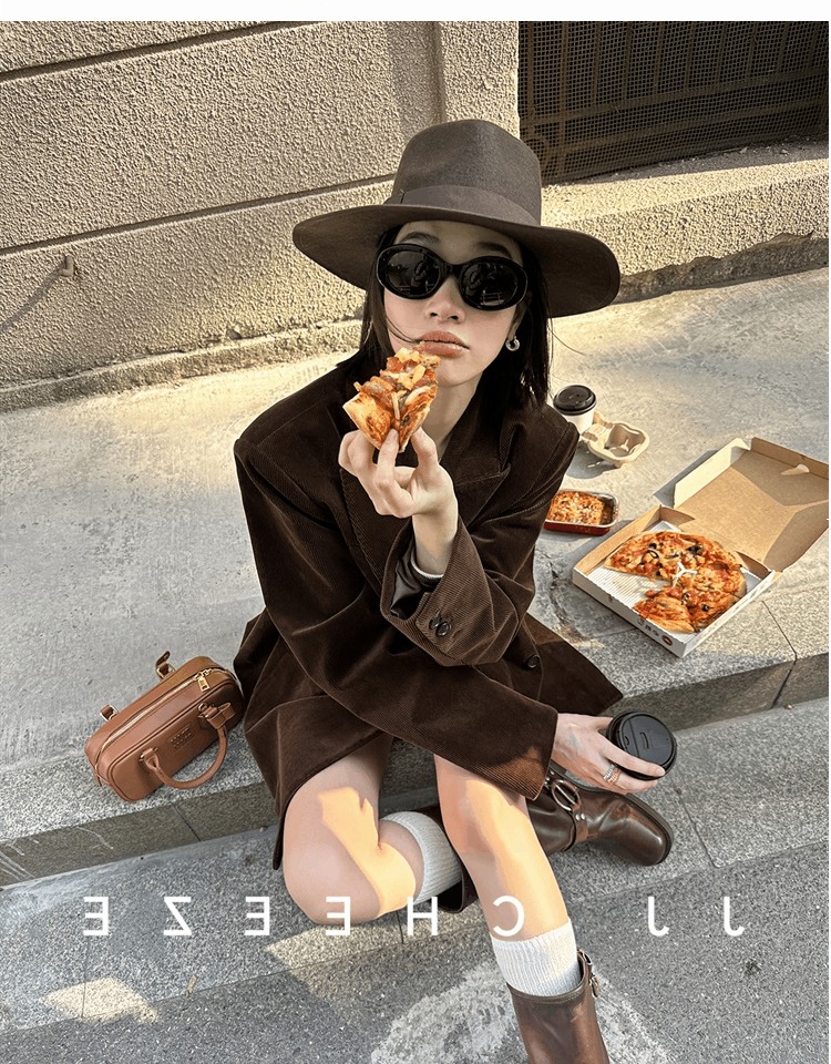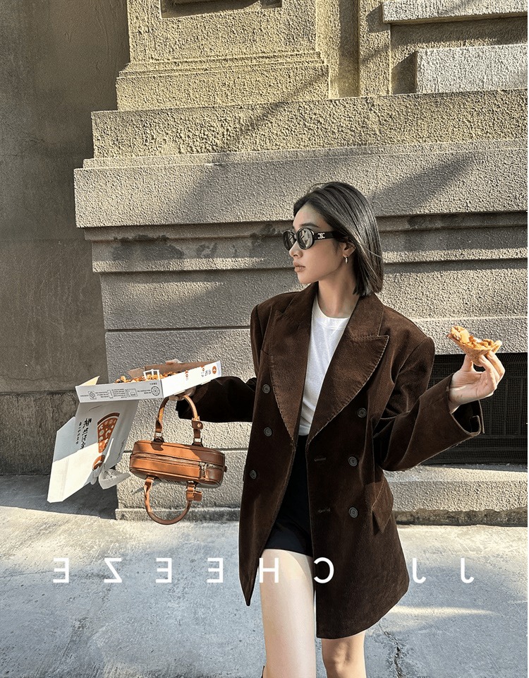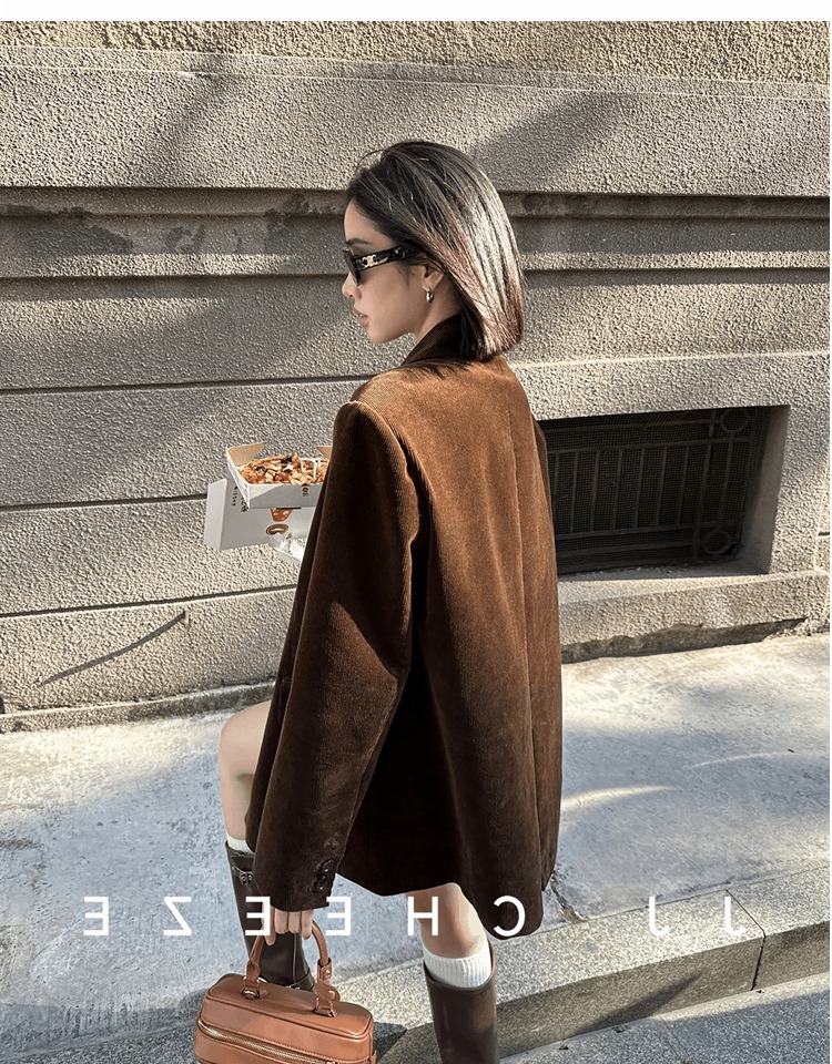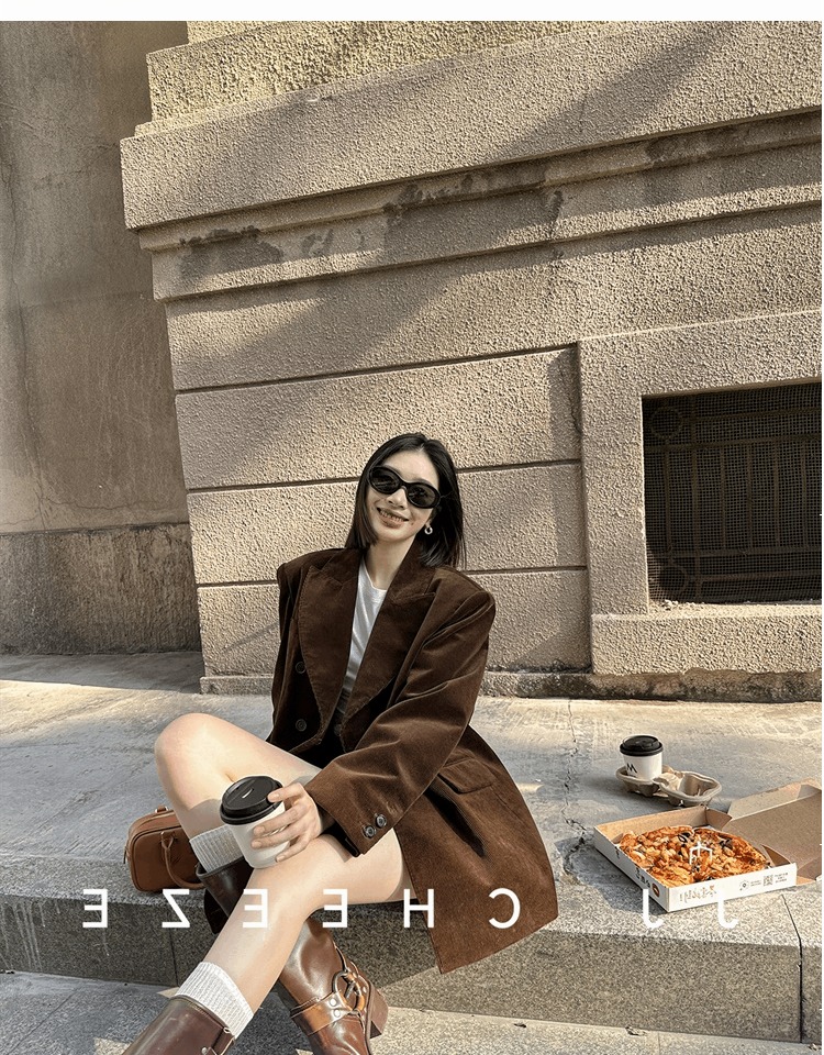 燈芯絨西裝外套女春秋高級感穿搭氣質休閒修身復古西服