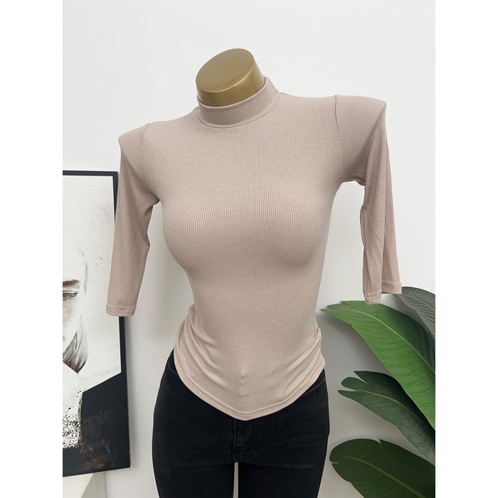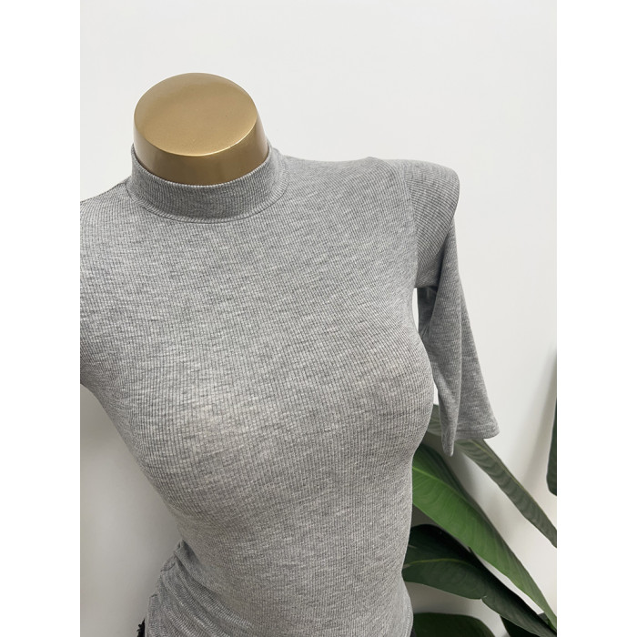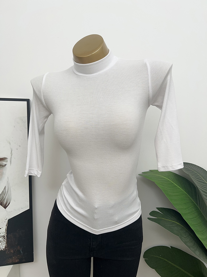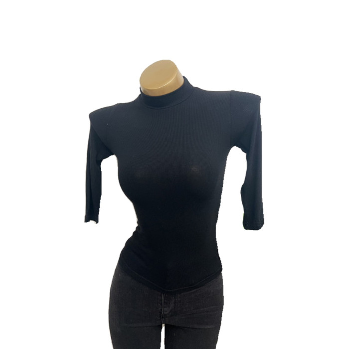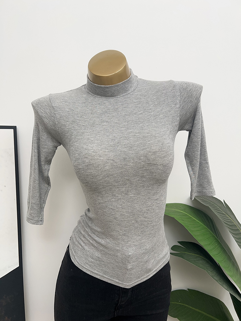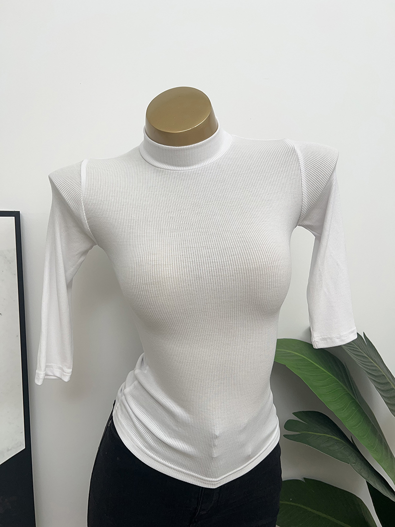 又薄又好穿~性感微透顯身材半高領緊身五分袖T恤上衣內搭打底夏女