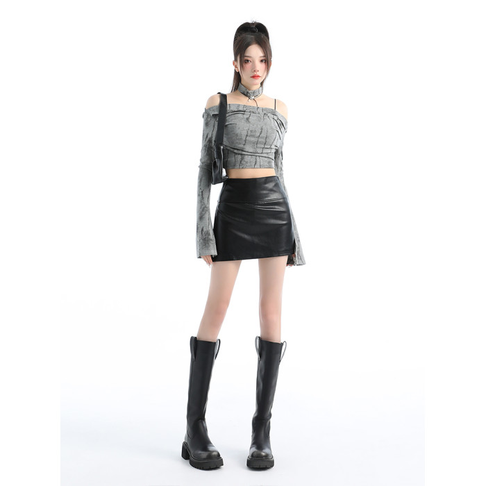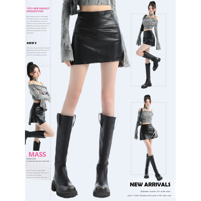 MASS黑色開叉小皮裙半身裙女秋冬2025新款pu皮短裙子高腰包臀裙褲