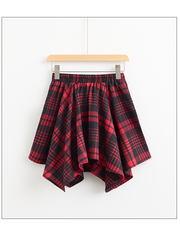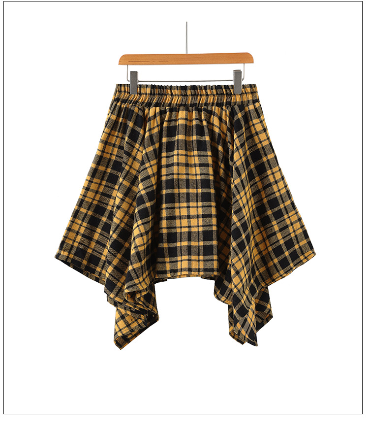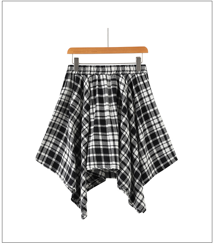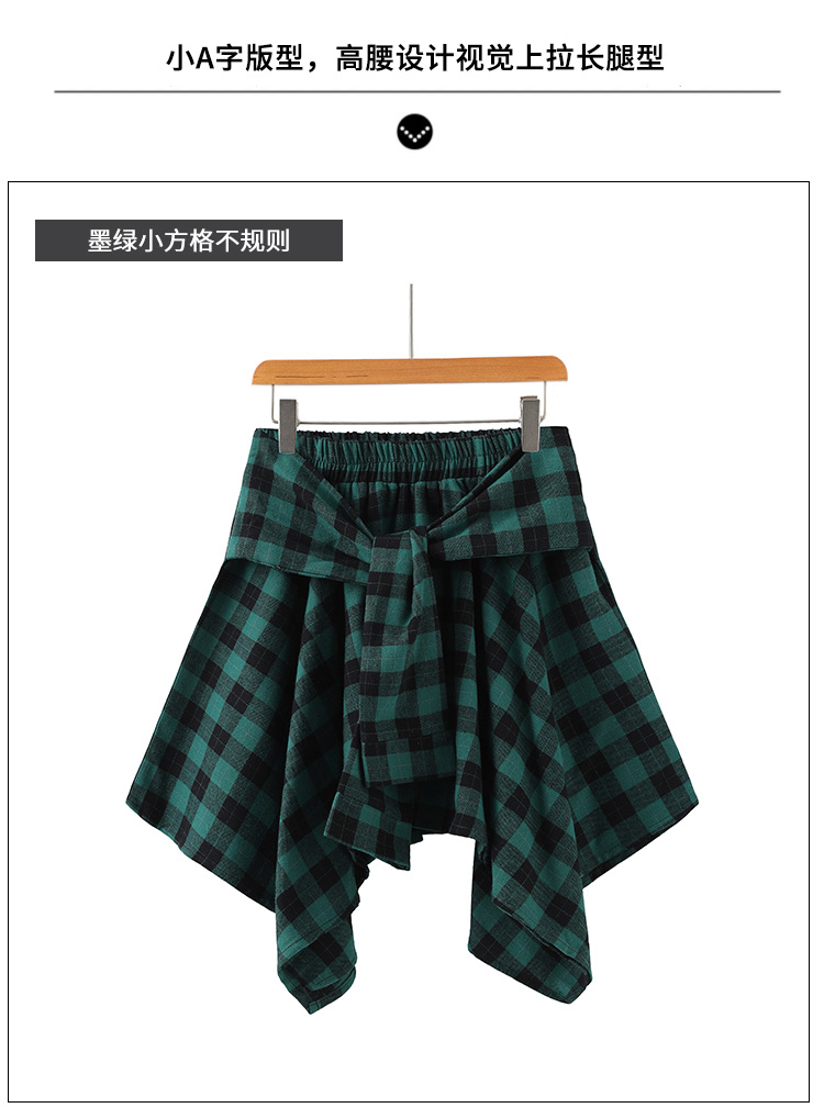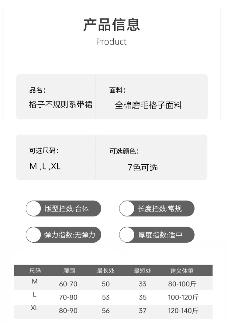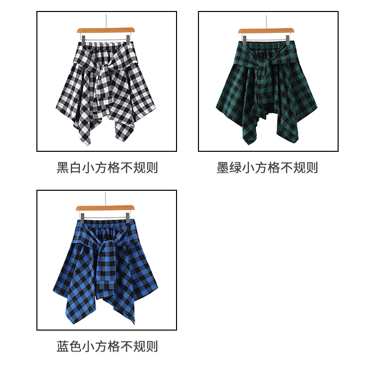 全棉格子半身裙不規則舞蹈松緊裙運動遮跨屁簾系帶街舞打底神器