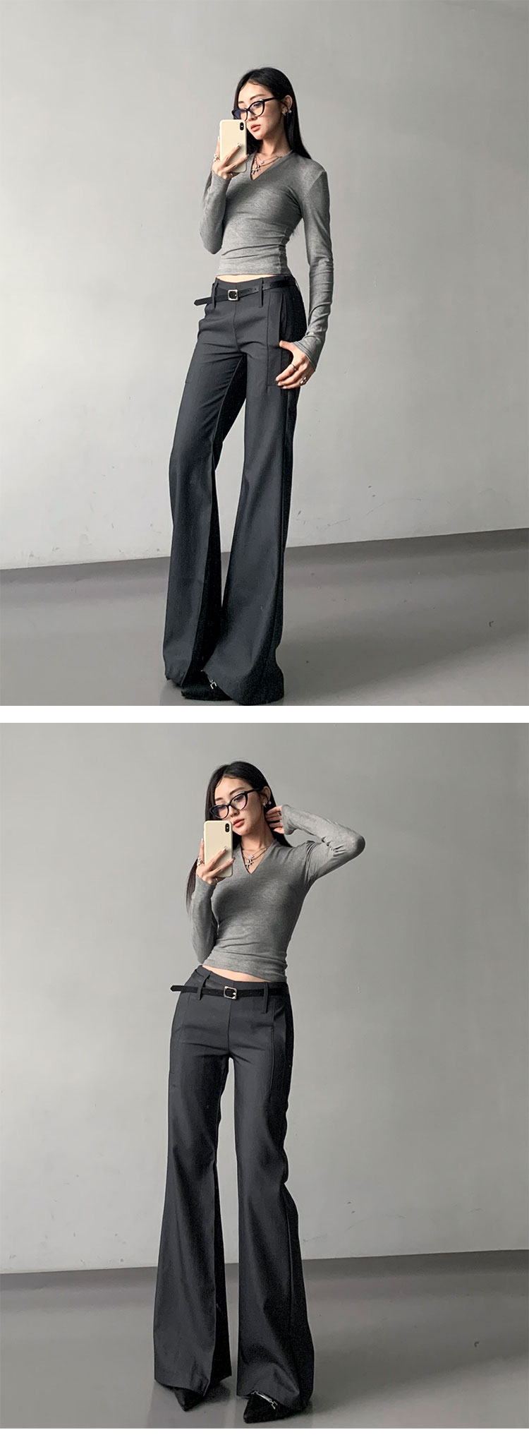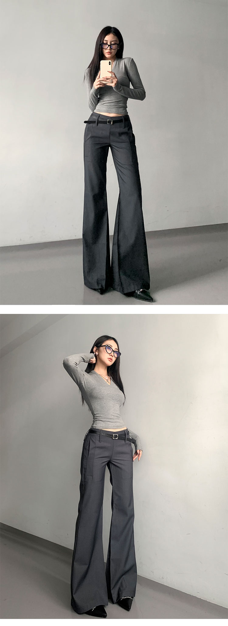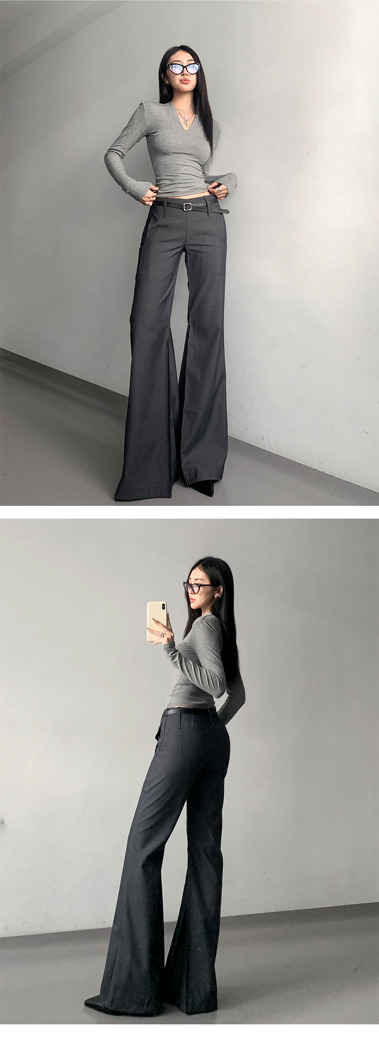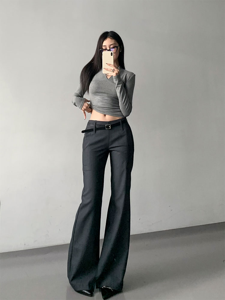 灰色西裝濶腿褲女高街垂感高級感寬松顯瘦直筒褲春秋高個微喇叭褲