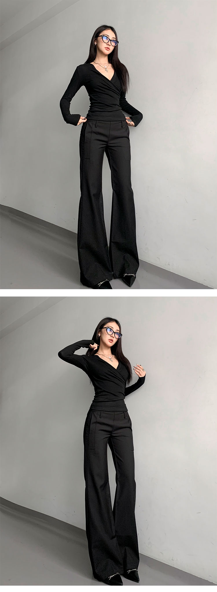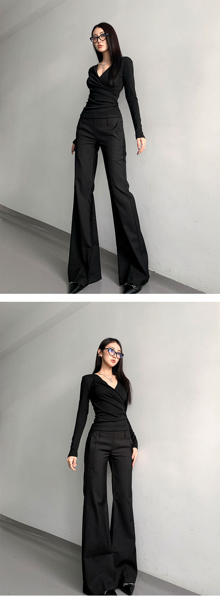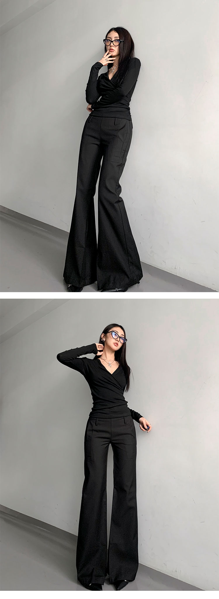 灰色西裝濶腿褲女高街垂感高級感寬松顯瘦直筒褲春秋高個微喇叭褲