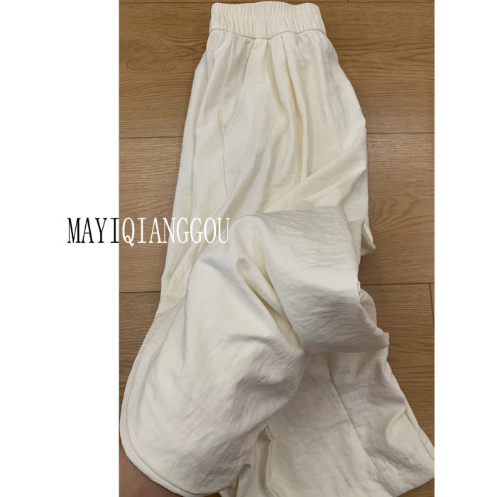 175高個子加長白色冰絲山本褲女夏高腰慵懶肌理感拖地濶腿空氣褲