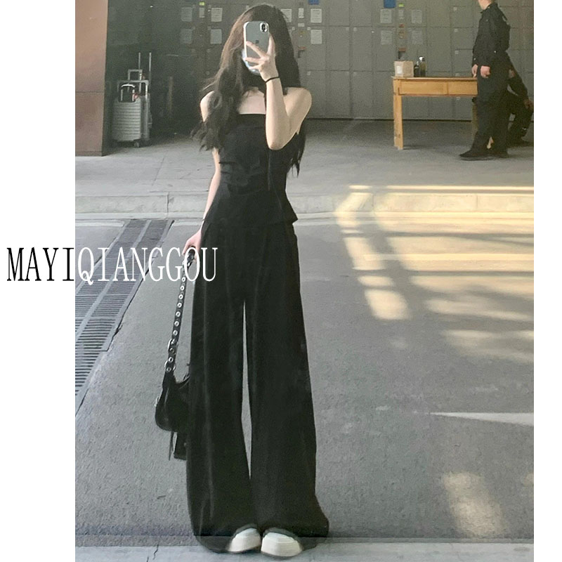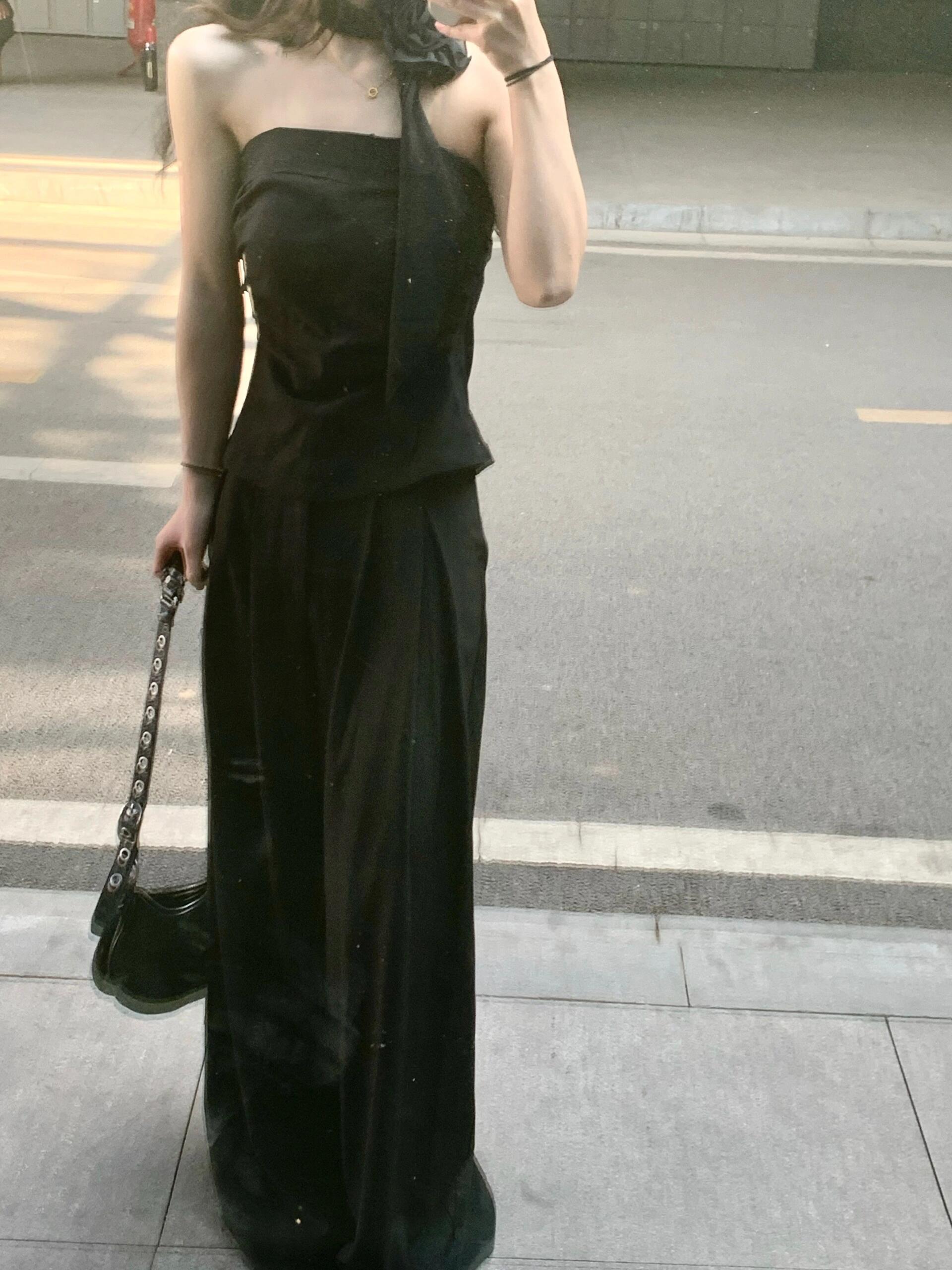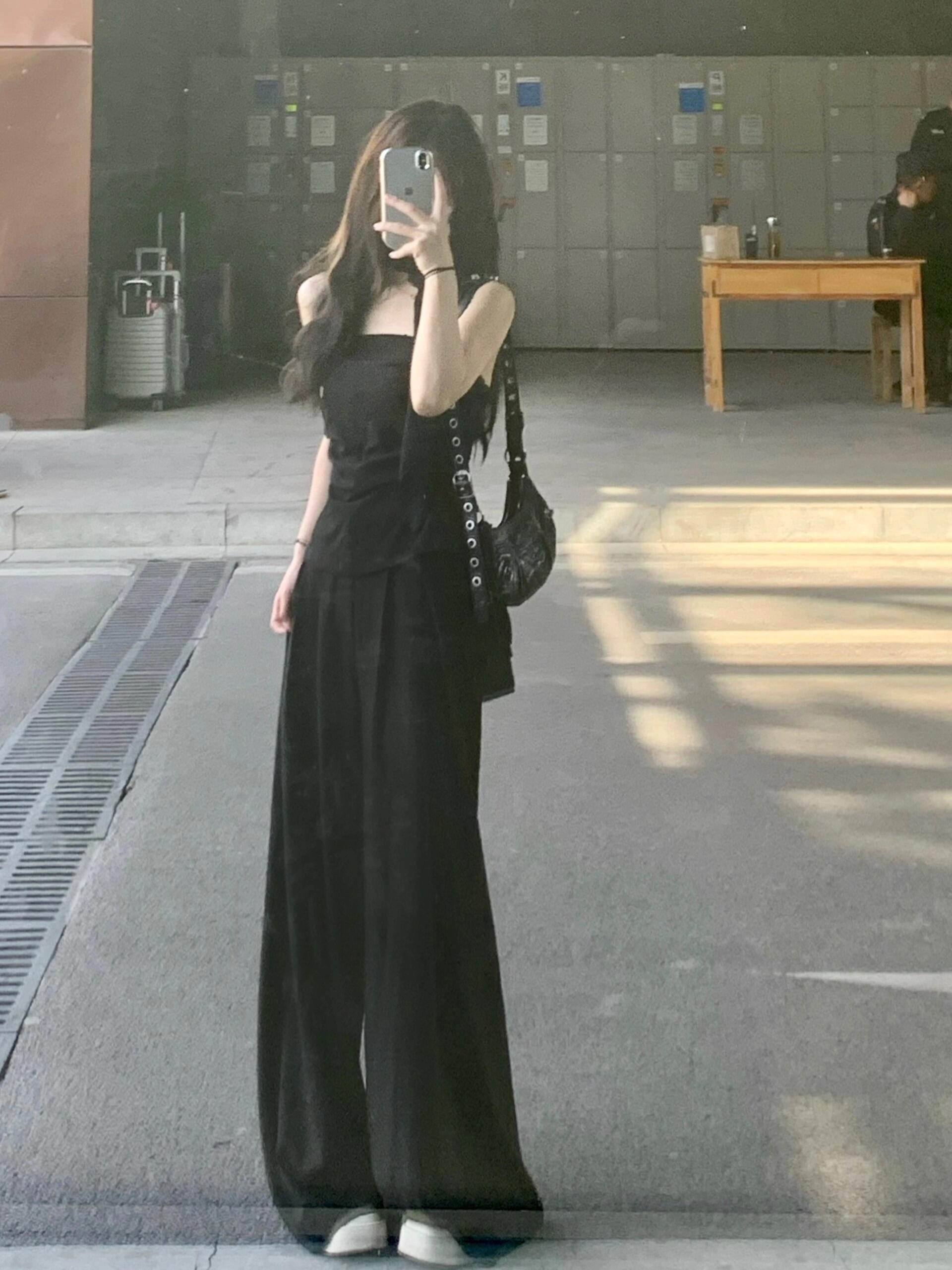 175高個子加長180原創黑色西裝褲女夏季高腰垂感拖地褲休閒濶腿褲