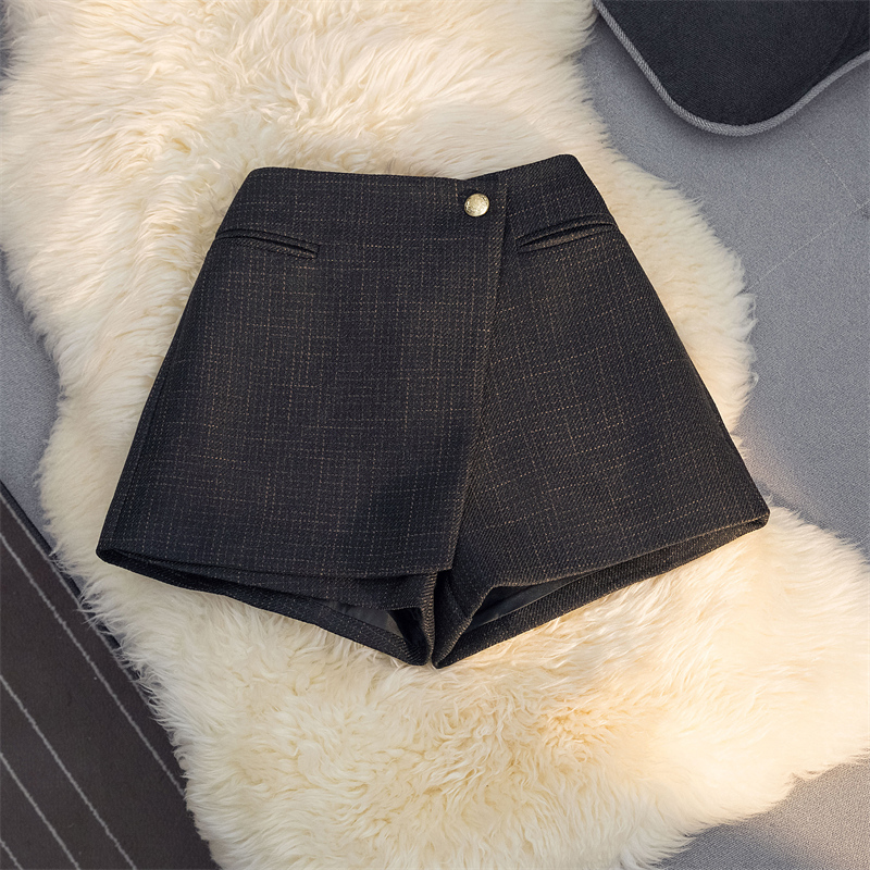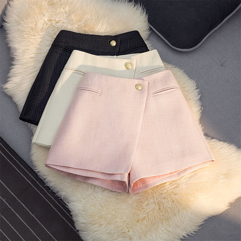 小香風短褲女2025年秋冬新款高腰顯瘦外穿a字休閒褲裙毛呢濶腿褲