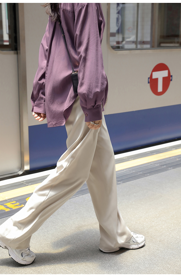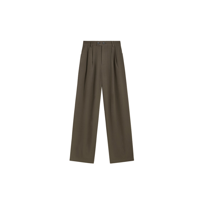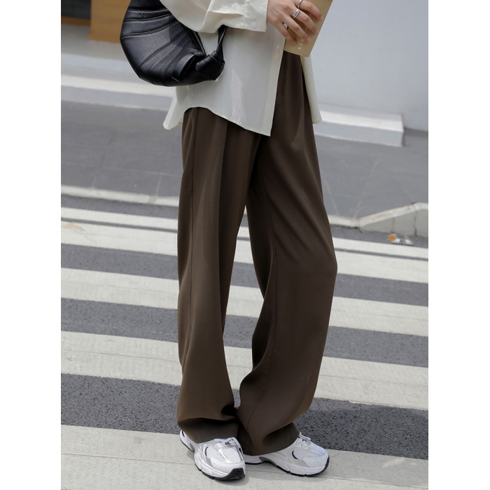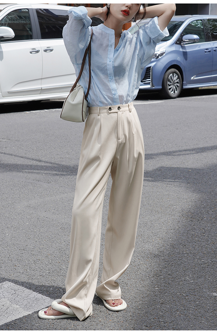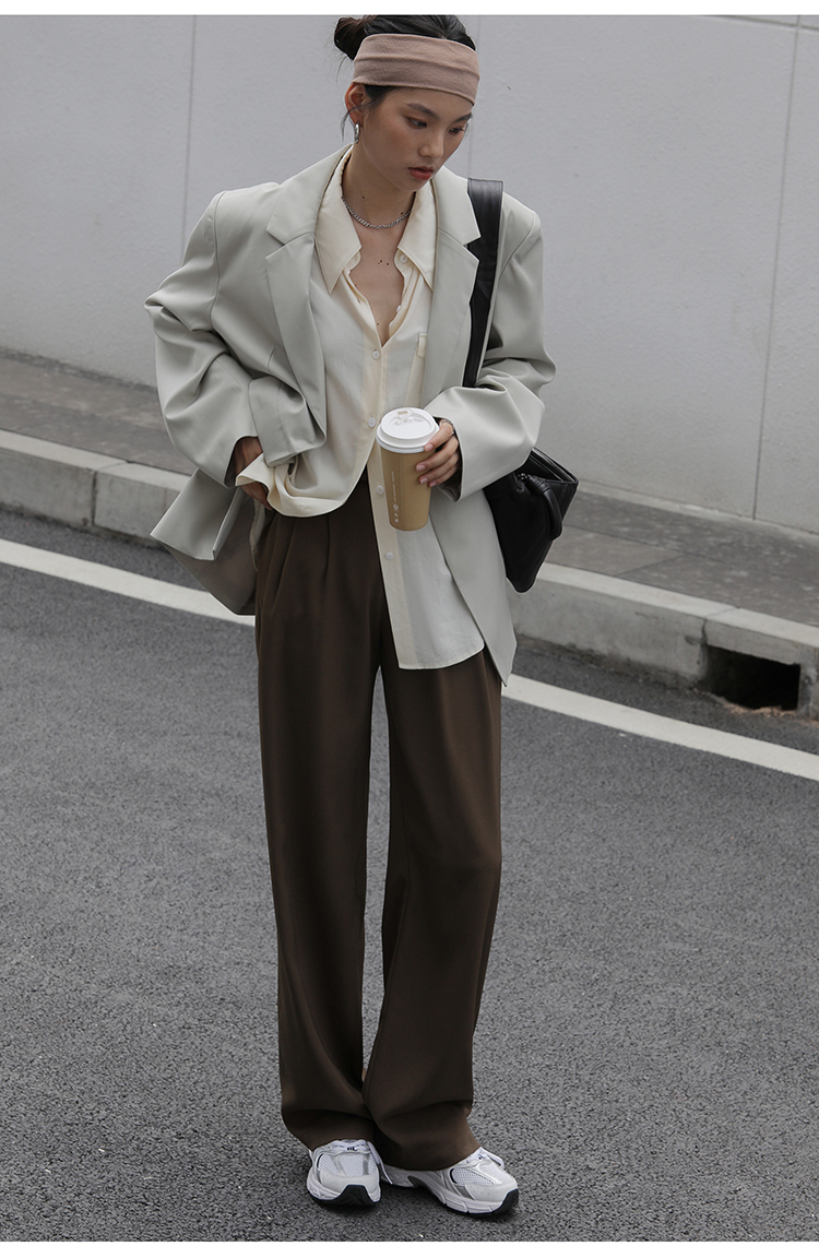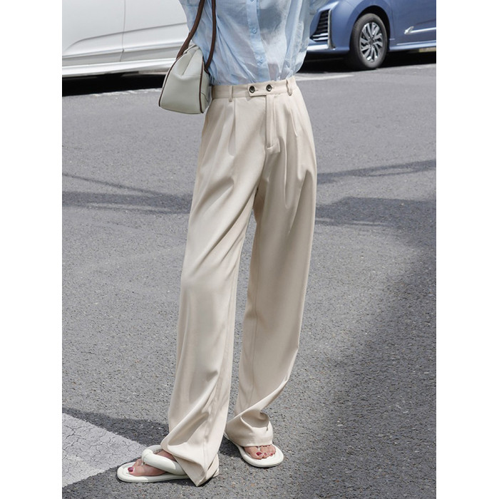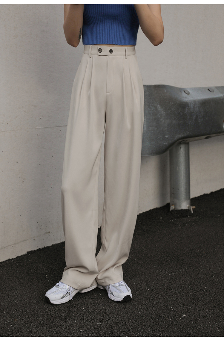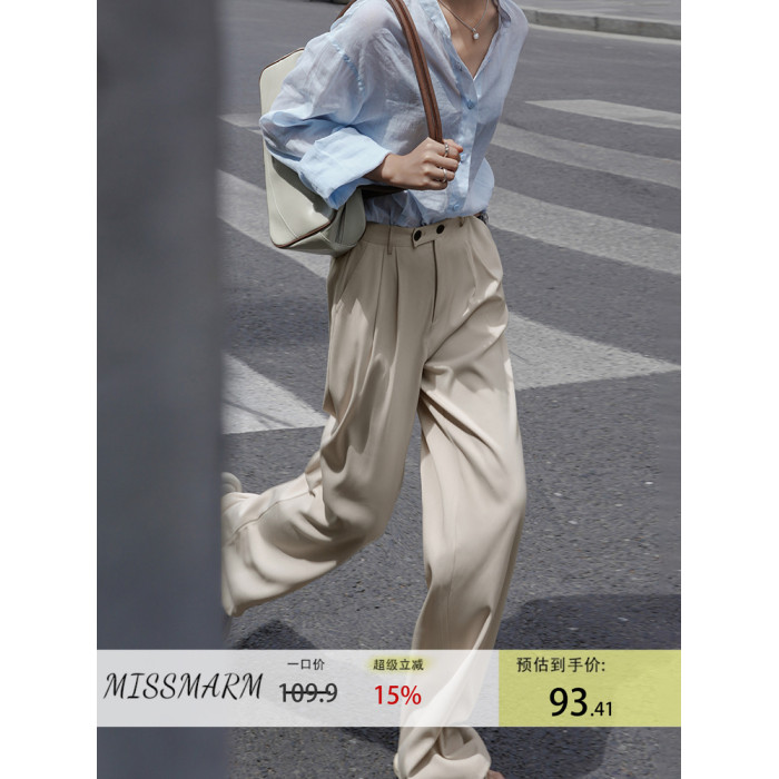 MISSMARM 杏白西裝褲高級感垂感休閒褲女秋季高腰直筒顯瘦濶腿褲