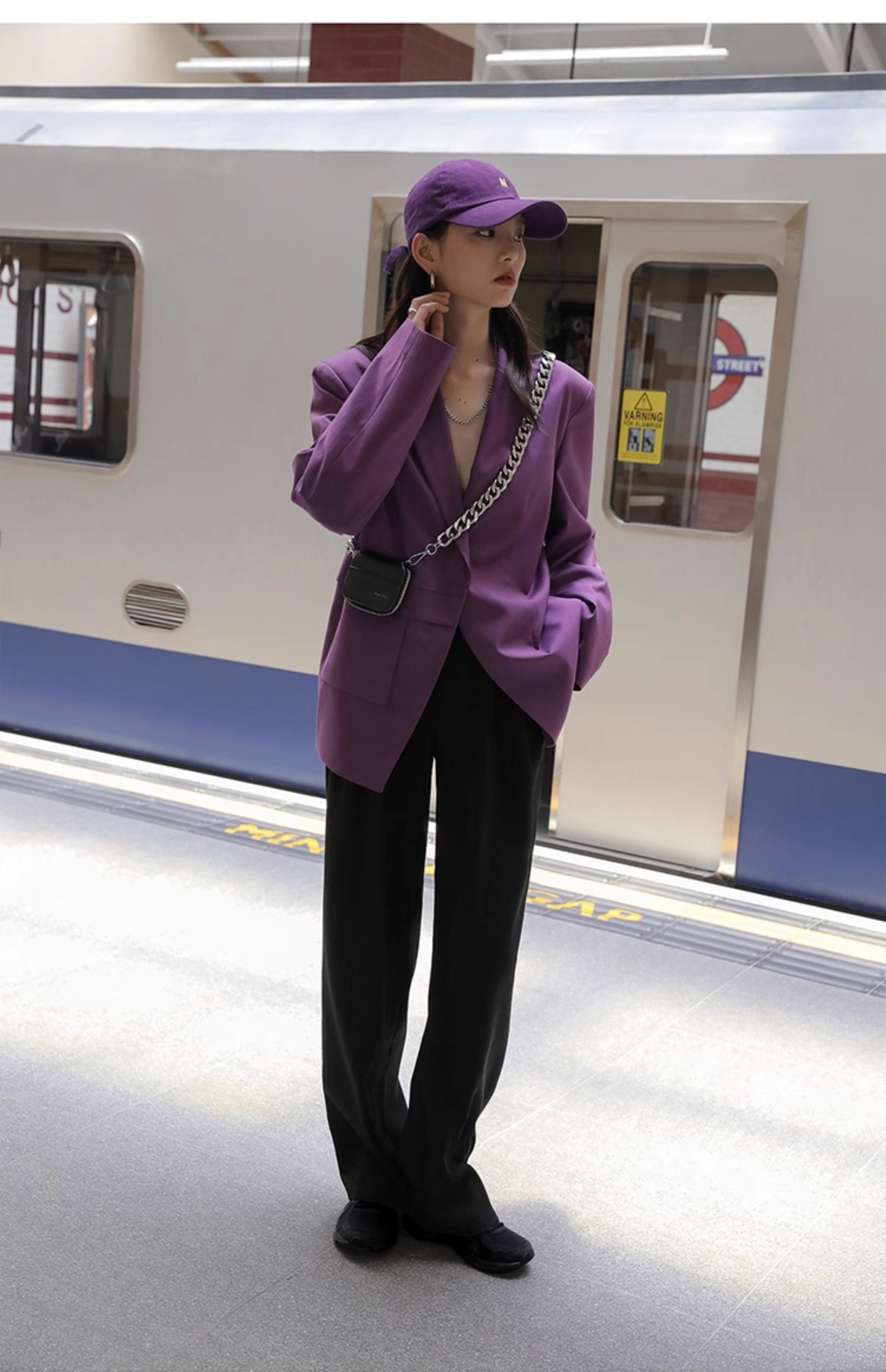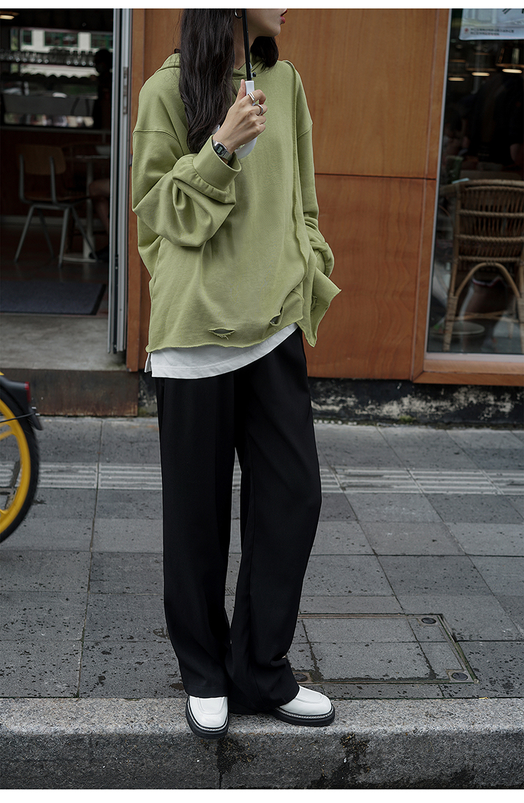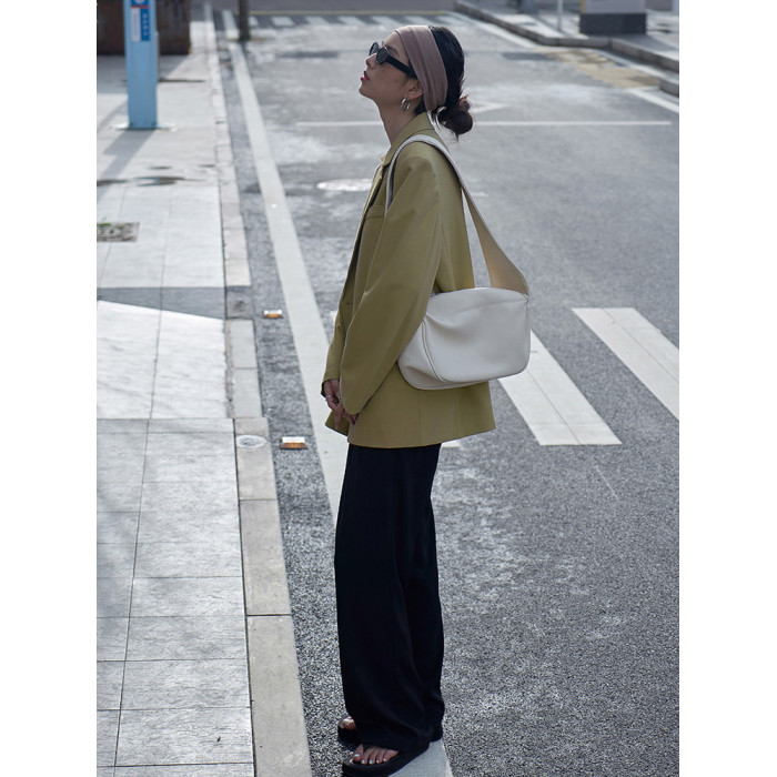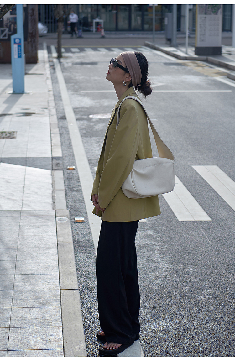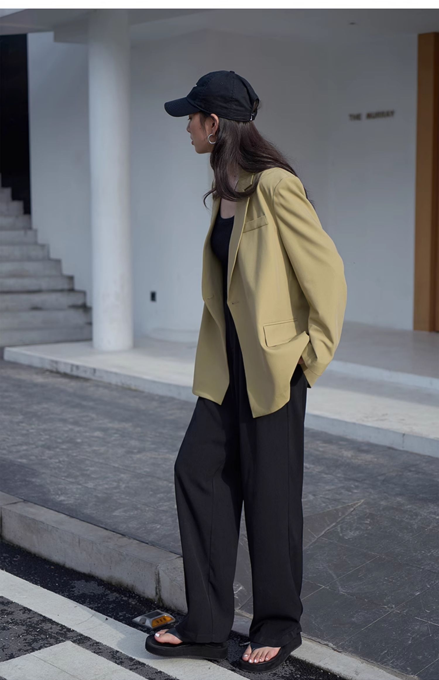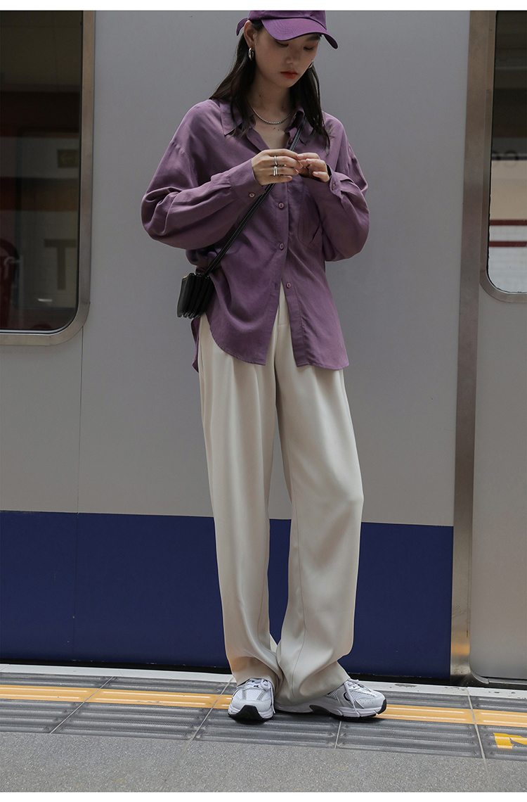 MISSMARM 杏白西裝褲高級感垂感休閒褲女秋季高腰直筒顯瘦濶腿褲
