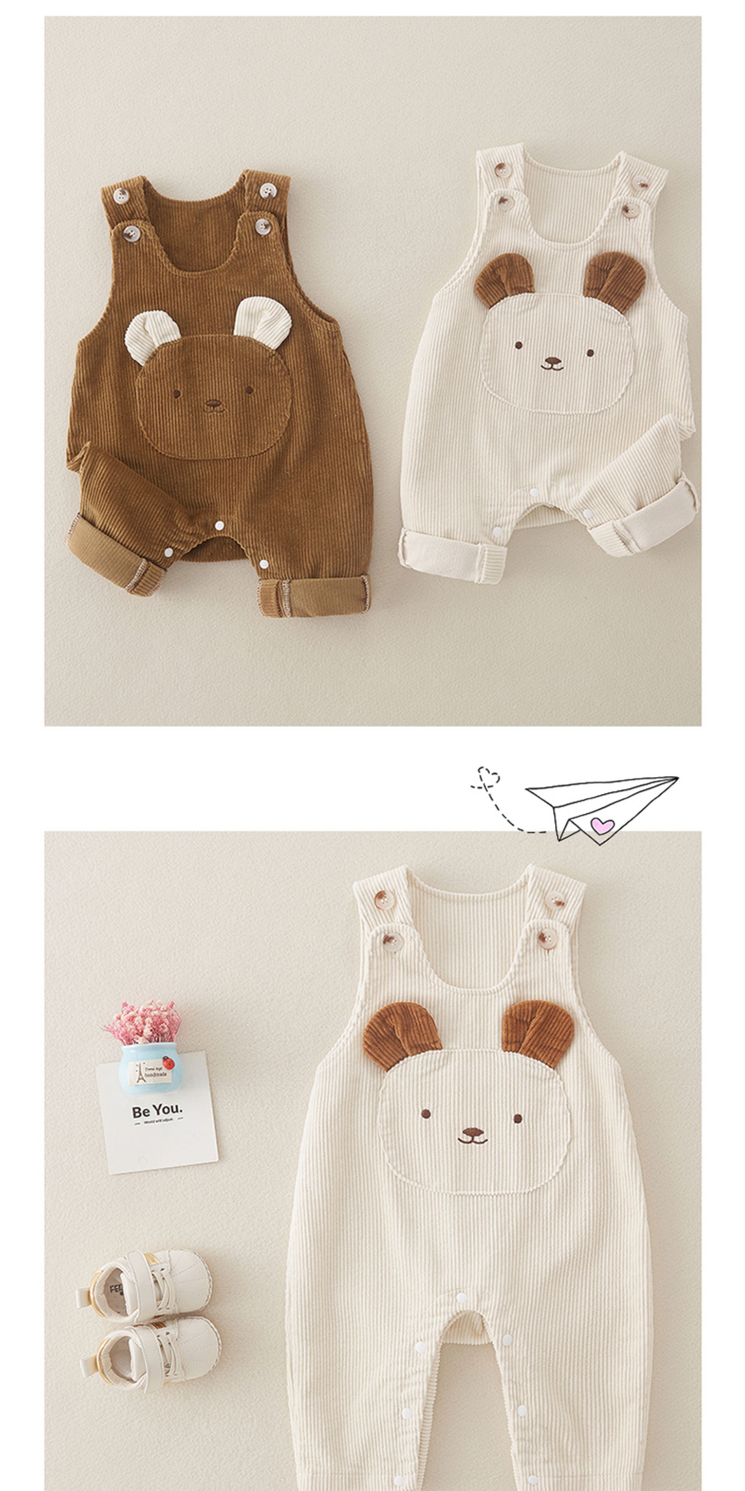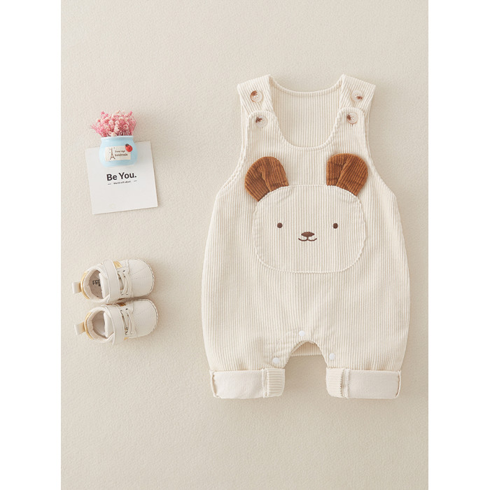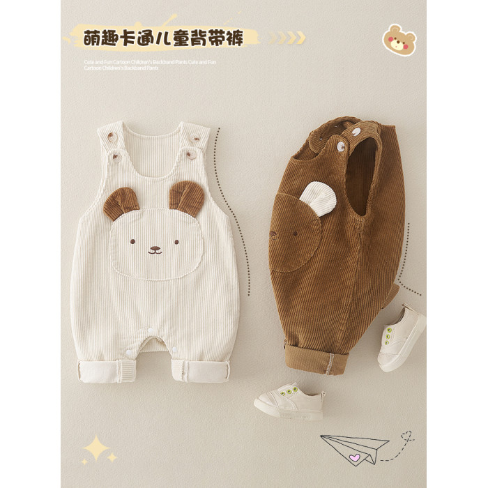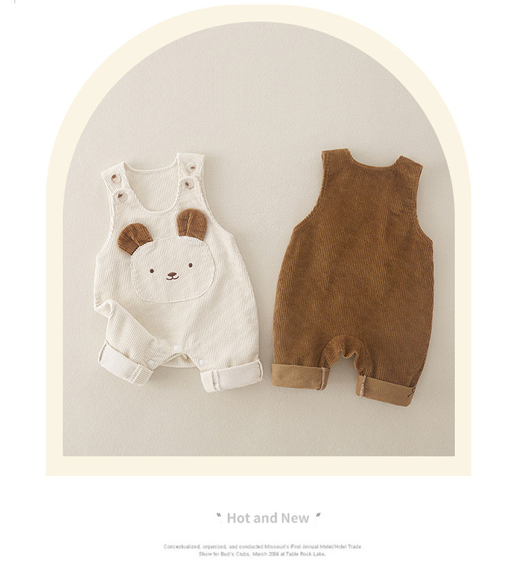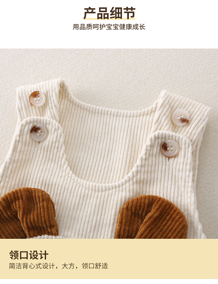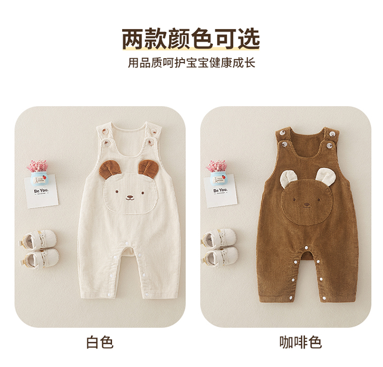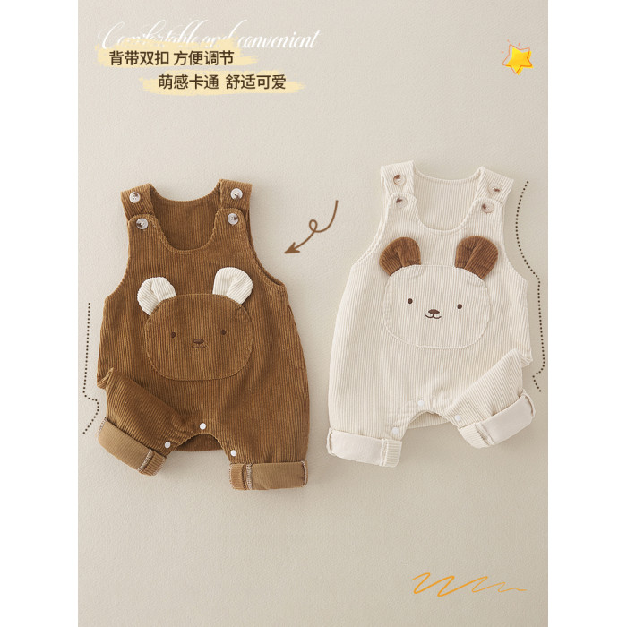 嬰兒春款燈芯絨背帶褲寶寶春季洋氣卡通連體褲新生兒滿月外出服萌