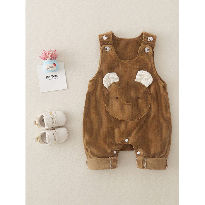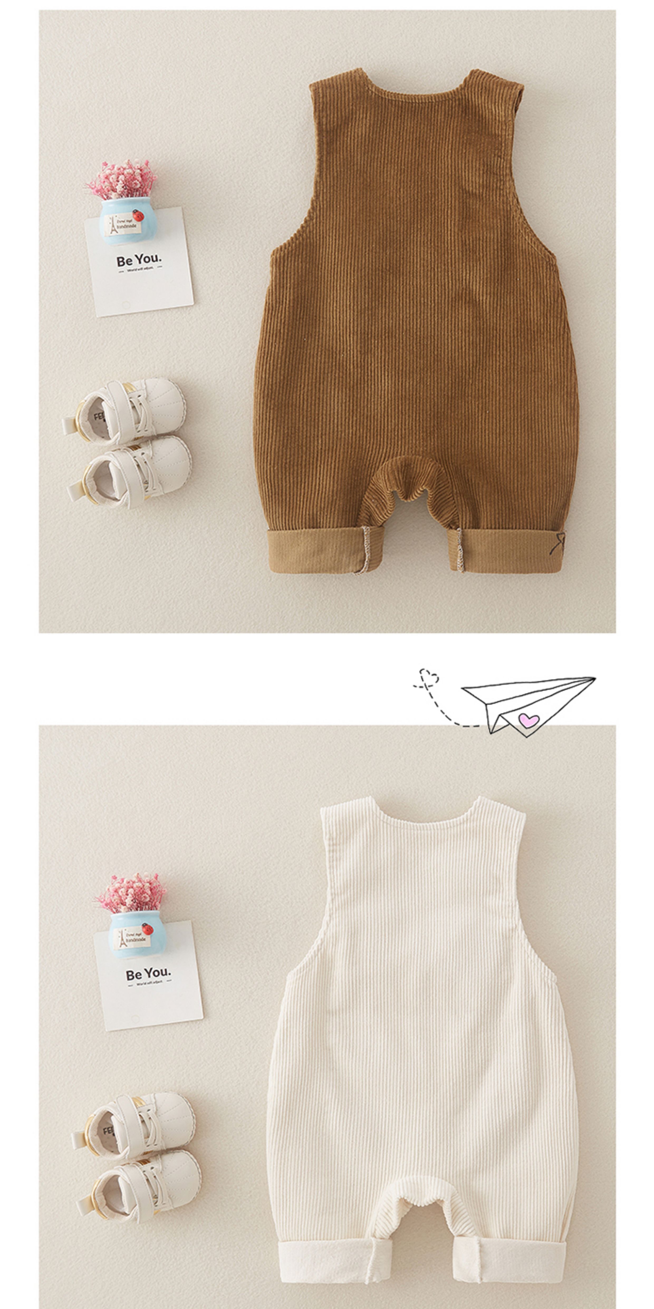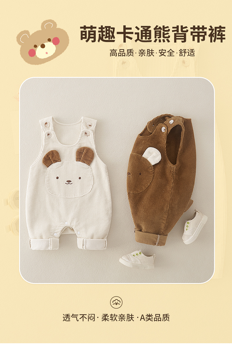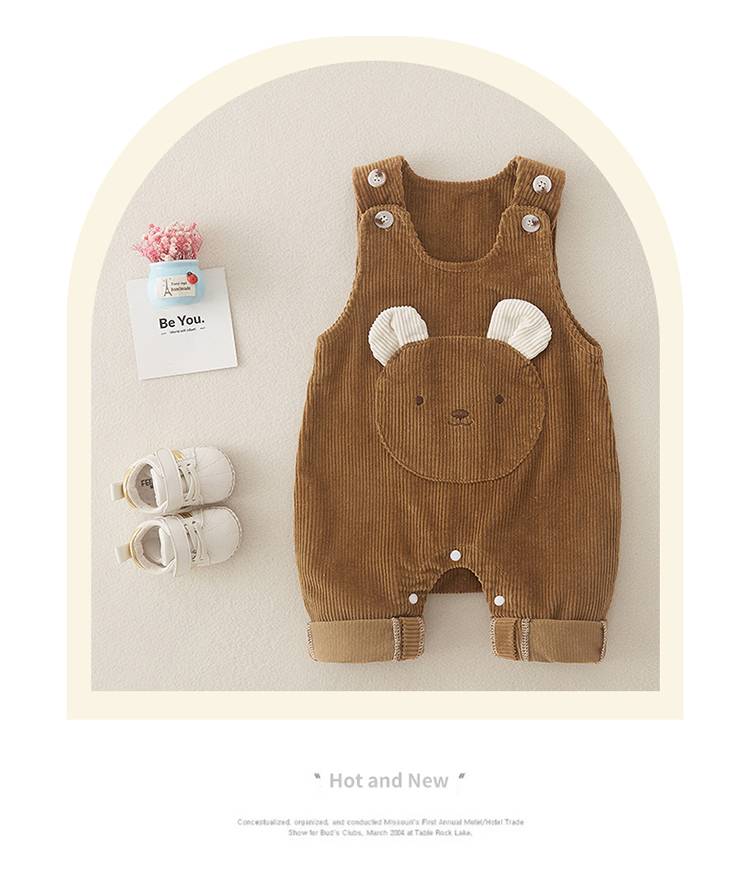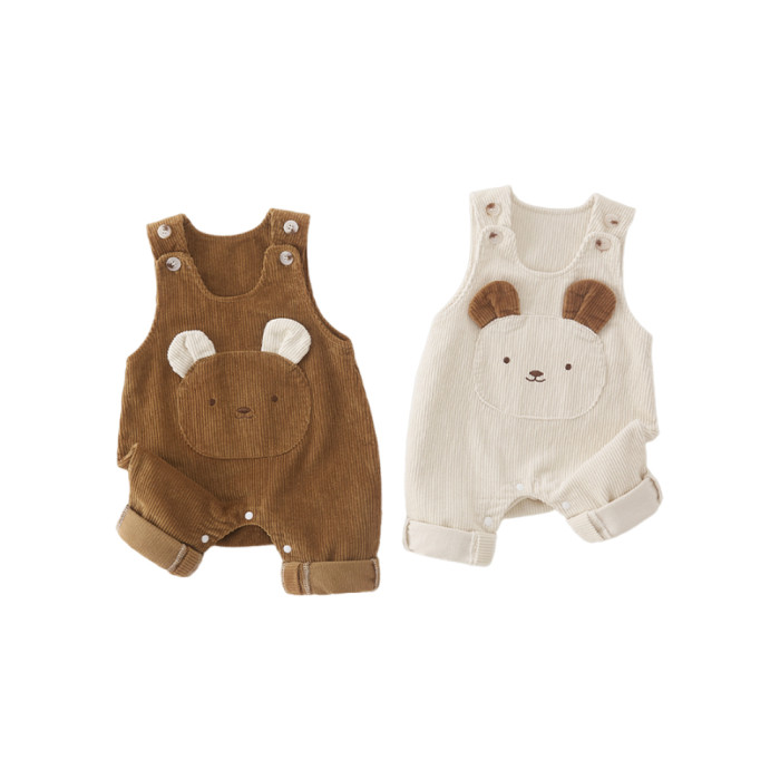 嬰兒春款燈芯絨背帶褲寶寶春季洋氣卡通連體褲新生兒滿月外出服萌