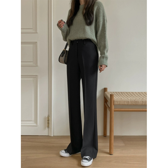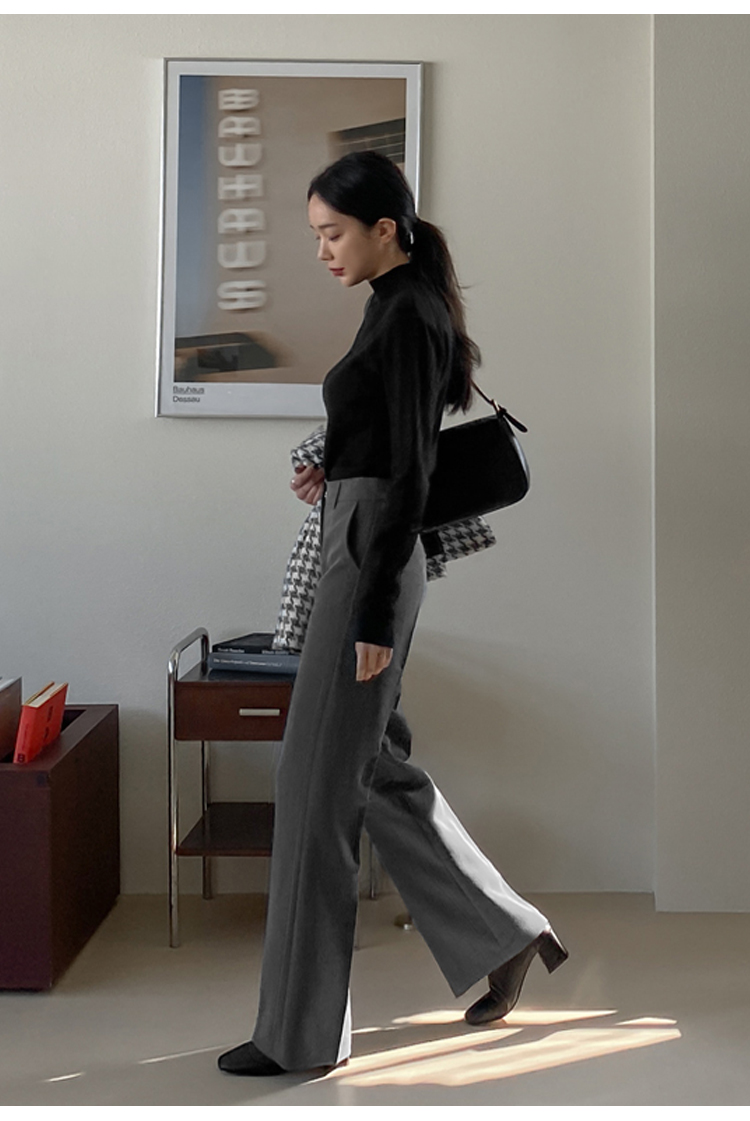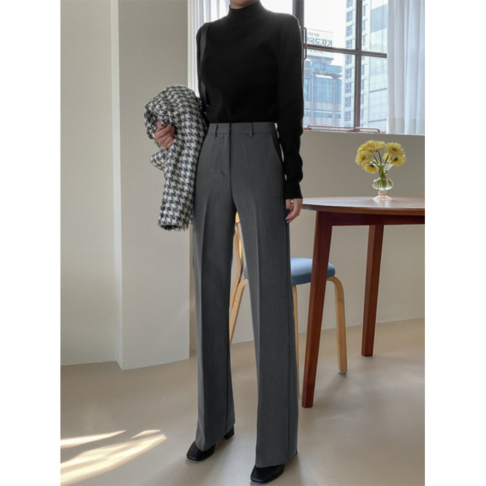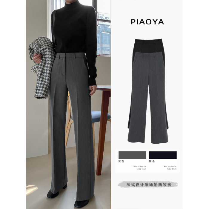 窄板濶腿褲女2025新款爆款秋季灰色西裝褲高級感垂感職業直筒褲子
