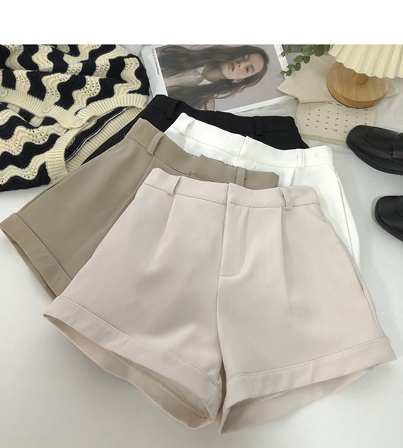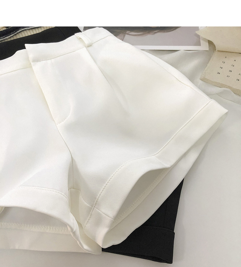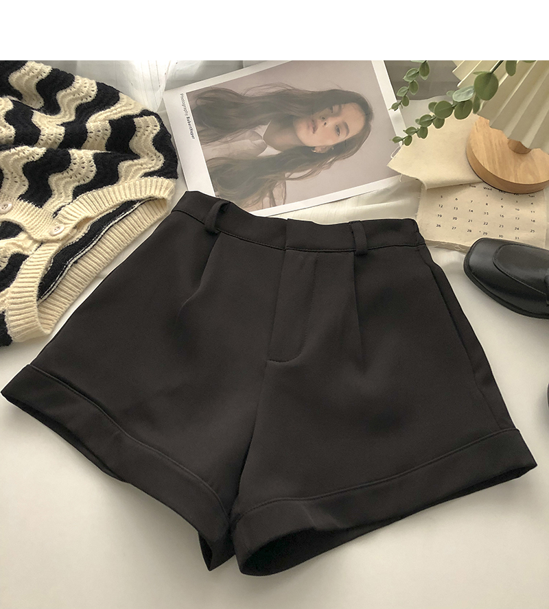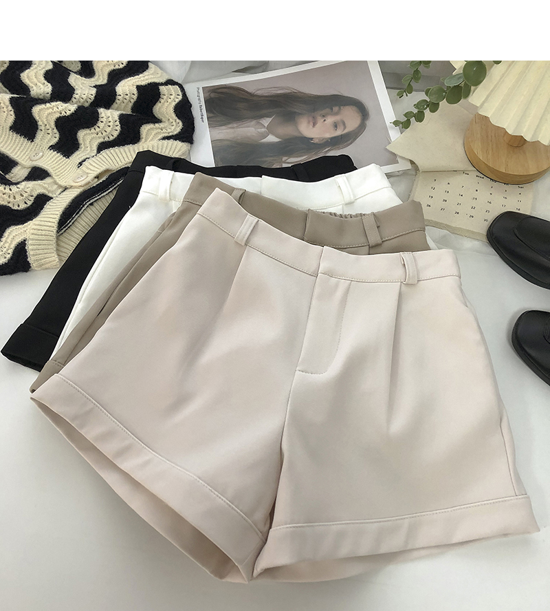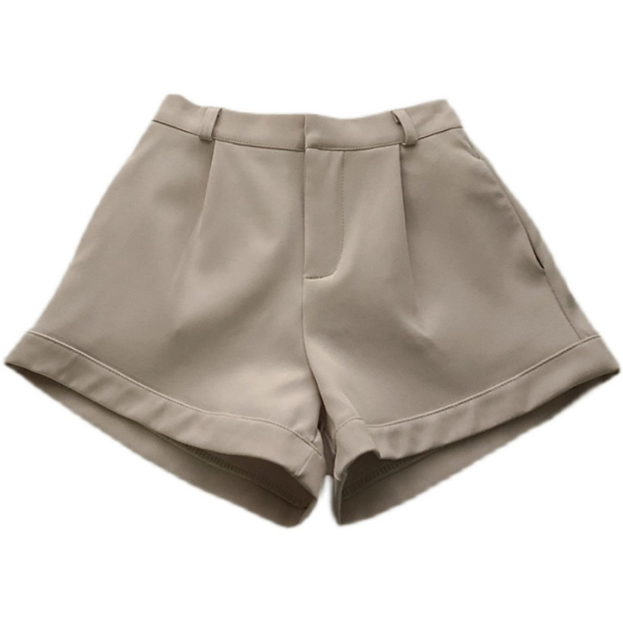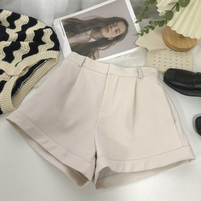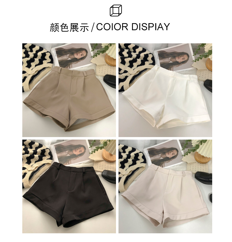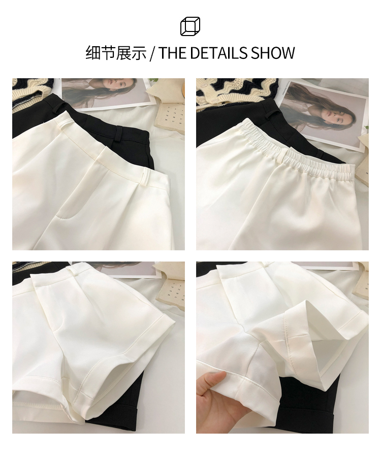 卷邊高腰彈力西裝休閒褲女2024年春秋韓版百搭顯瘦外穿濶腿短褲潮