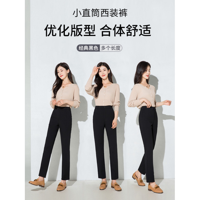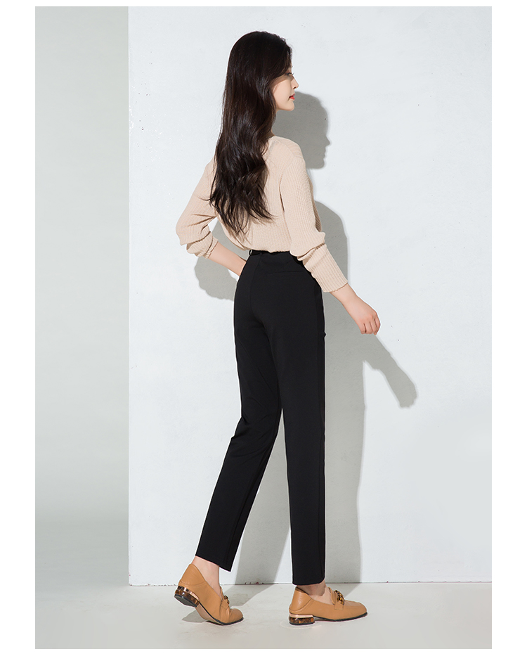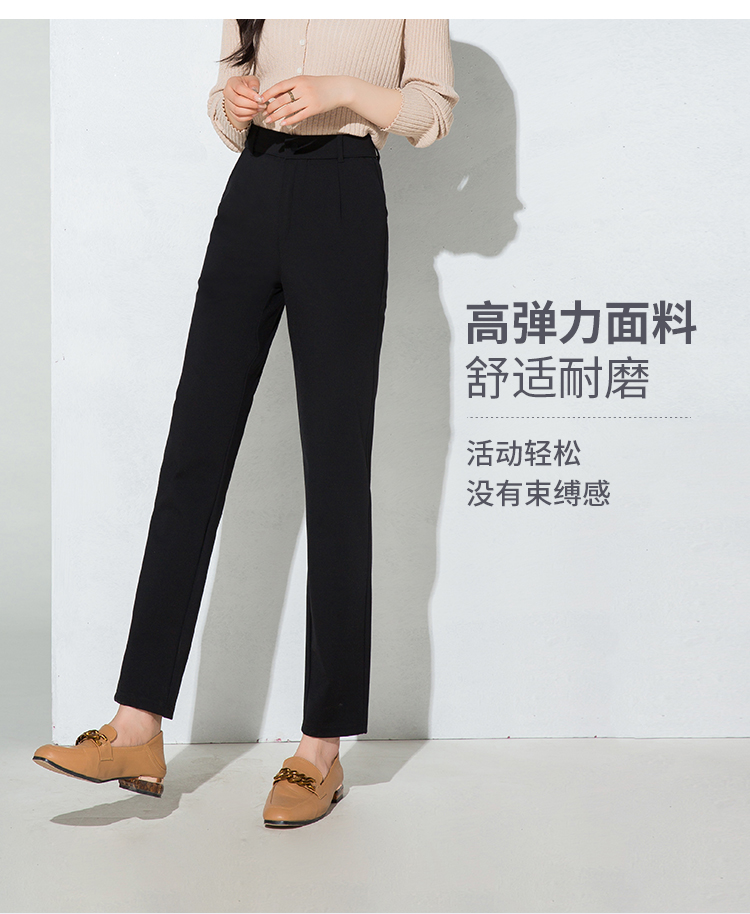 西裝褲胖mm大碼女高腰彈力顯瘦秋冬款直筒通勤休閒加長加絨菸管褲