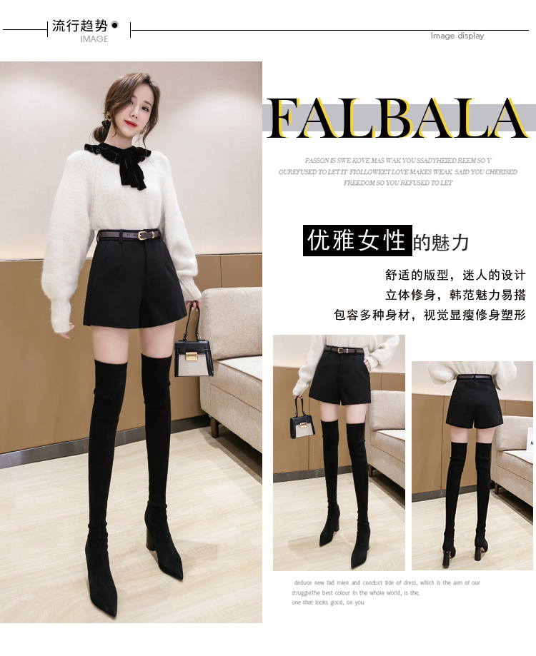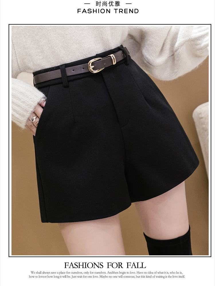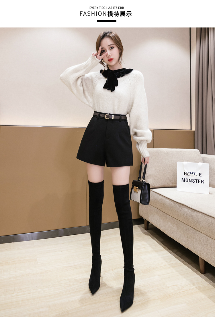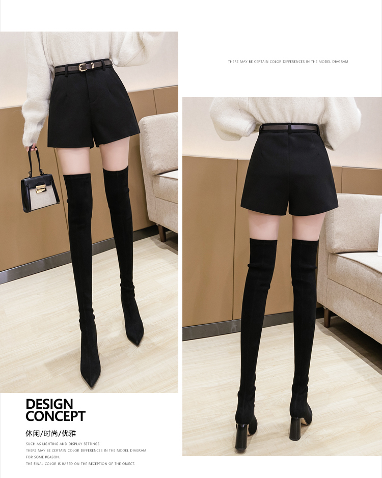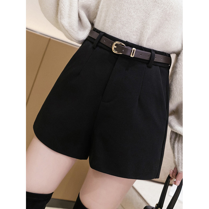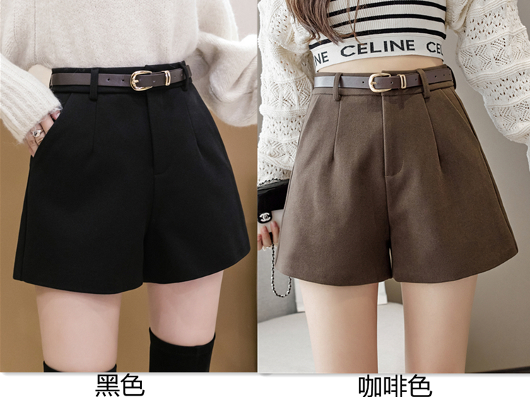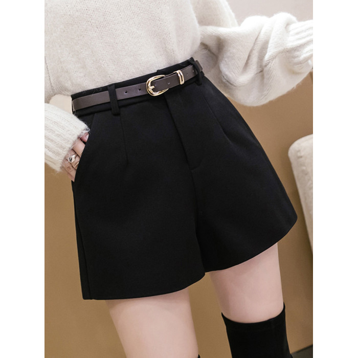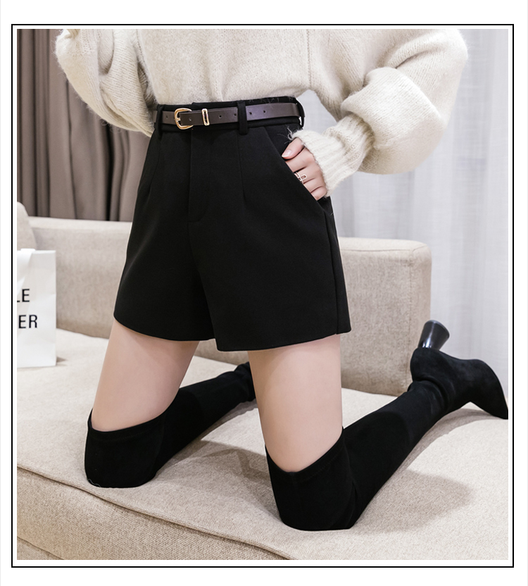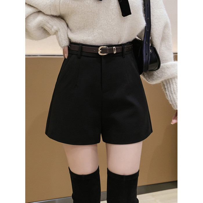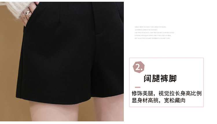 黑色毛呢西裝短褲女秋冬外穿打底靴褲時尚高腰寬松休閒a字濶腿褲