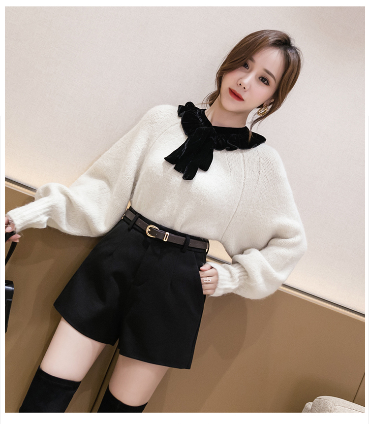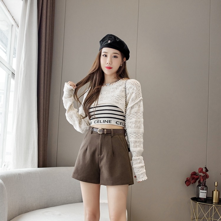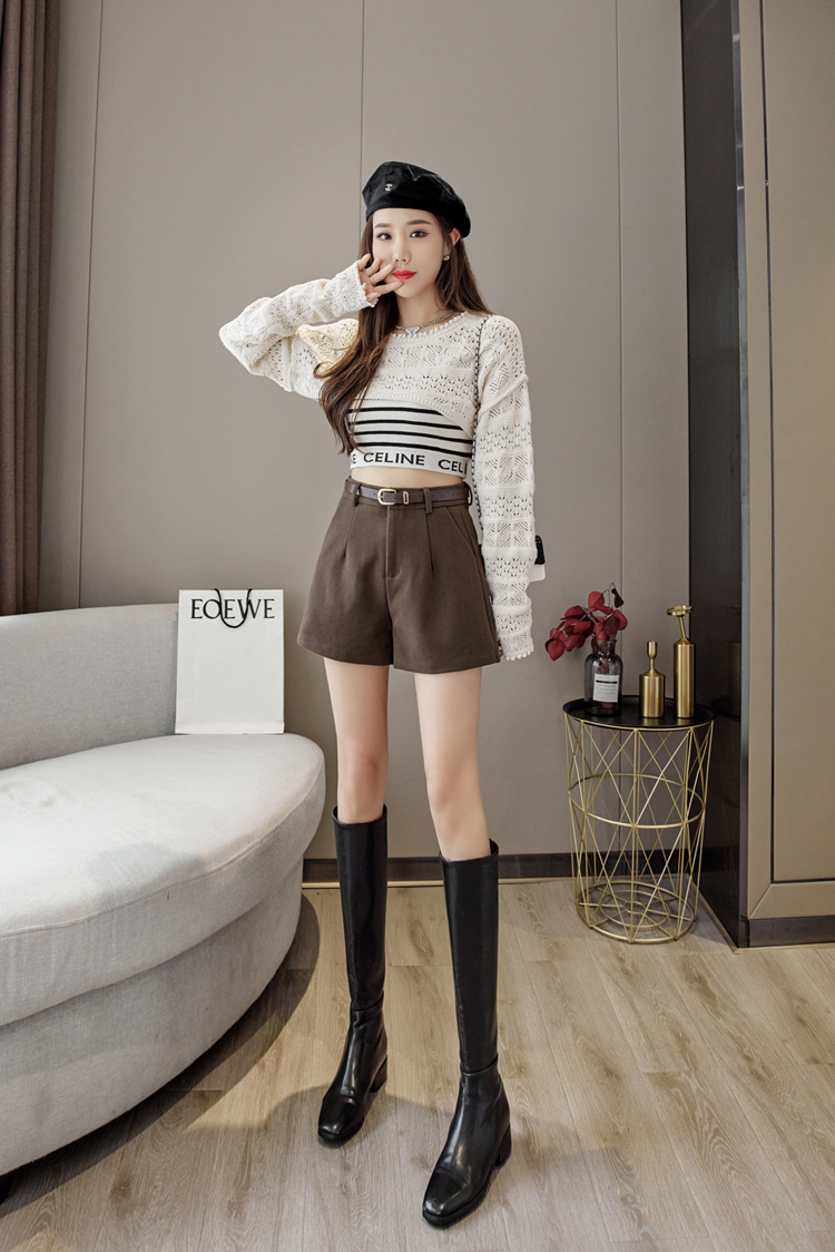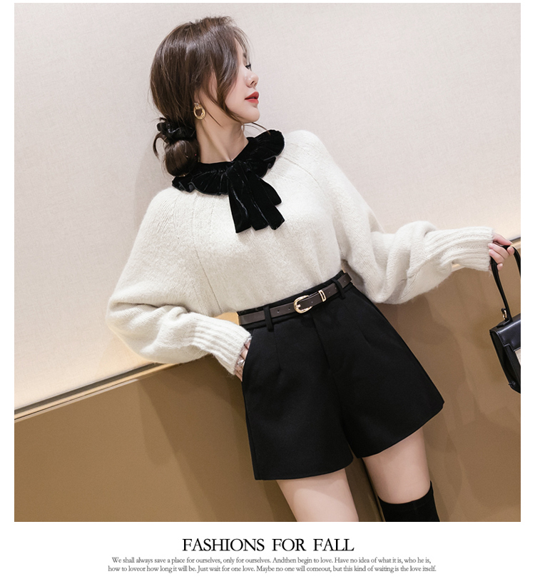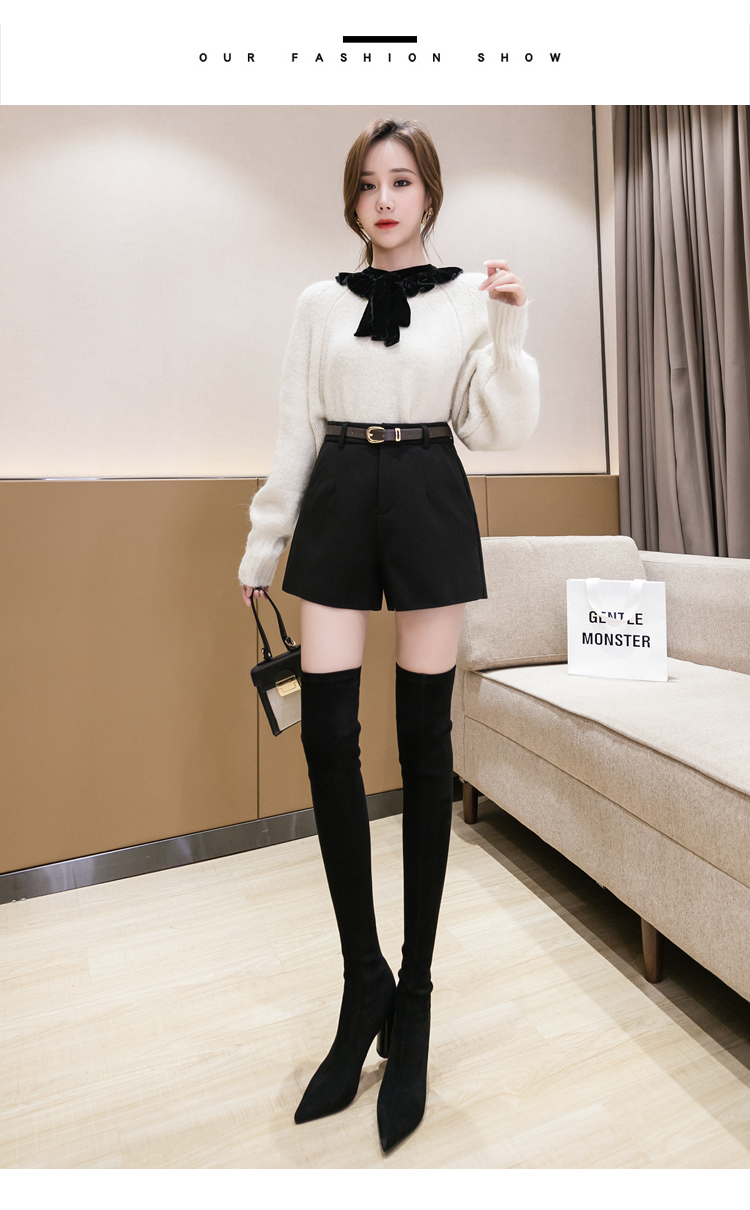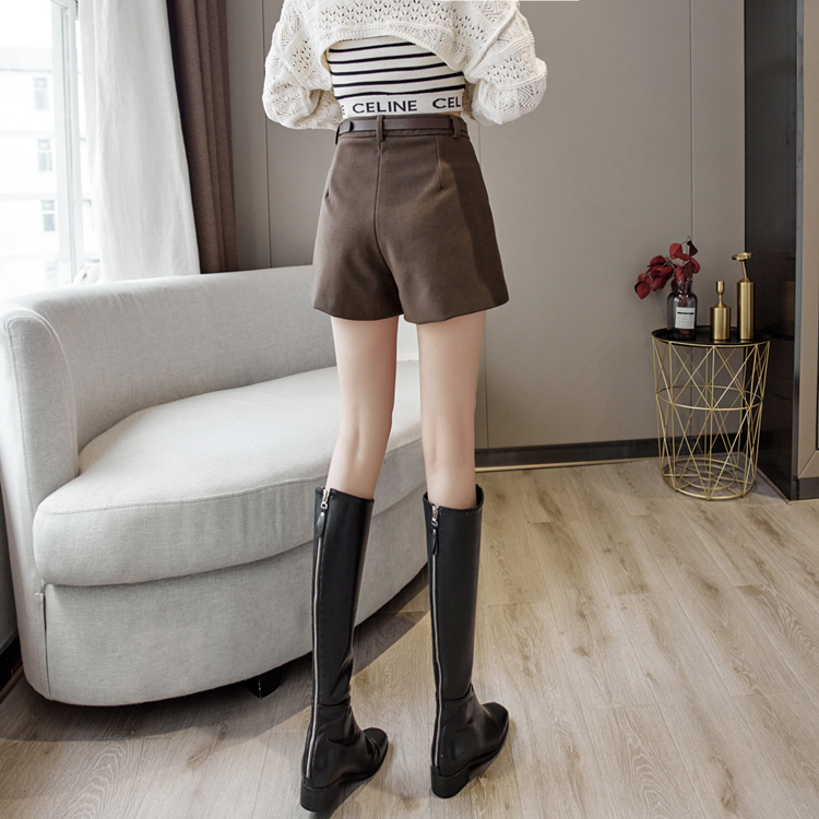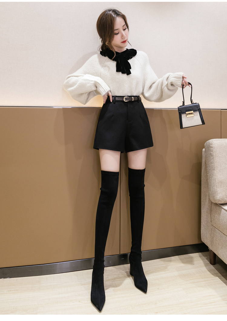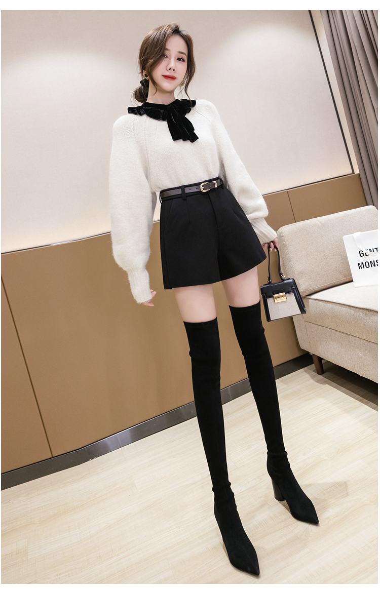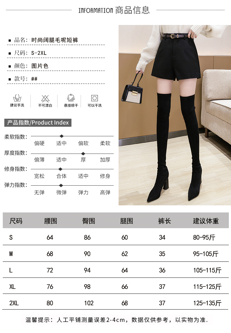 黑色毛呢西裝短褲女秋冬外穿打底靴褲時尚高腰寬松休閒a字濶腿褲