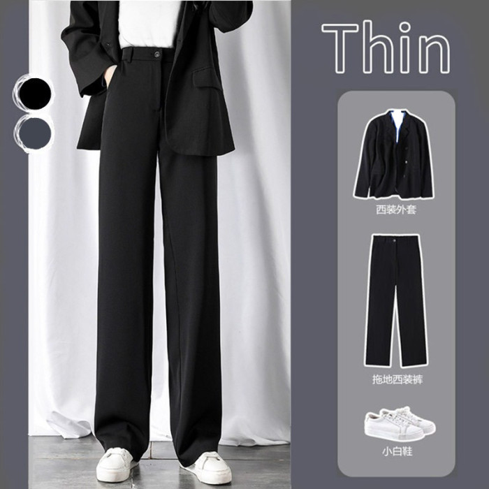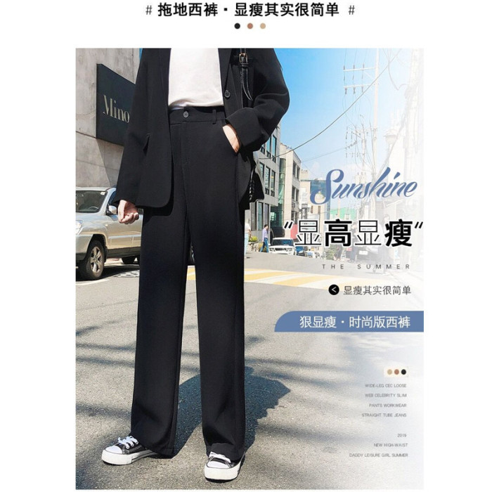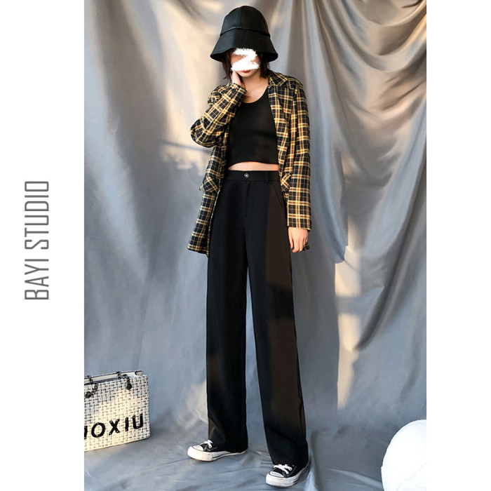 顯瘦高腰西裝褲女直筒寬松春秋新款大碼胖mm垂感休閒拖地濶腿褲子