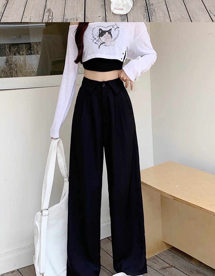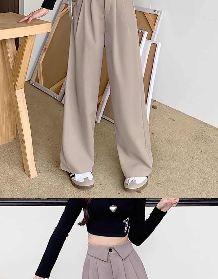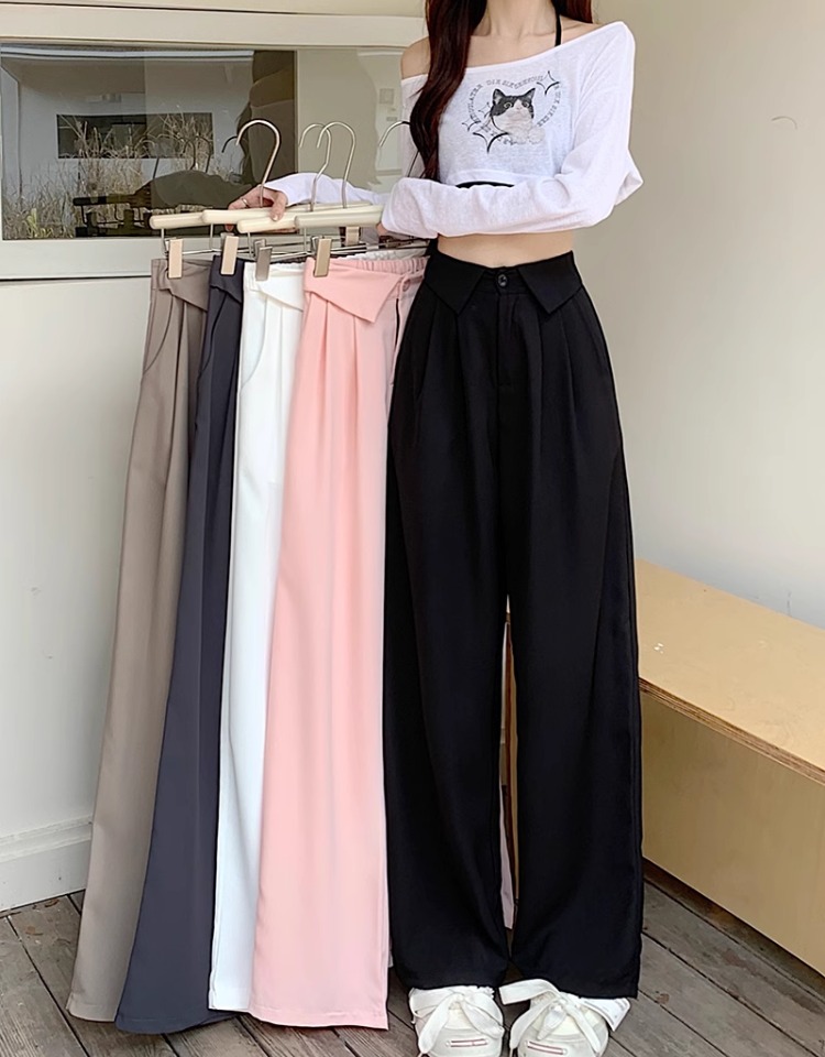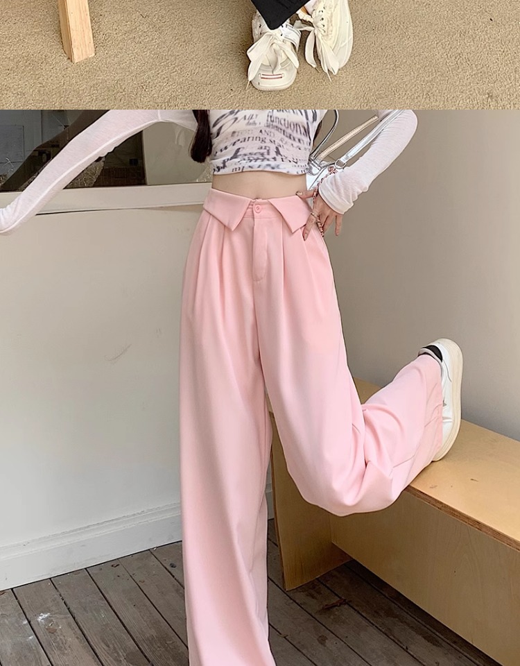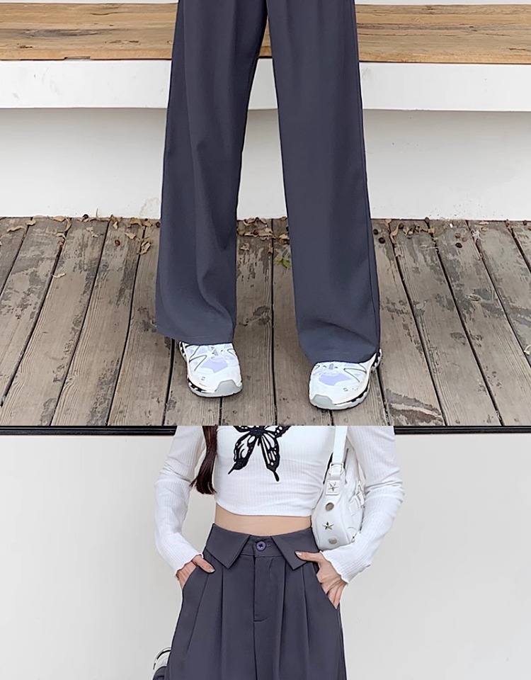 大碼設計感直筒西裝休閒褲女秋冬高腰濶腿褲拖地長褲胖mm垂感褲子