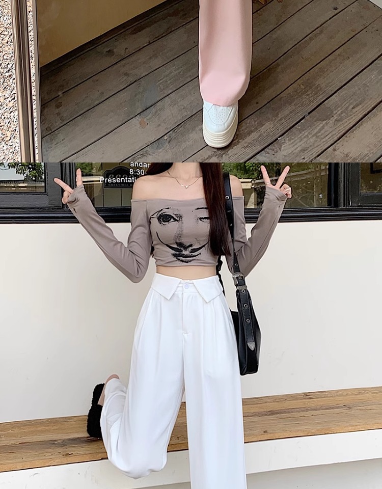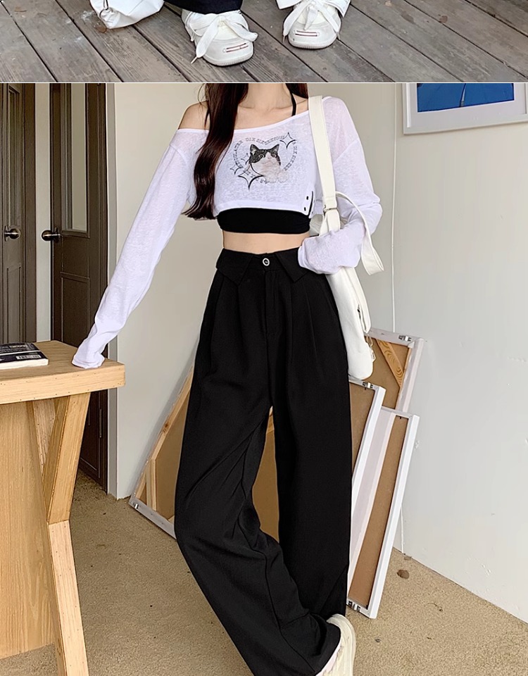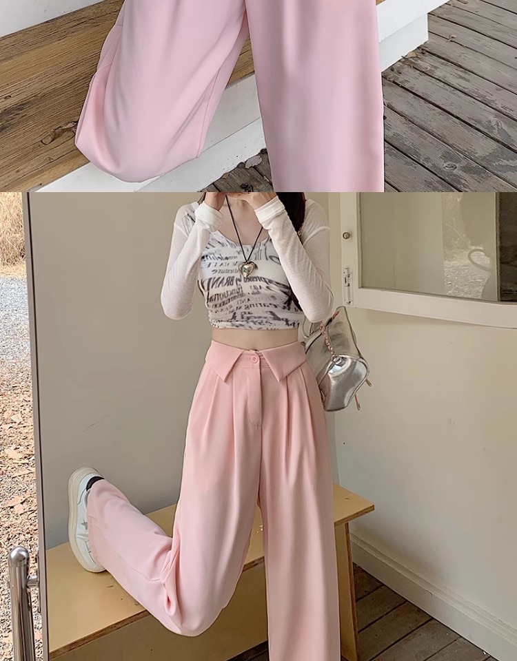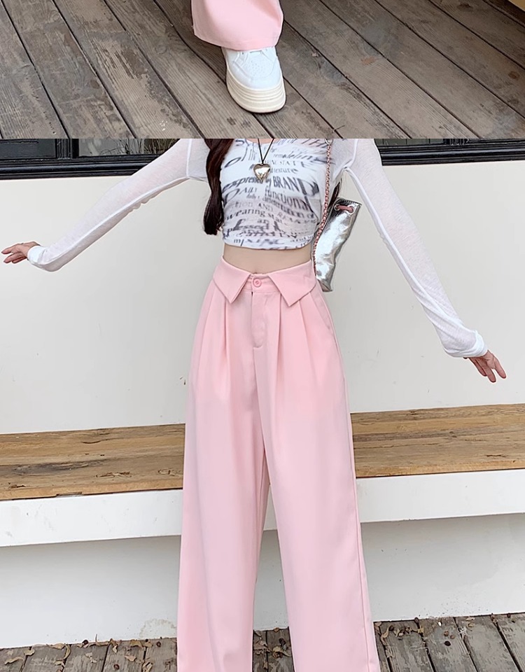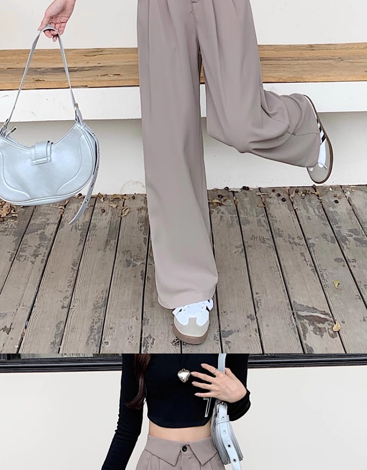 大碼設計感直筒西裝休閒褲女秋冬高腰濶腿褲拖地長褲胖mm垂感褲子