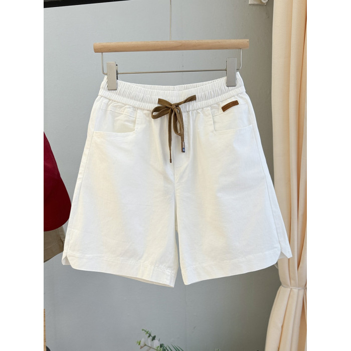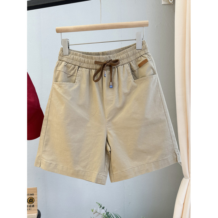 夏季新款女士水洗棉短褲松緊腰休閒寬松濶腿褲外穿薄款五分褲運動