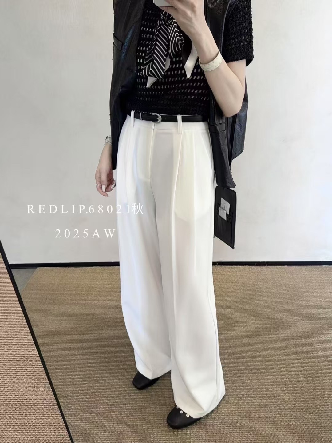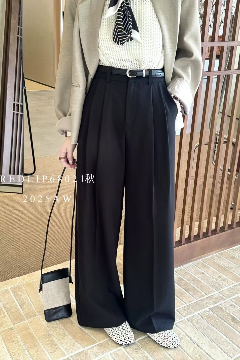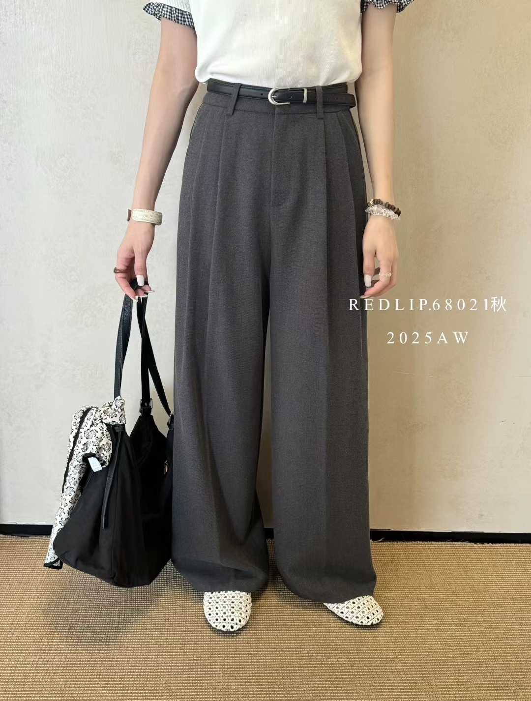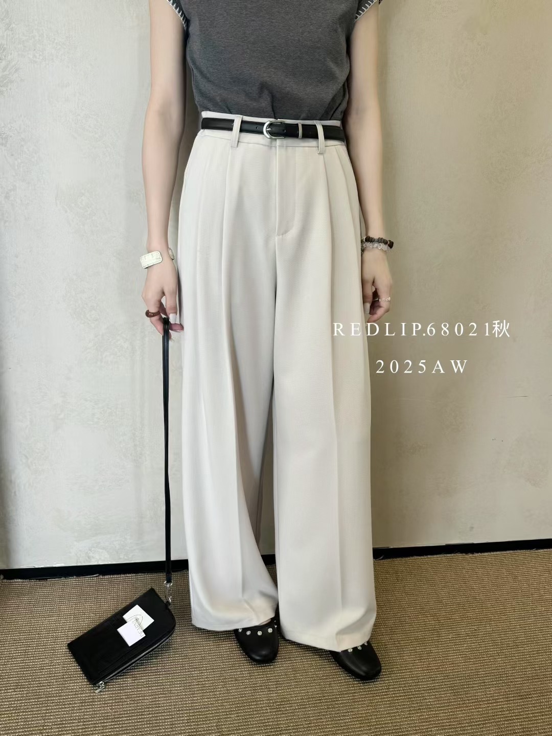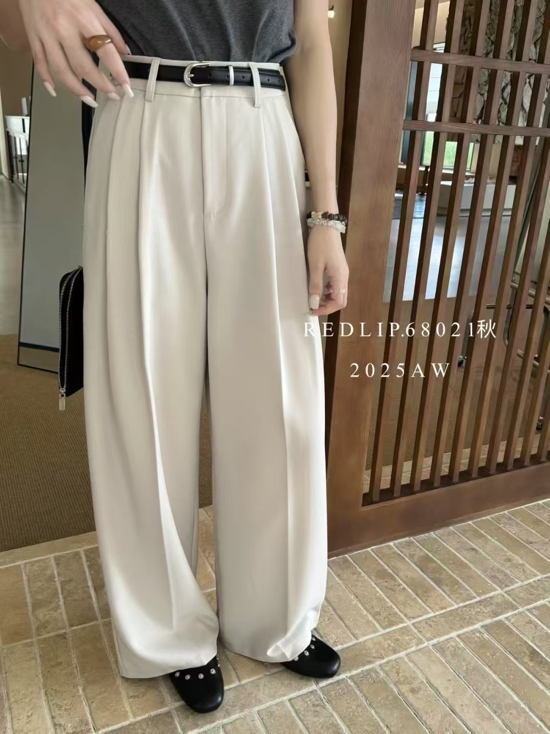 紅脣2025秋季垂墜高腰顯高顯瘦窄版濶腿褲西裝褲通勤長褲女68021
