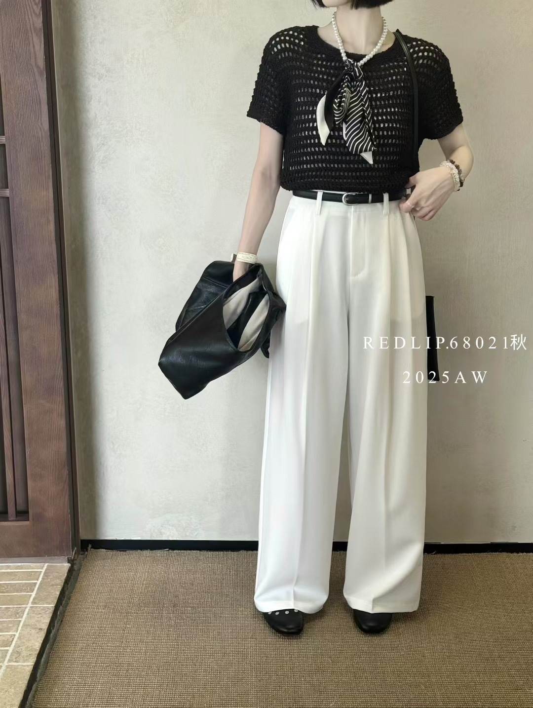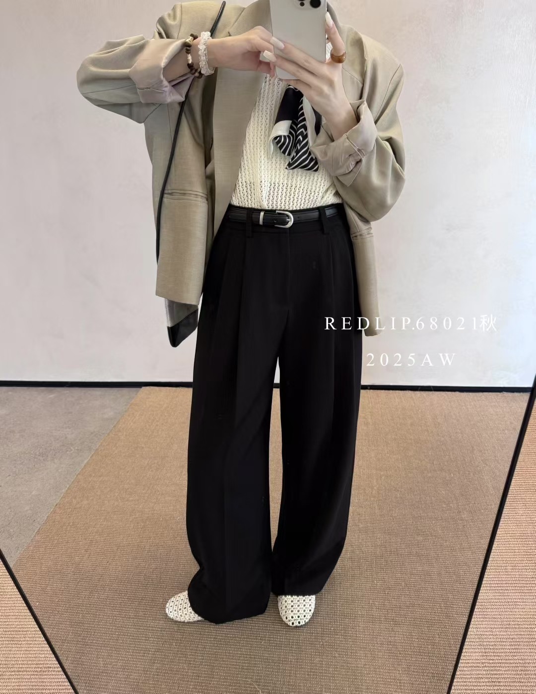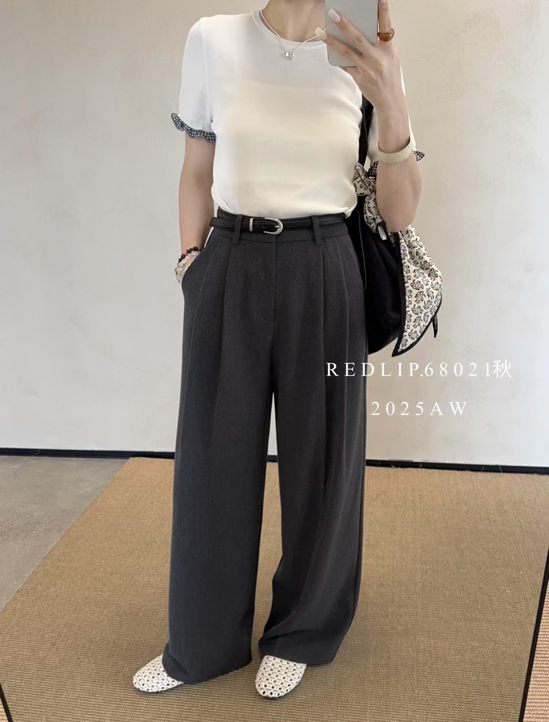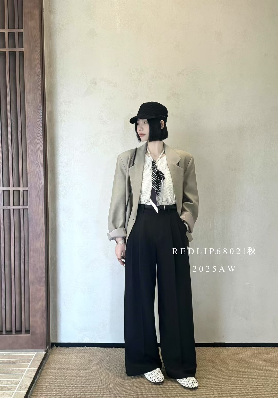 紅脣2025秋季垂墜高腰顯高顯瘦窄版濶腿褲西裝褲通勤長褲女68021