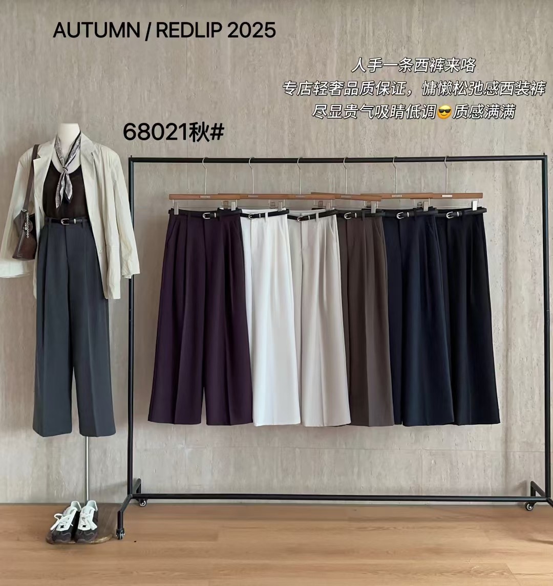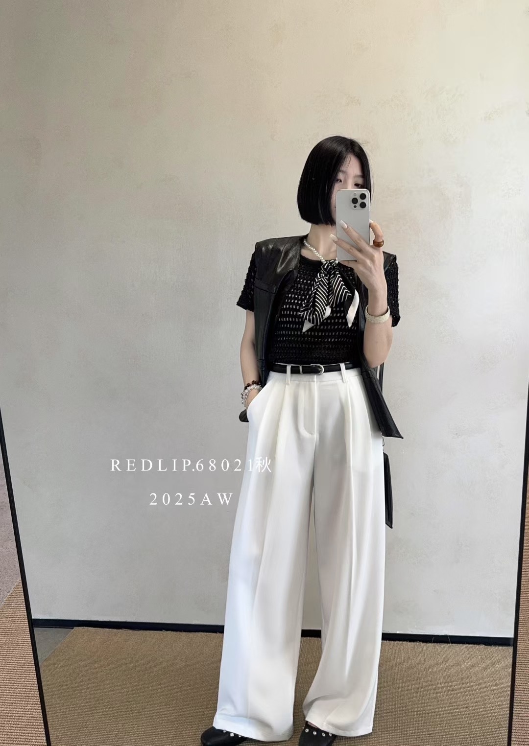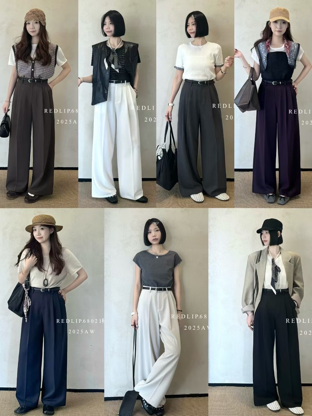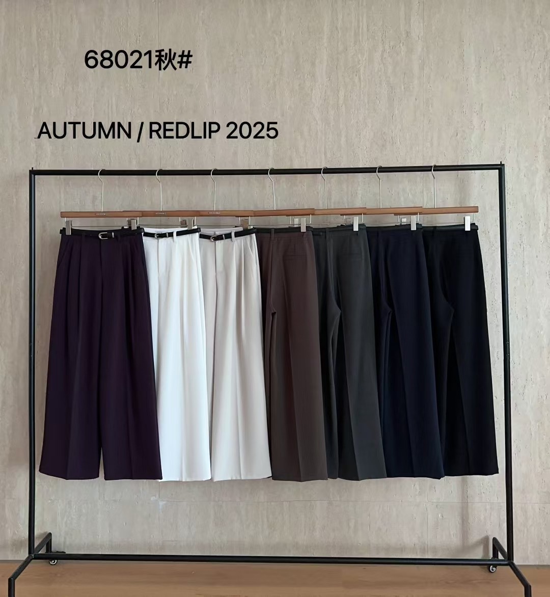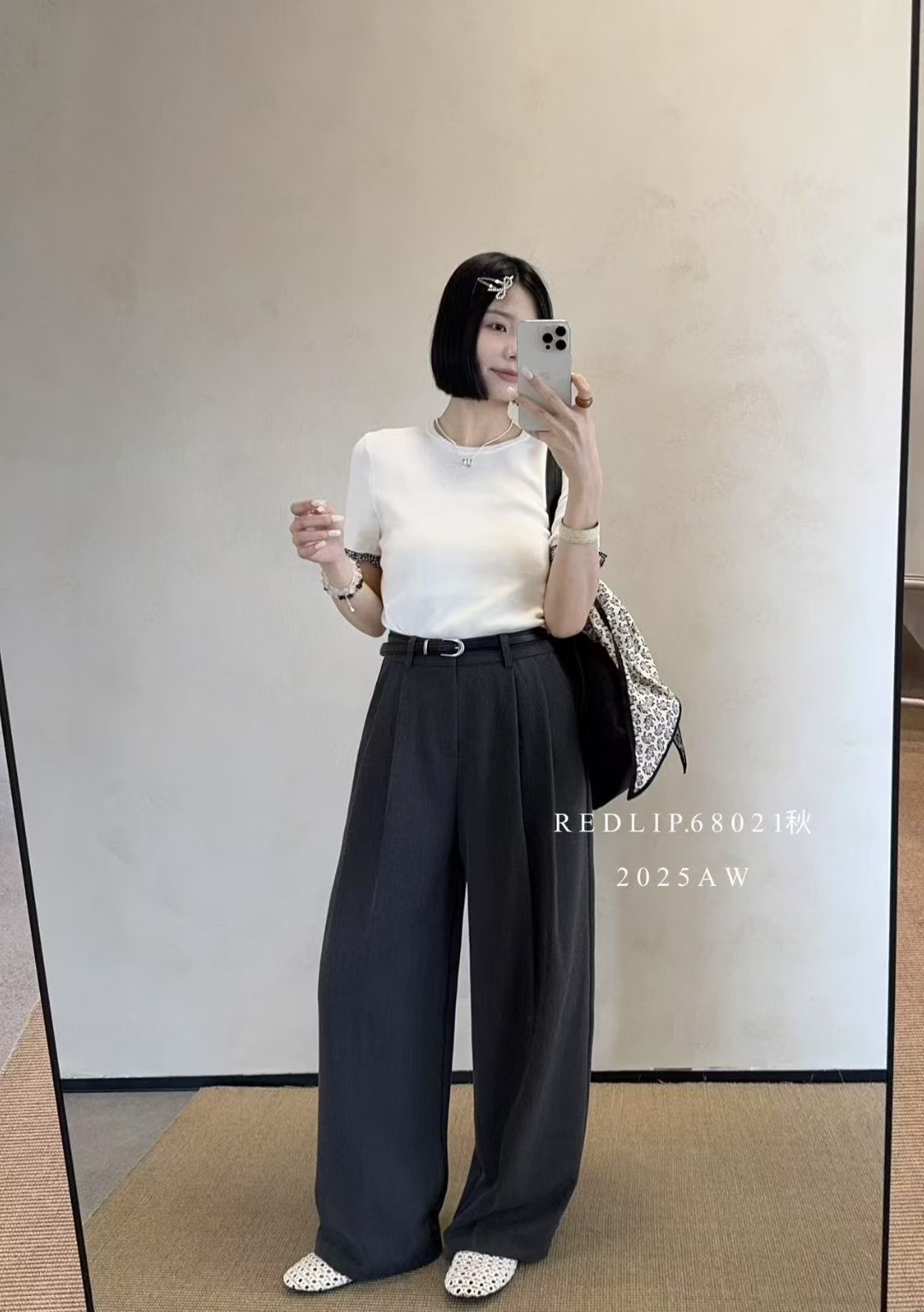 紅脣2025秋季垂墜高腰顯高顯瘦窄版濶腿褲西裝褲通勤長褲女68021
